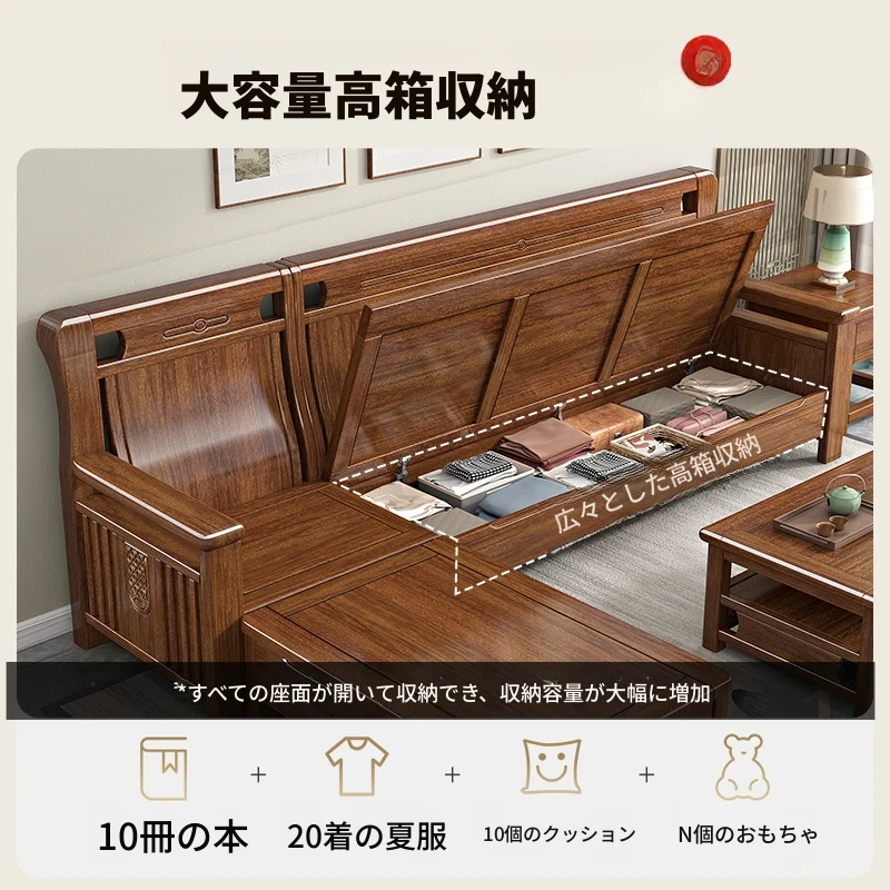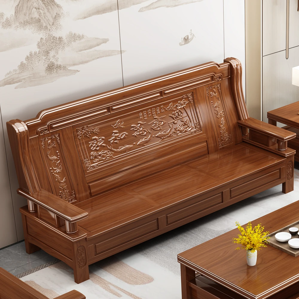 ウォールナット無垢材使用の高級ソファー&カウチセット|冬夏両用の新中式スタイルで、リビングを格上げする古典的な美しさを演出!