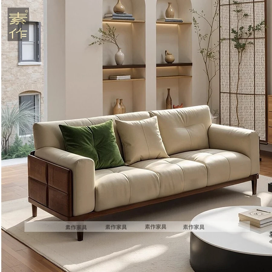北米産ブラックウォールナットの本革ソファ - モダンなリビングルームにぴったりの高級ミニマリズム、宋氏美学を追求した家具。ホテルや別荘、クラブに最適な一品!