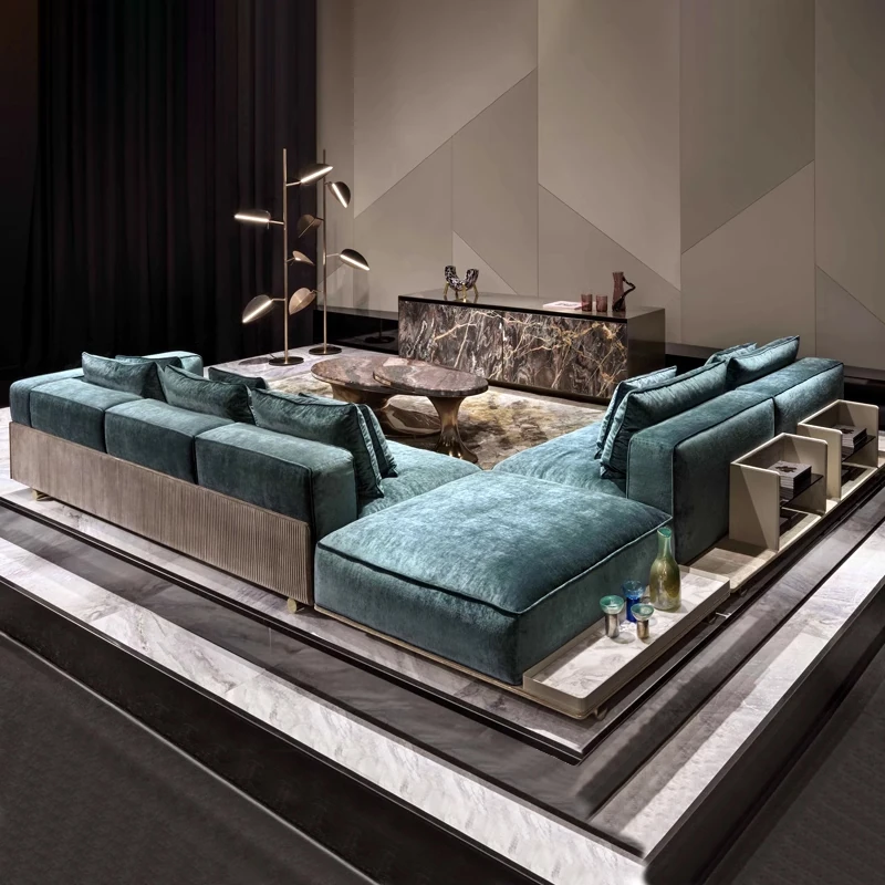 軽奢スタイルのスエード本革ソファ 123コンビネーション 家庭用リビングルーム角型 ヴィラ展示室に最適 イタリアンミニマリズムの大きなソファで、洗練された空間を演出します!