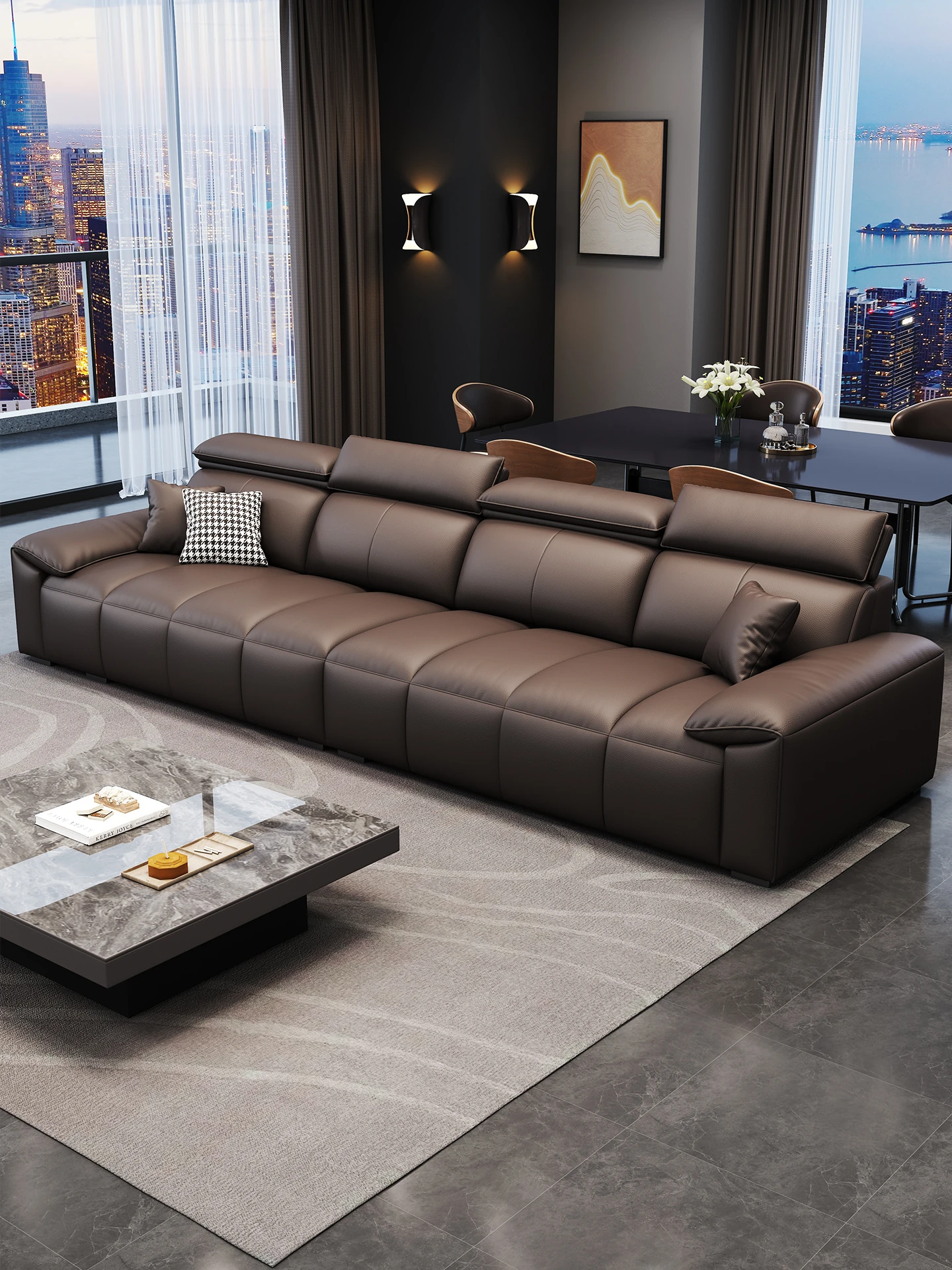Italian Luxury Genuine Leather Sofa - High-End Villa Furniture for Spacious Living Rooms, Designer Lacquered Leather Sofa for Elegant Interiors
