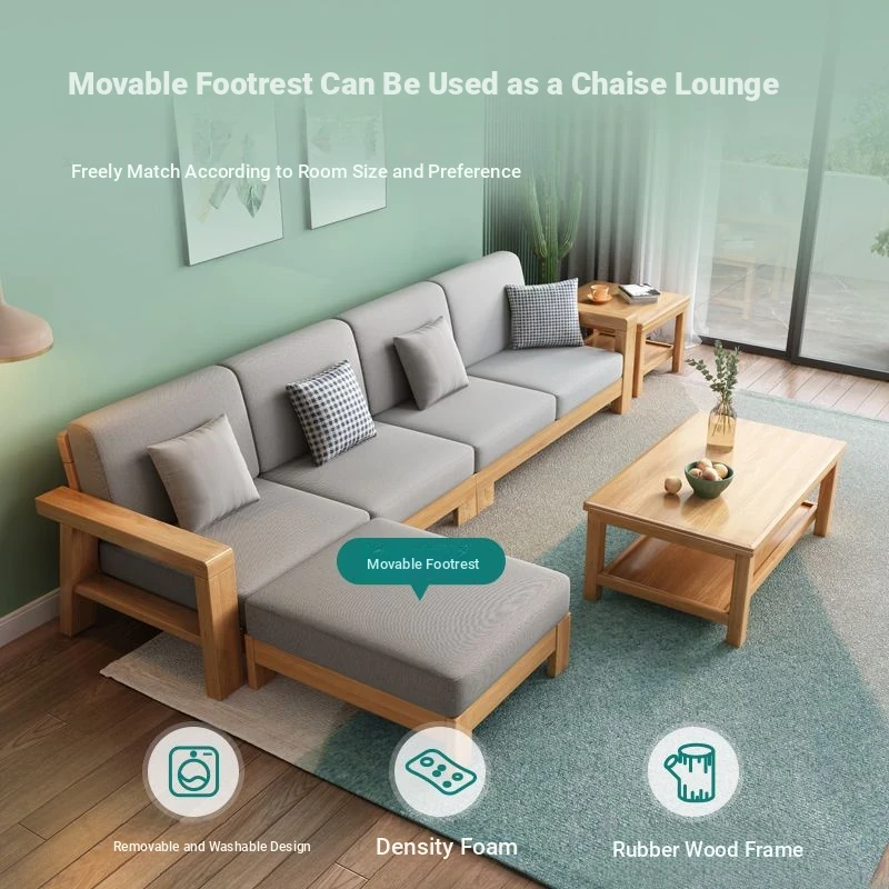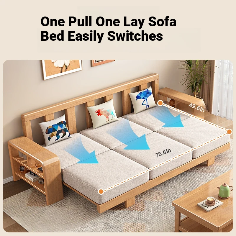 Solid Rubber Wood Sofa Set - Modern Minimalist Convertible Sofa Bed for Small Spaces, Perfect for Your Living Room!