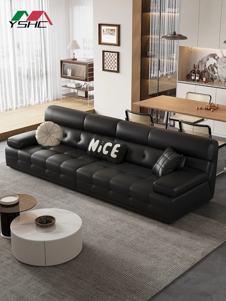 2025 New Italian Minimalist Genuine Leather Sofa - Modern Simple Piano Key Design for Small Spaces, Perfect Living Room Sectional Set