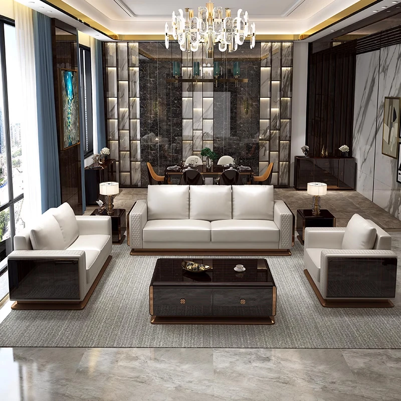 Italian Luxury Genuine Leather Sofa Set - Modern 123 Combination for Spacious Villas and Large Living Rooms, Featuring Solid Wood and Premium Cowhide.