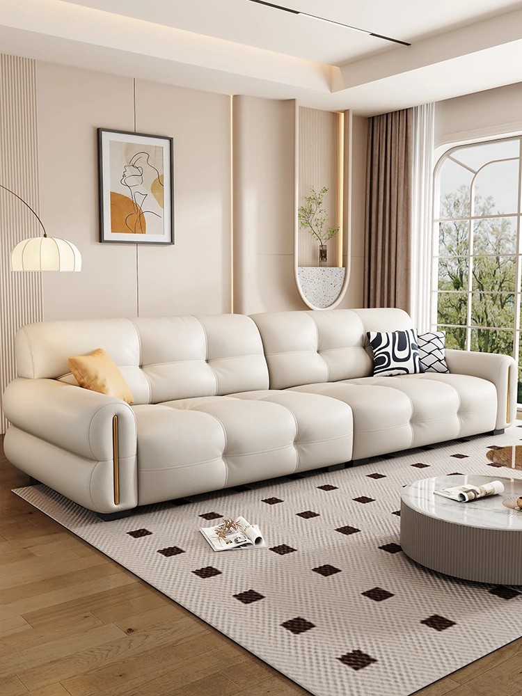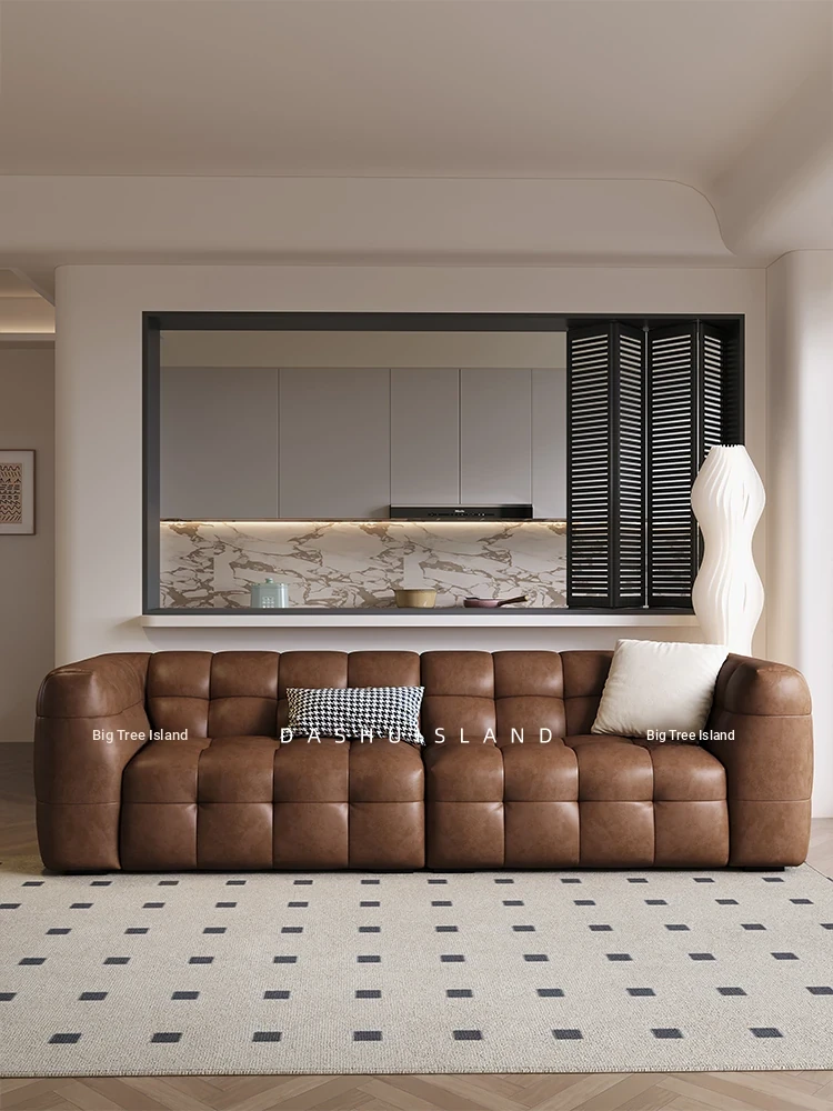 Dazhu Island Modern Minimalist Cotton Candy Sofa for Small Living Rooms - Retro Cream Style Genuine Leather Sofa