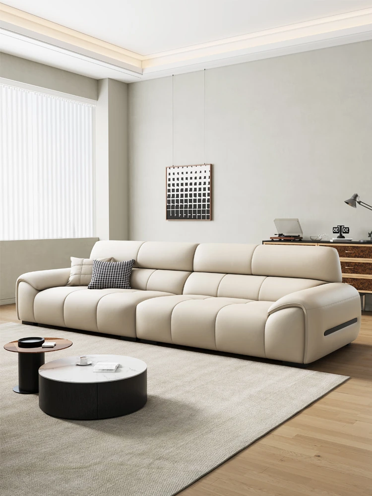 New Italian Minimalist Modern Genuine Leather Sofa Set - Luxurious and Stylish 3-Seater and 4-Seater Combination for Small to Medium Living Rooms