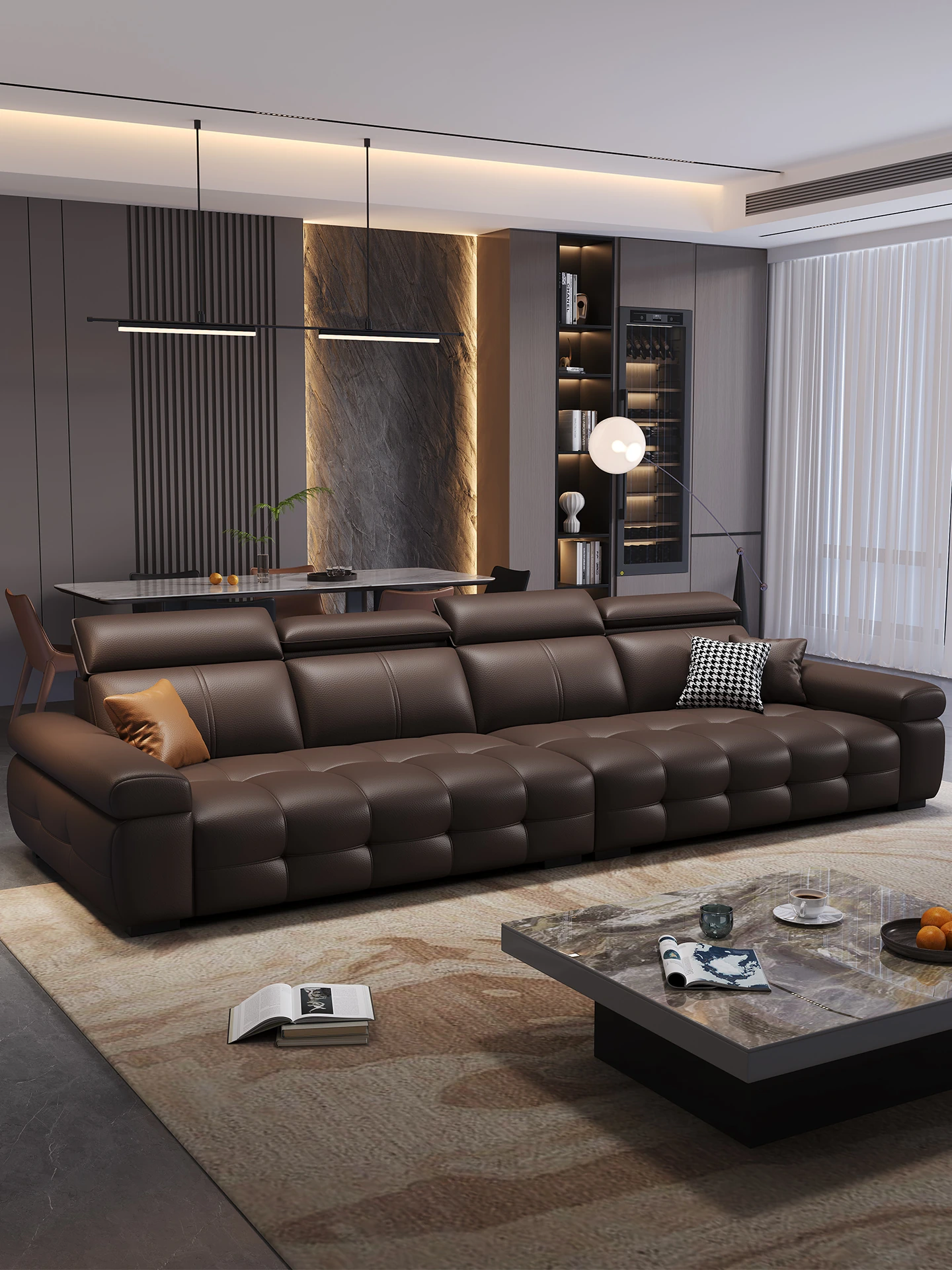 Luxury Genuine Leather Sofa for Modern Villas - Elegant Living Room Furniture for High-End Large Spaces, Minimalist Italian Design with Solid Wood Accents
