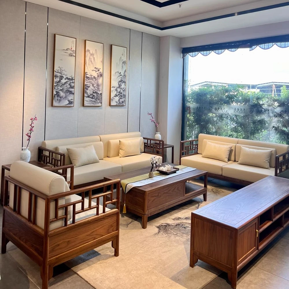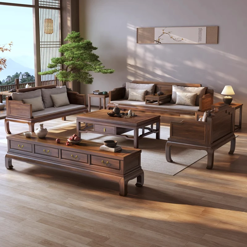 Walnut Wood Chinese Style Solid Wood Sofa Set - Versatile for Small and Large Spaces, Perfect for Year-Round Comfort - Fully Solid Wood, Crafted in Foshan