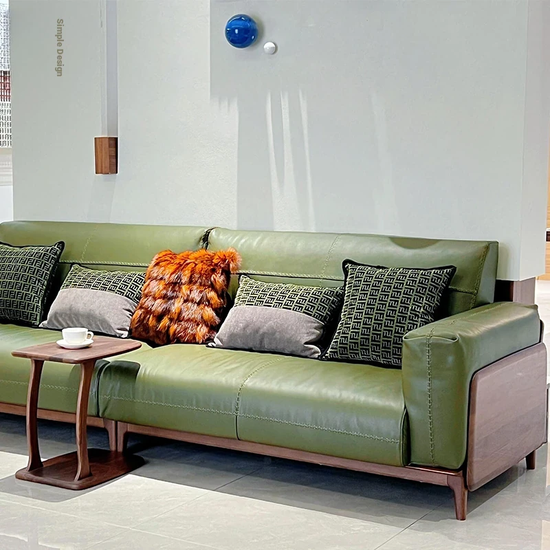 2025 New Collection: Premium Solid Wood Sofa with Real Leather Upholstery in North American Black Walnut - Embrace the Elegance of Song Aesthetics in Your Living Room