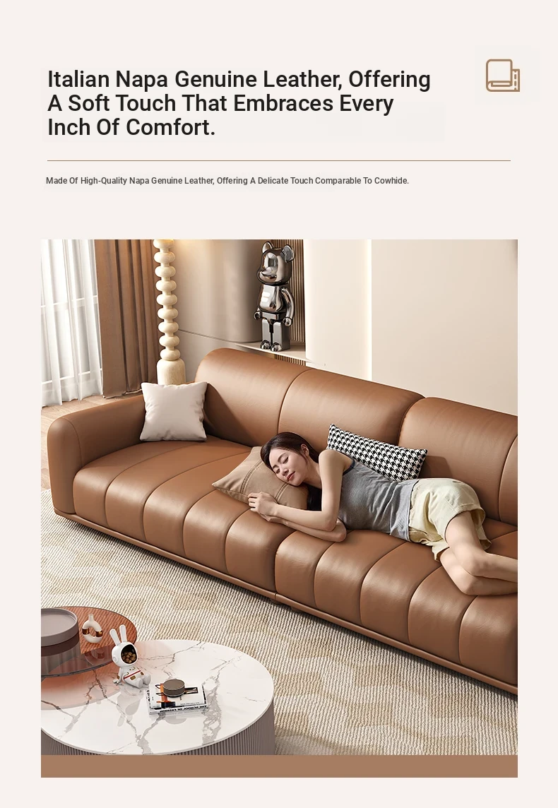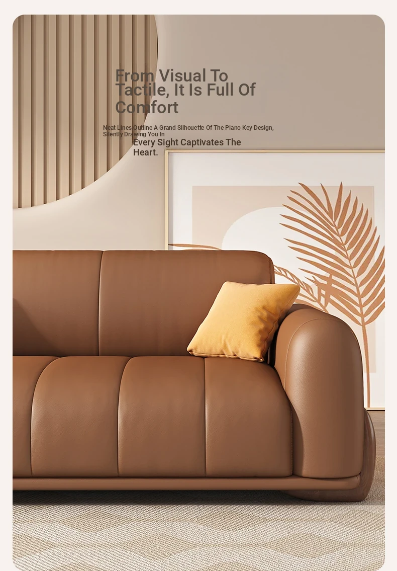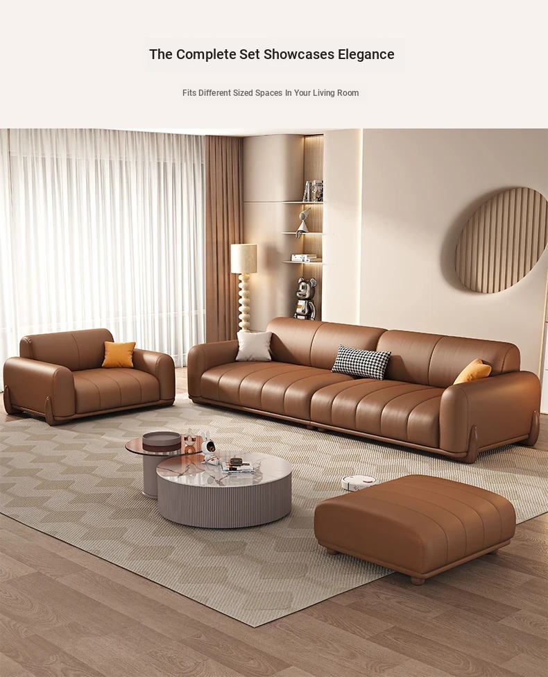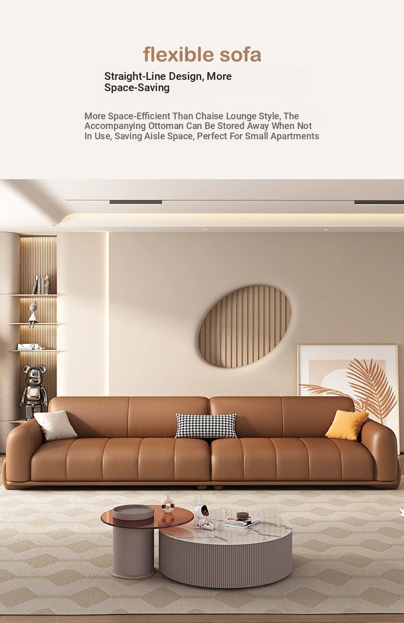 2023 New Italian Minimalist Leather Sofa Set - Luxurious Modern Living Room Couch with Genuine Top-Grain Cowhide Upholstery, Perfect for Chic and Stylish Interiors