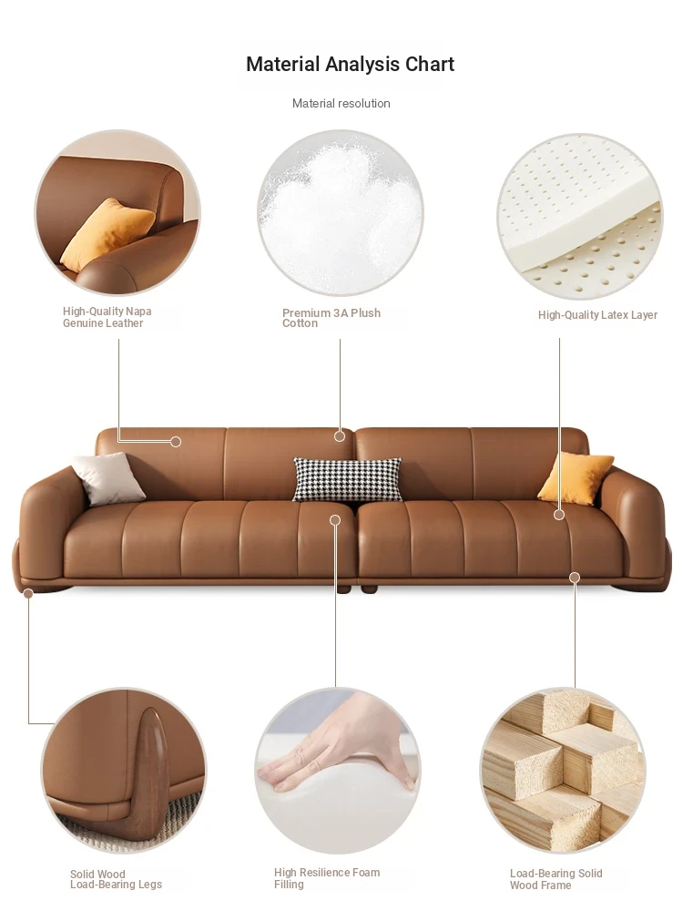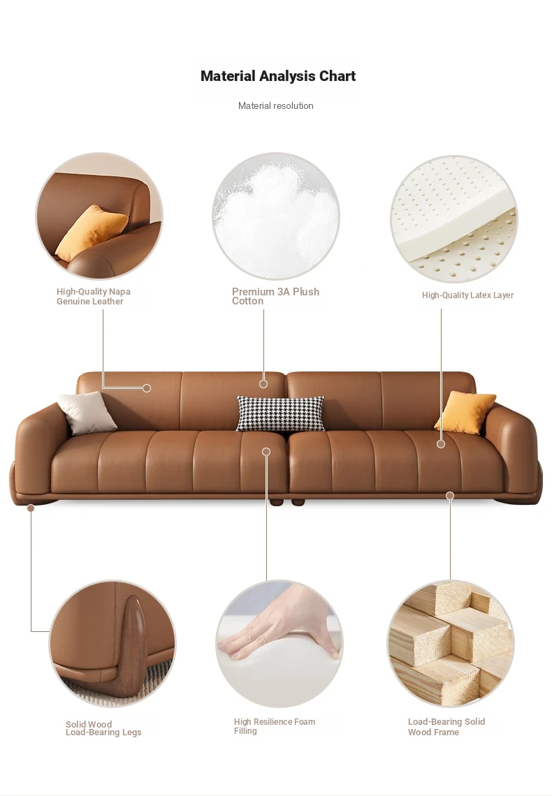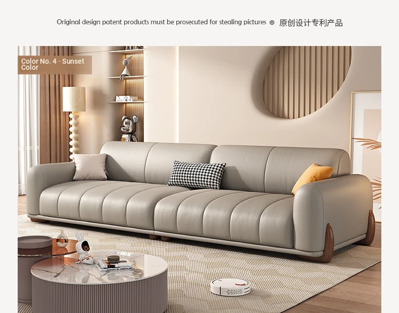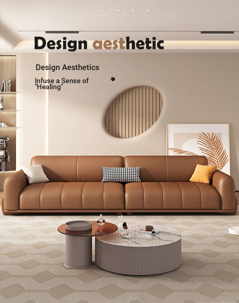 2023 New Italian Minimalist Leather Sofa Set - Luxurious Modern Living Room Couch with Genuine Top-Grain Cowhide Upholstery, Perfect for Chic and Stylish Interiors