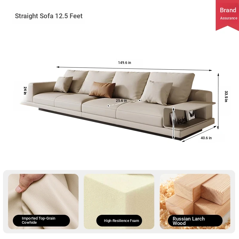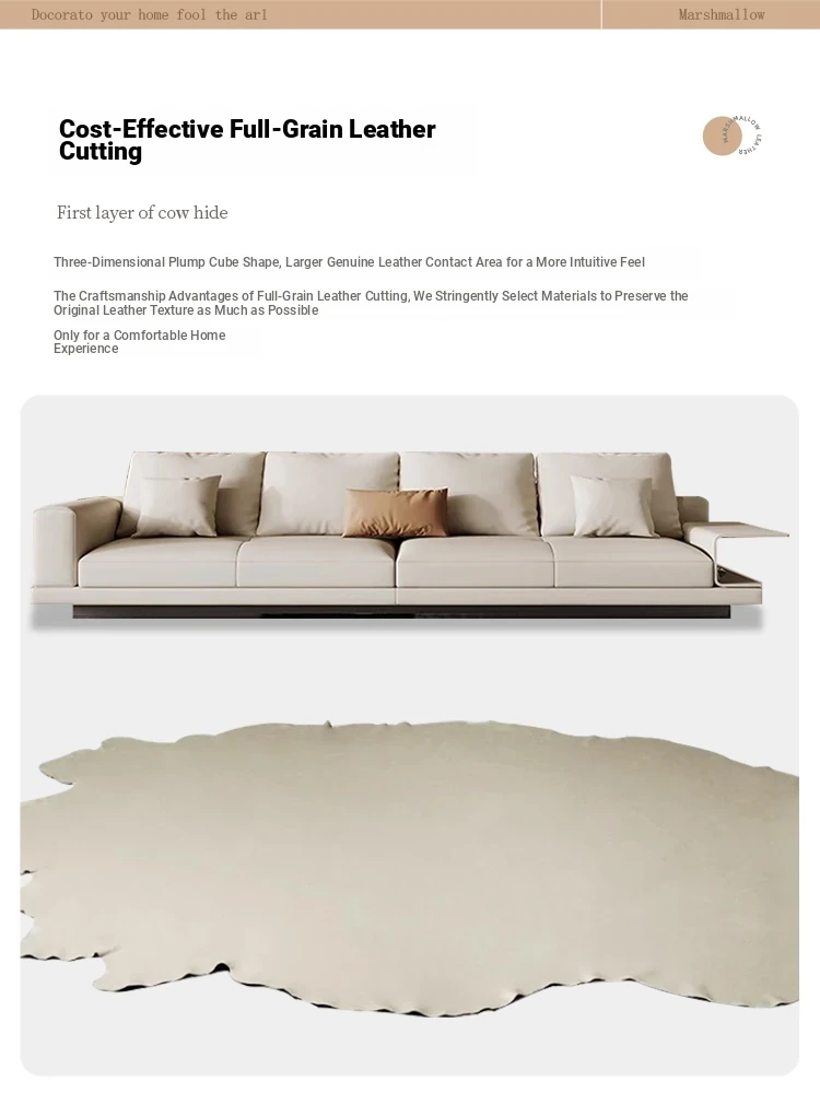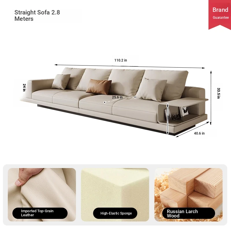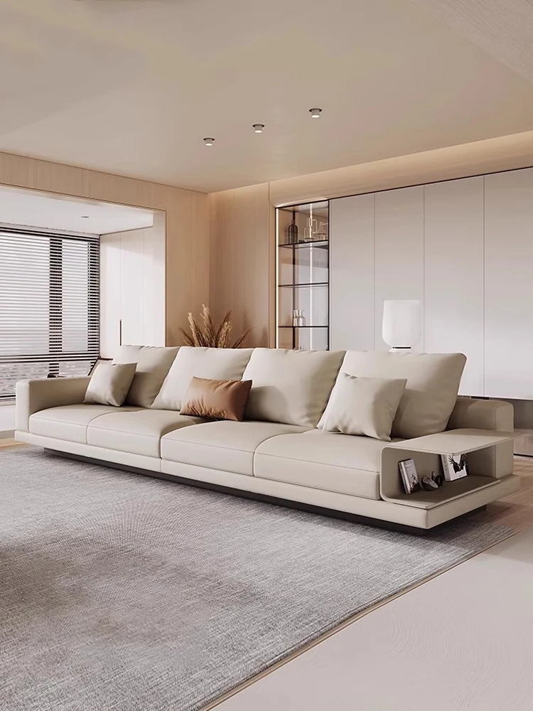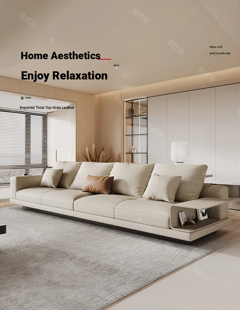 2024 New Italian Minimalist Sofa - Premium Top-Grain Leather, Luxurious and Elegant Design for Villas, Directly Aligned Sofa for a Stylish Living Space