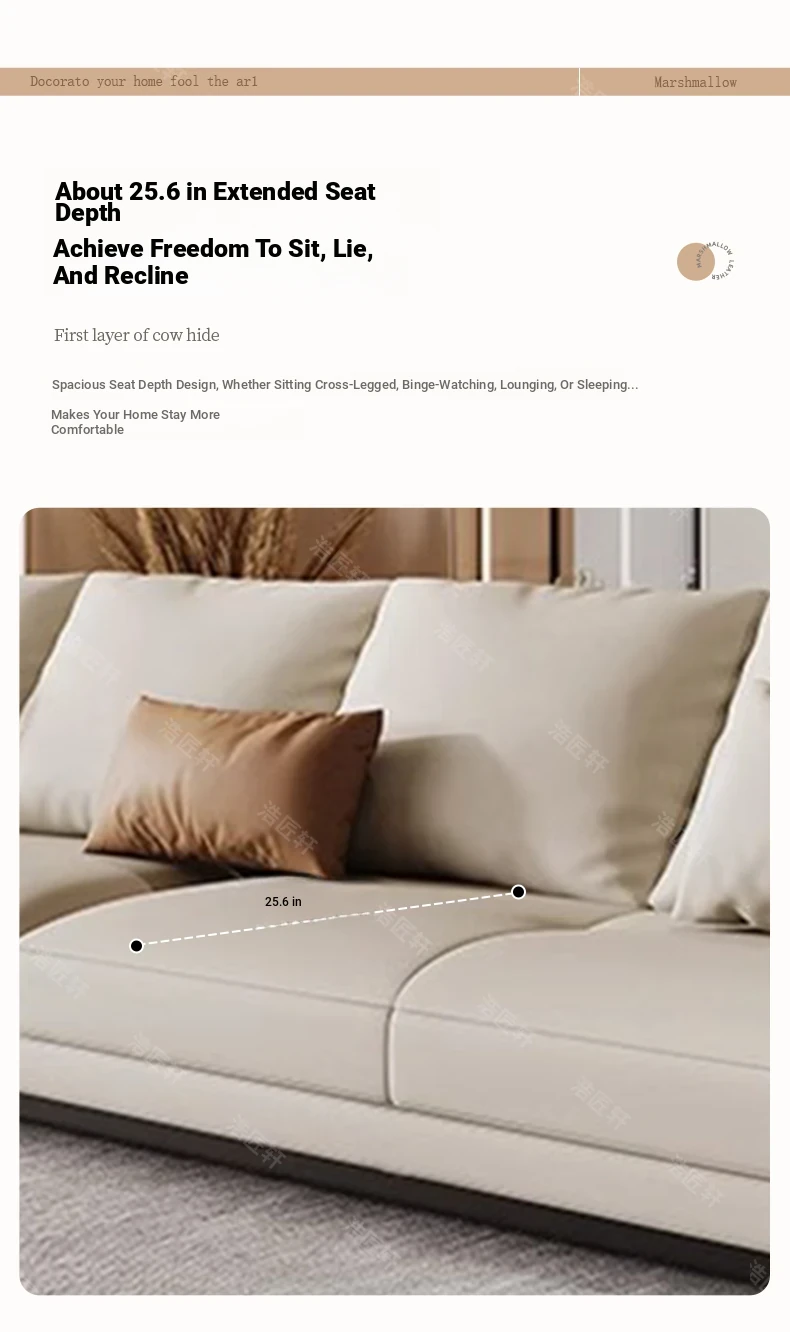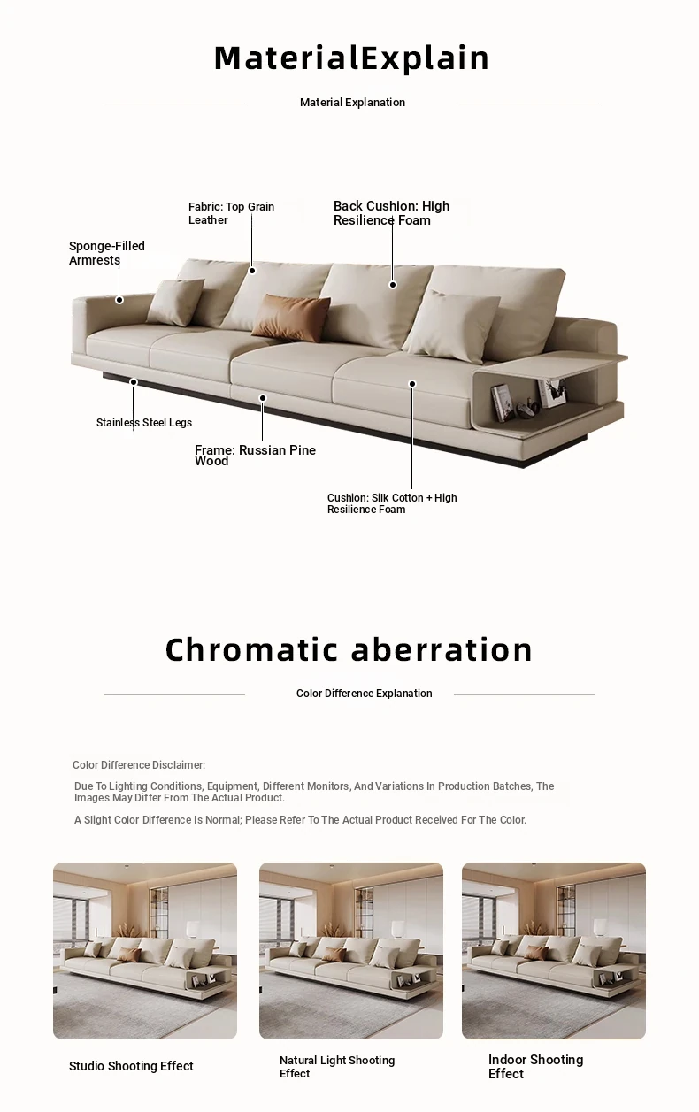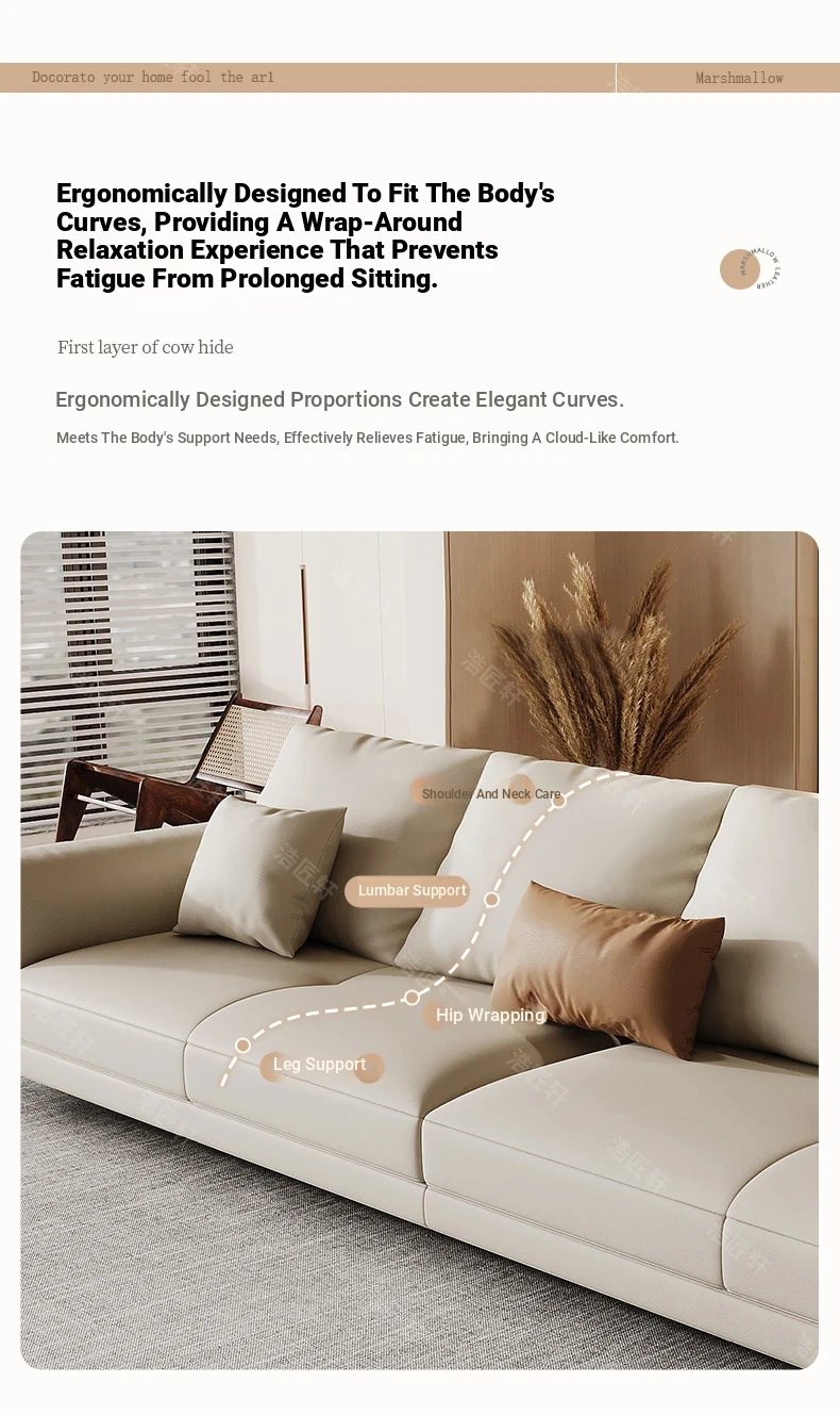 2024 New Italian Minimalist Sofa - Premium Top-Grain Leather, Luxurious and Elegant Design for Villas, Directly Aligned Sofa for a Stylish Living Space