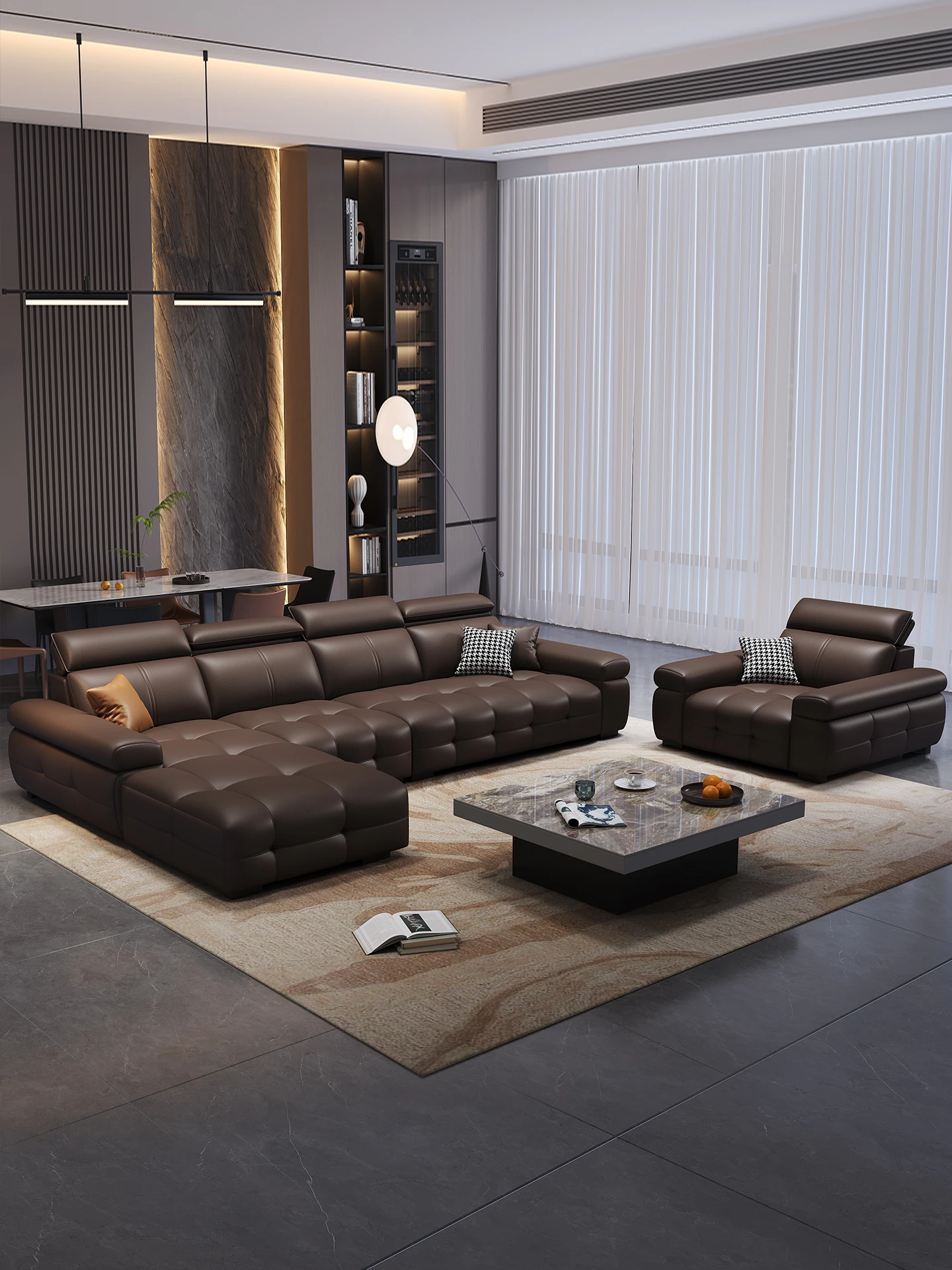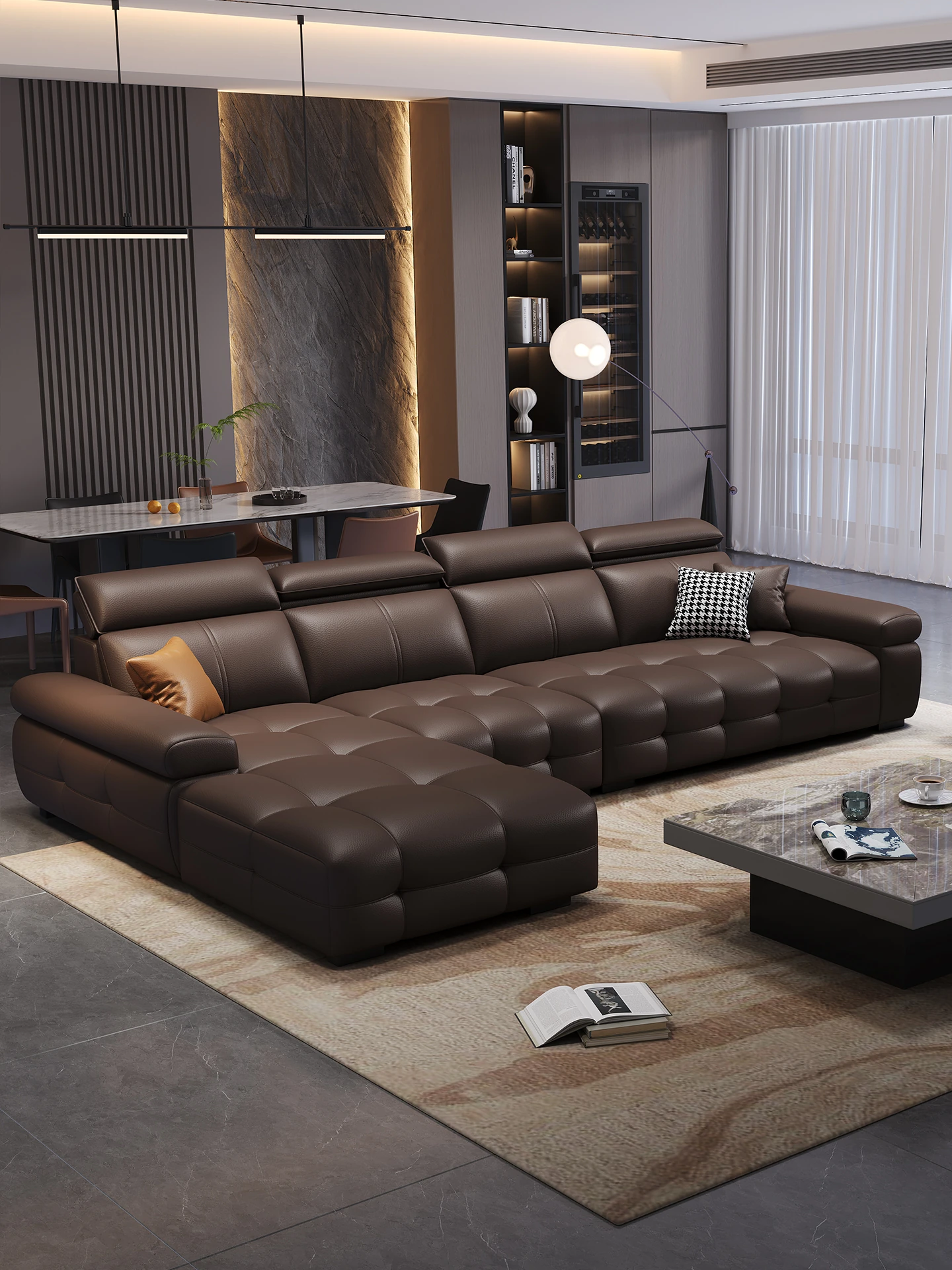 2025 New Arrival: High-Back Lawrence Chaise Lounge Sofa from Foshan Factory – Italian Luxury Genuine Leather Sofa Set for Elegant Living Spaces