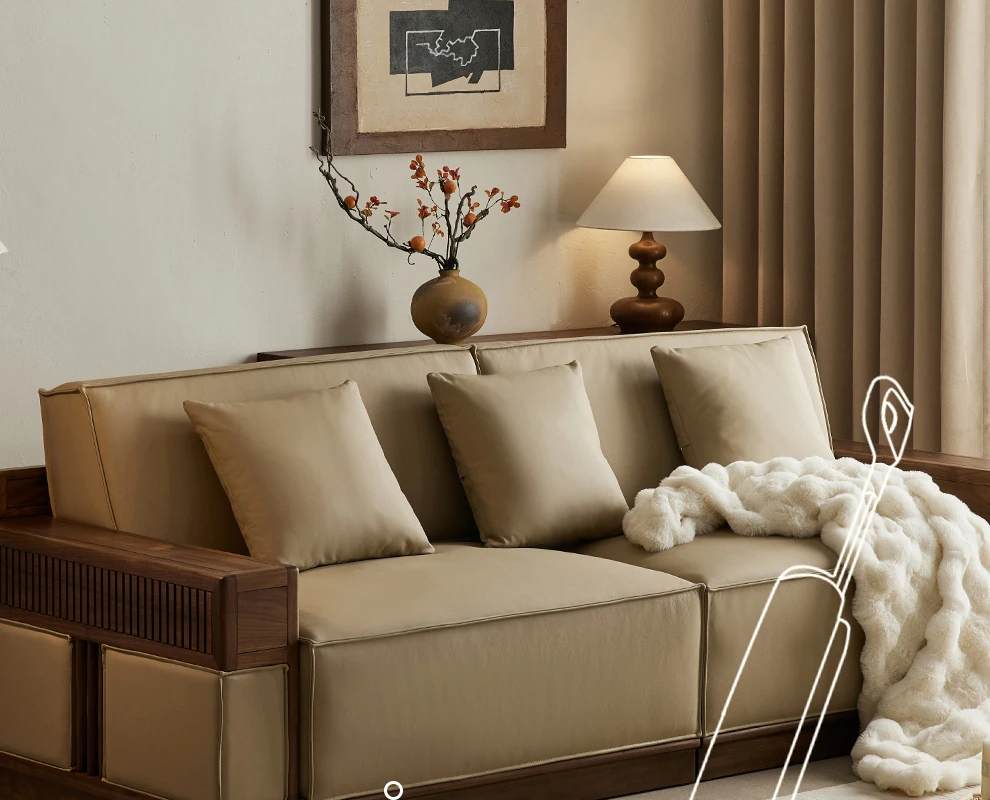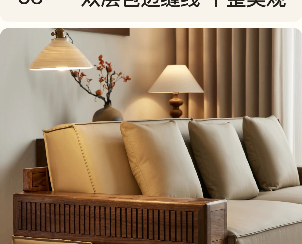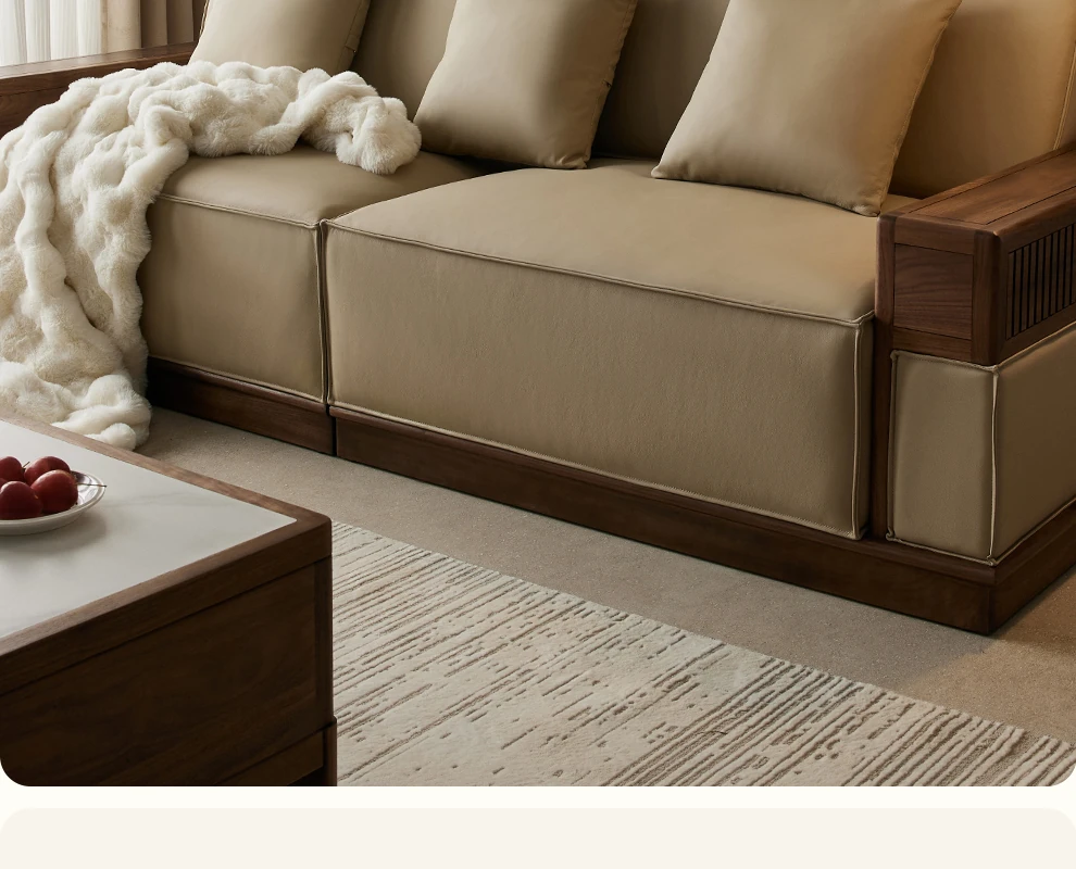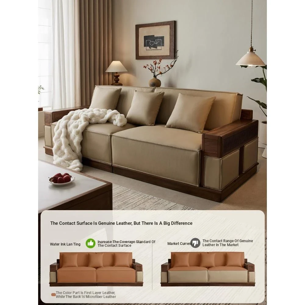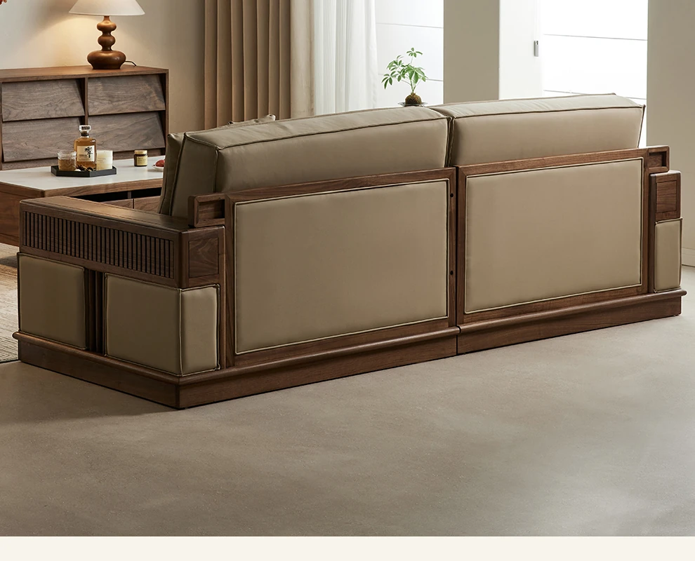 2025 New Arrival: North American Black Walnut Sofa - Elegant New Chinese Style Large Living Room Sofa with Leather Upholstery, Inspired by Song Dynasty Aesthetics. Perfect for Spacious Homes!