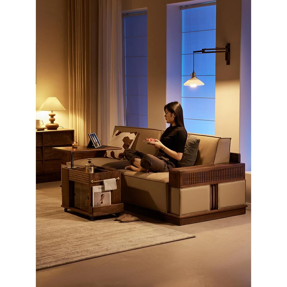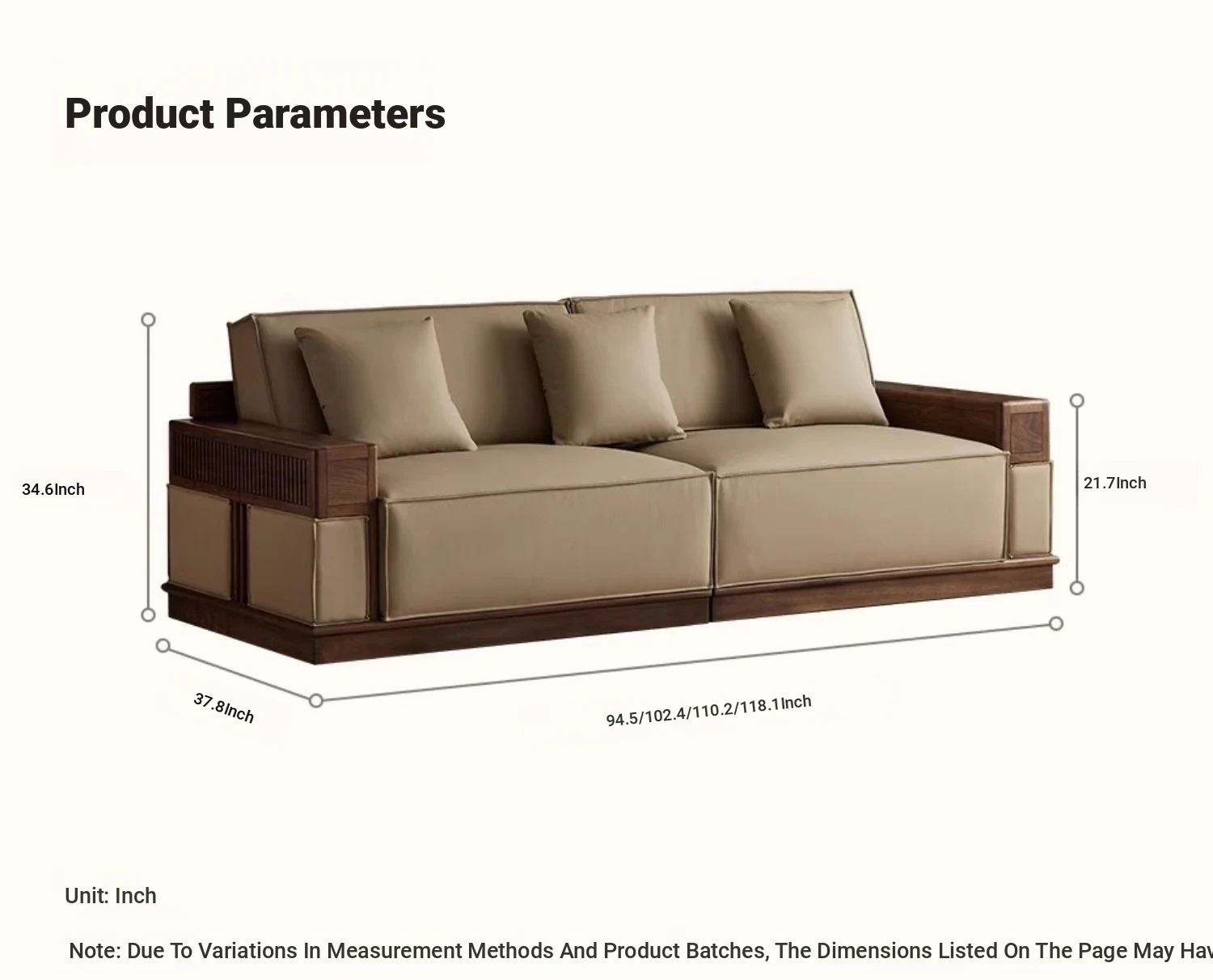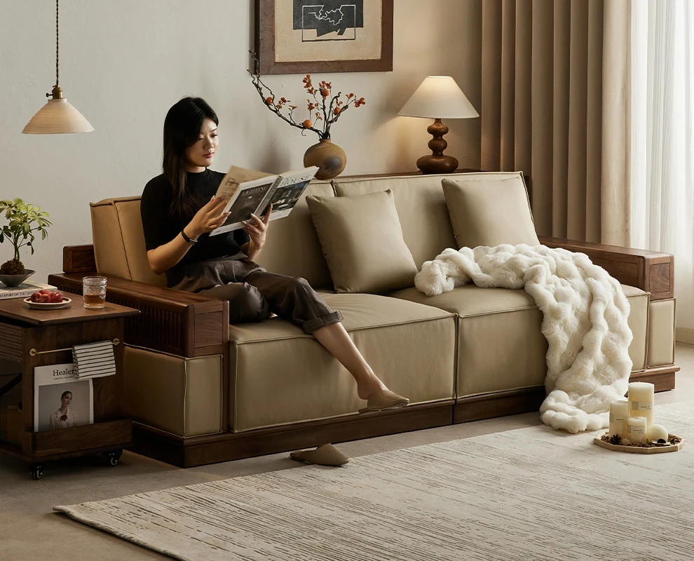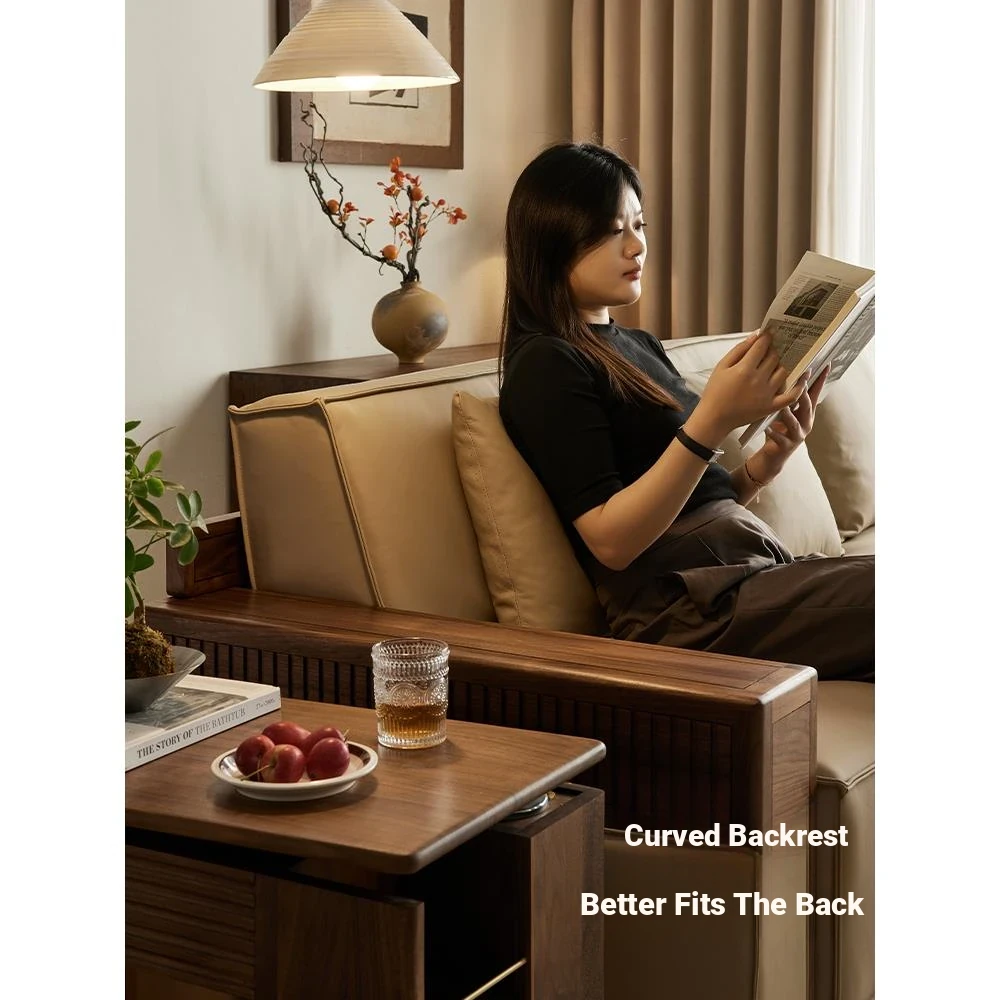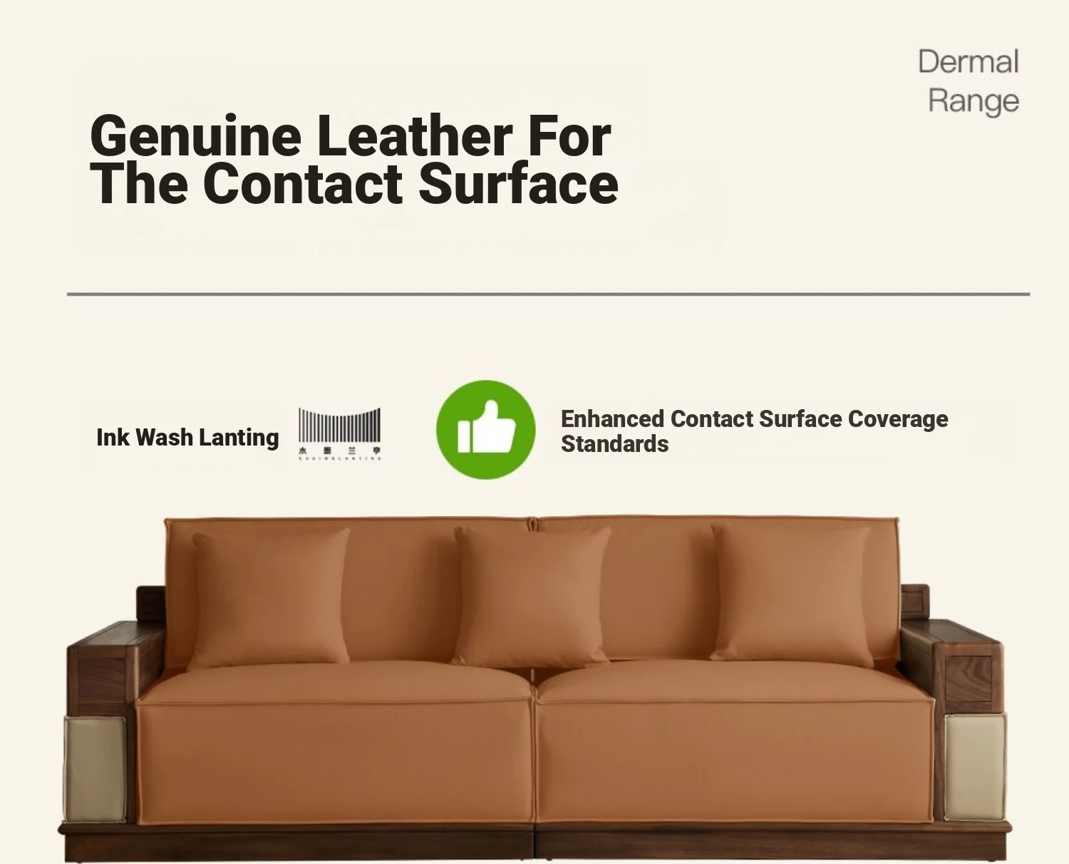 2025 New Arrival: North American Black Walnut Sofa - Elegant New Chinese Style Large Living Room Sofa with Leather Upholstery, Inspired by Song Dynasty Aesthetics. Perfect for Spacious Homes!
