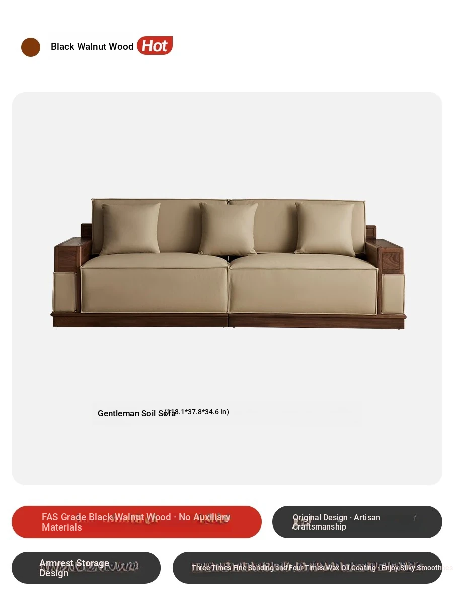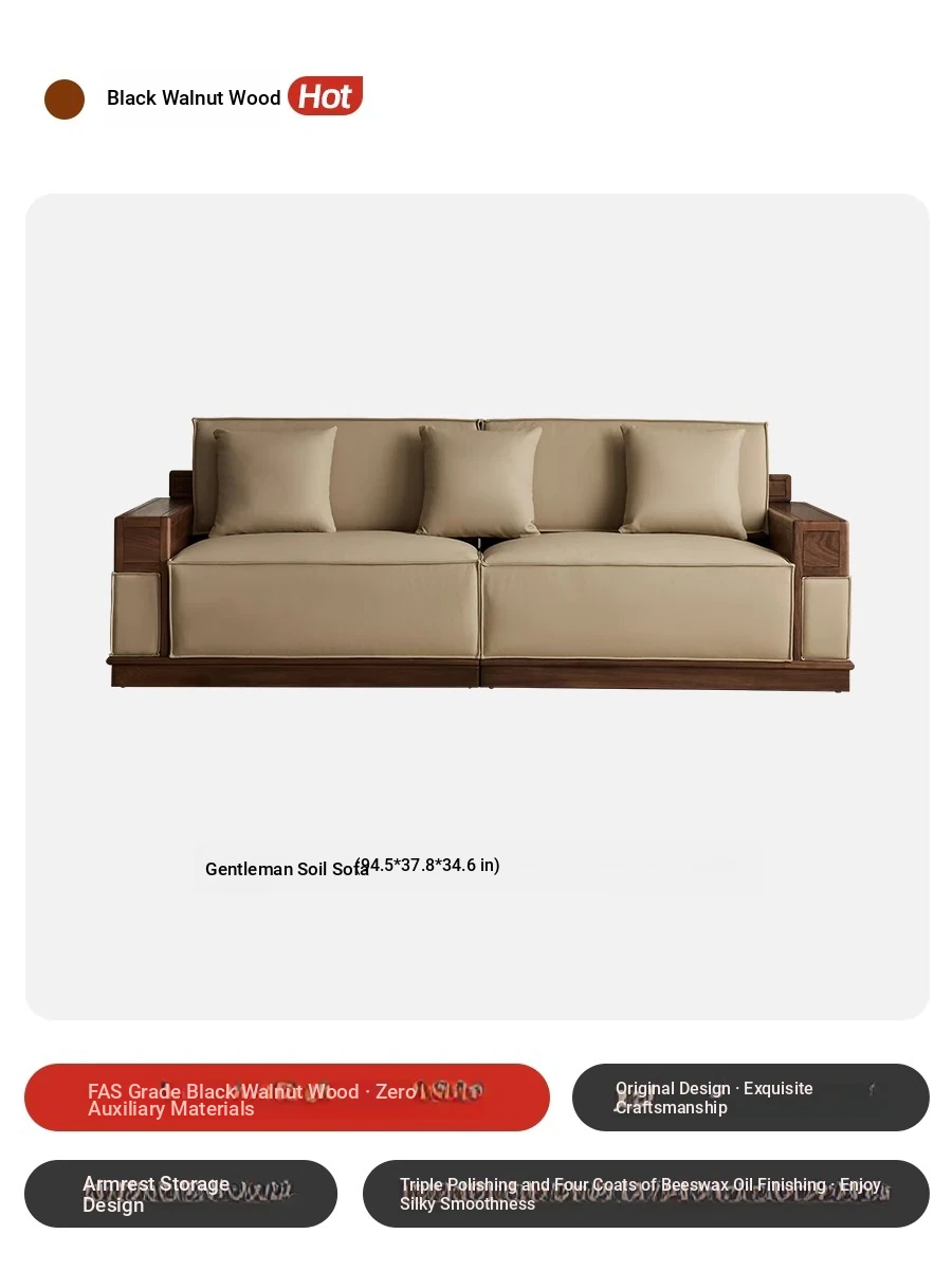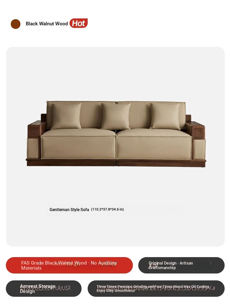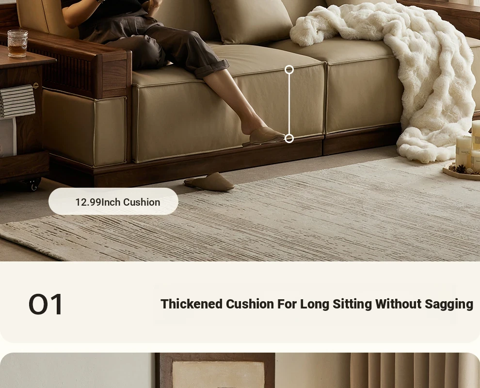2025 New Arrival: North American Black Walnut Sofa - Elegant New Chinese Style Large Living Room Sofa with Leather Upholstery, Inspired by Song Dynasty Aesthetics. Perfect for Spacious Homes!