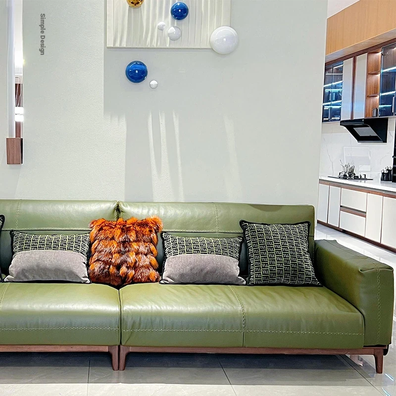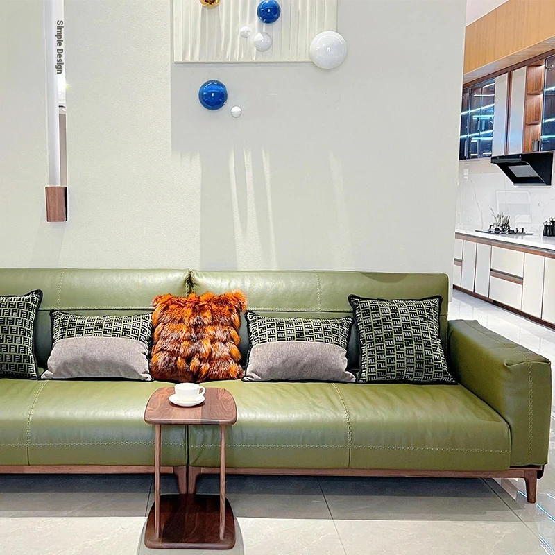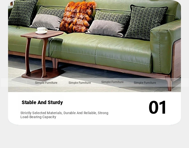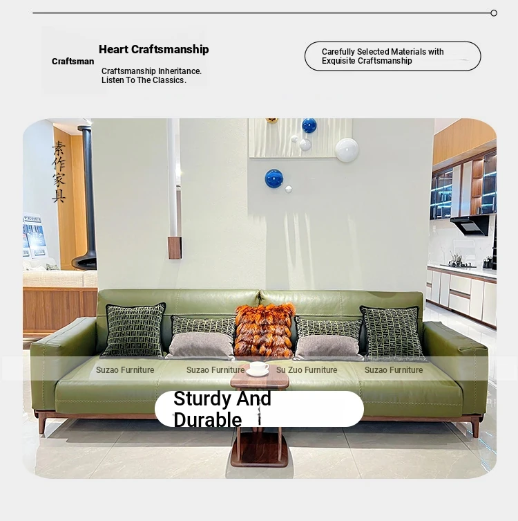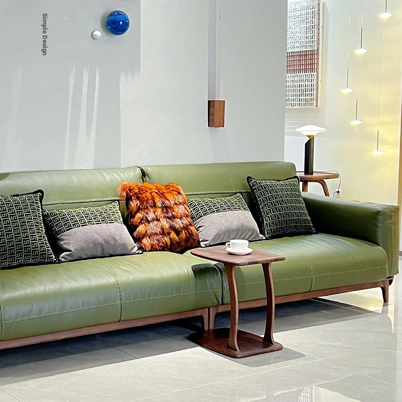 2025 New Collection: Premium Solid Wood Sofa with Real Leather Upholstery in North American Black Walnut - Embrace the Elegance of Song Aesthetics in Your Living Room
