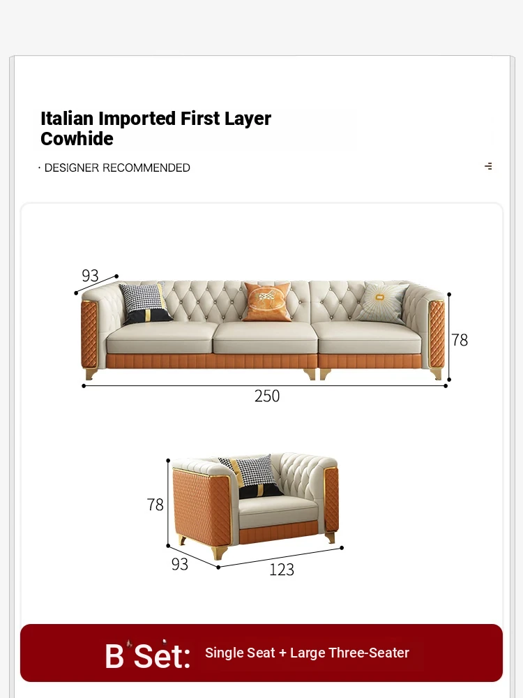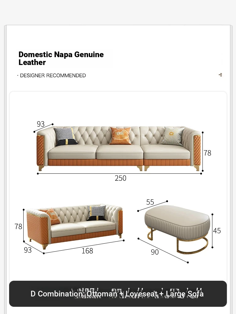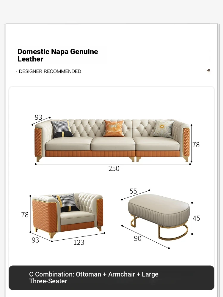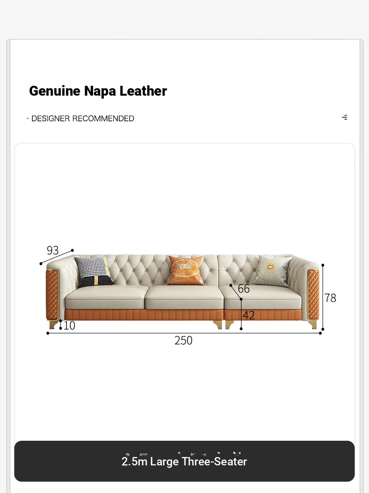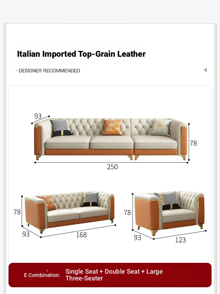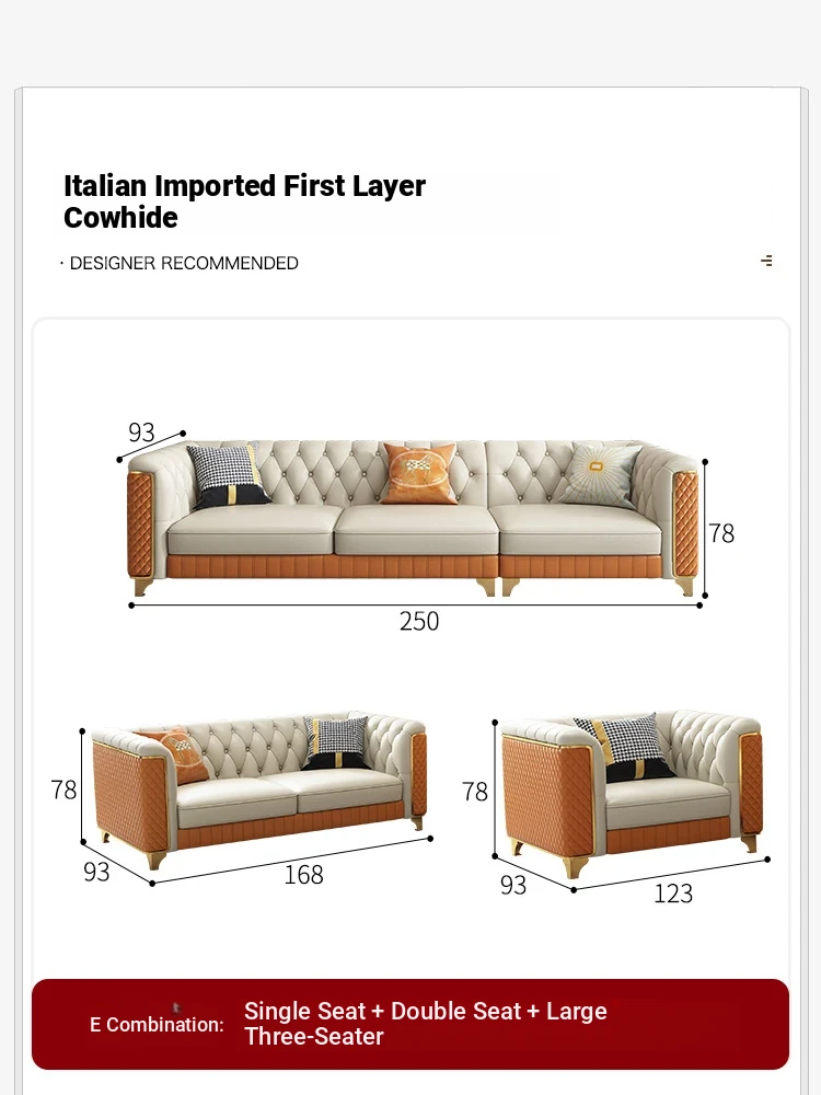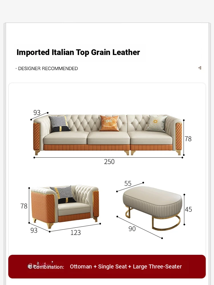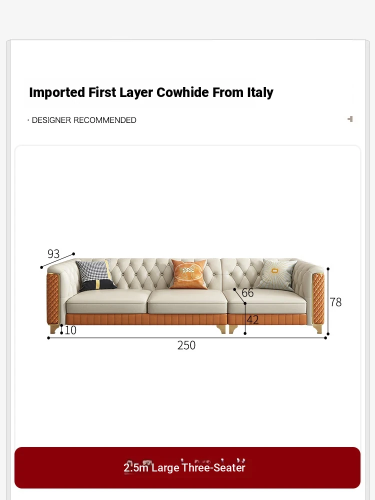 2025 New Italian Luxury Top-Grain Leather Three-Seat Sofa with Pull-Tab Design for Living Room – Genuine Leather from Foshan, Guangdong