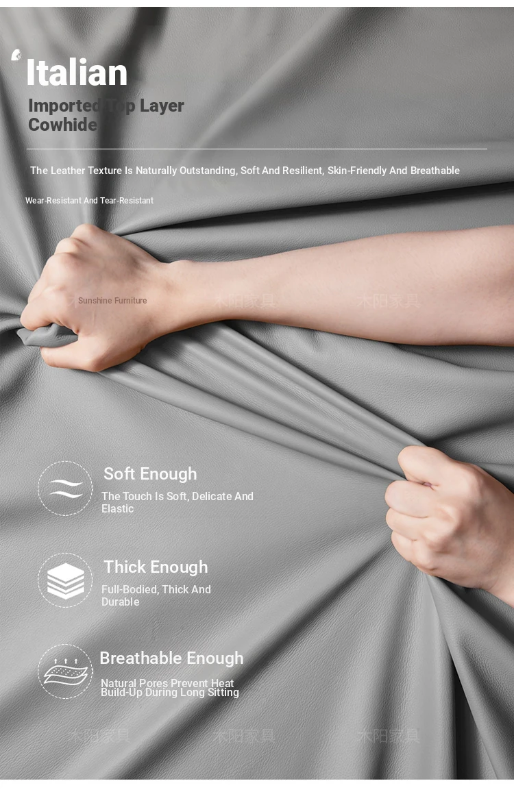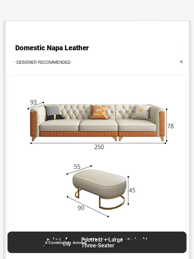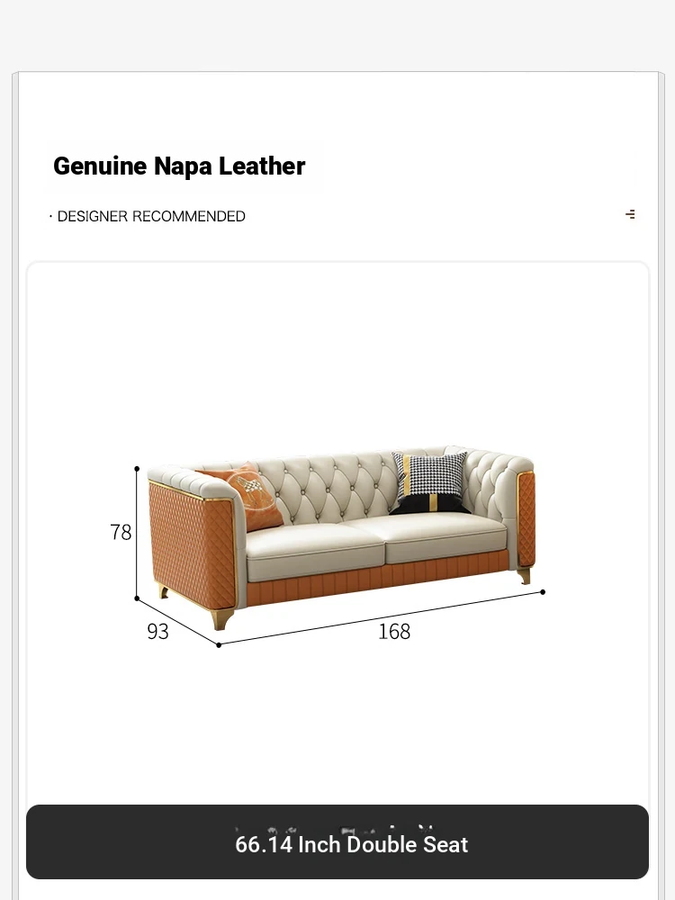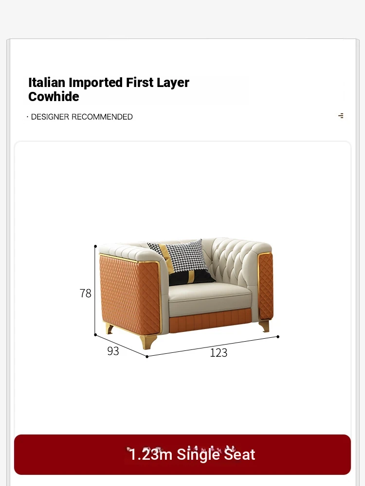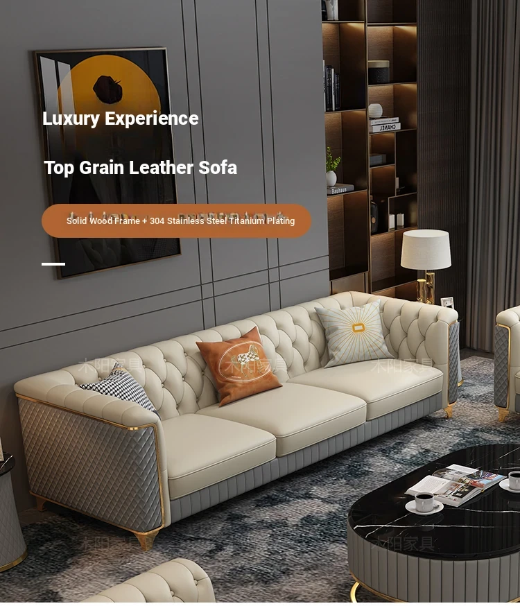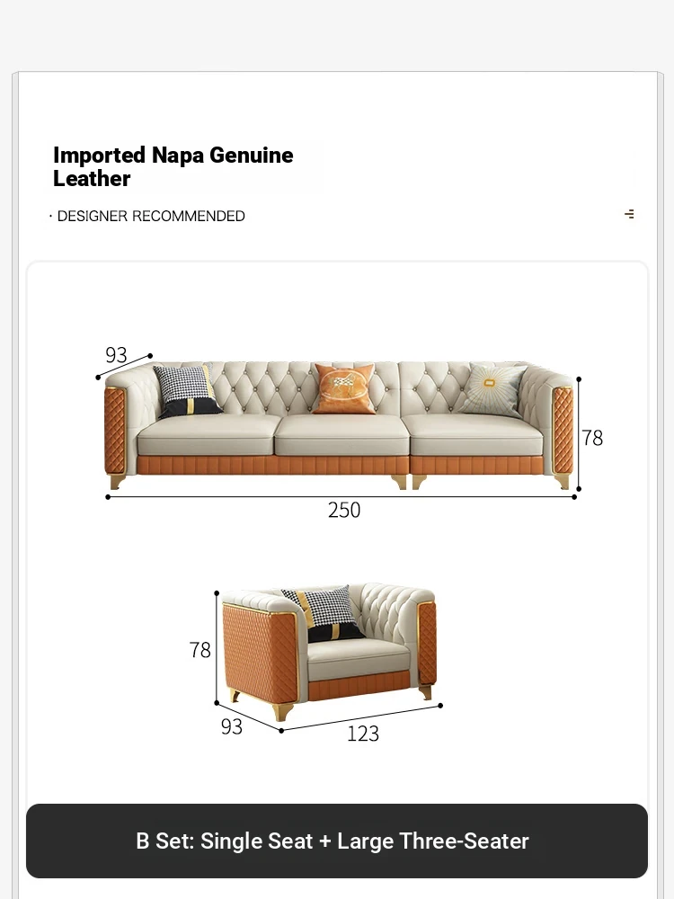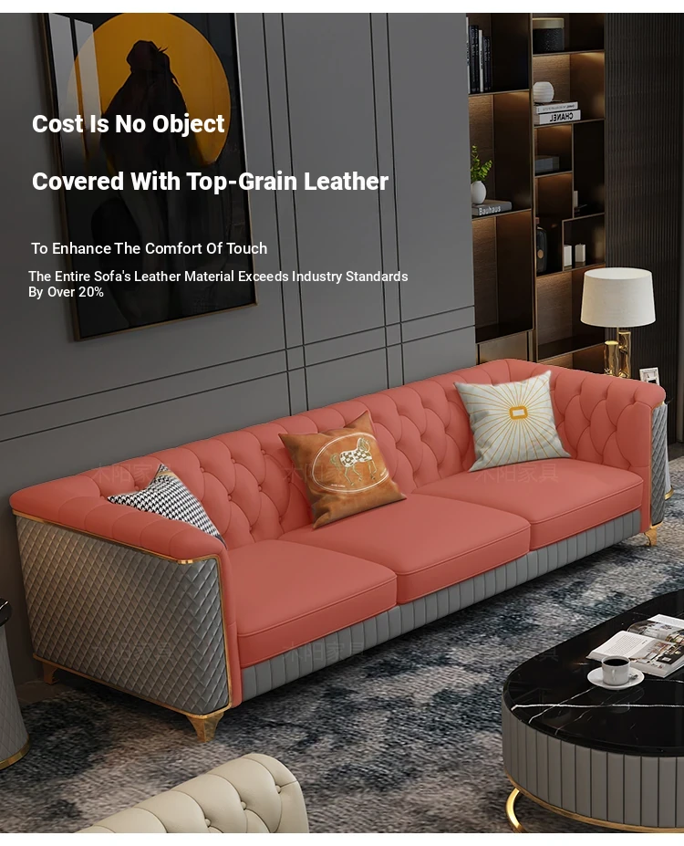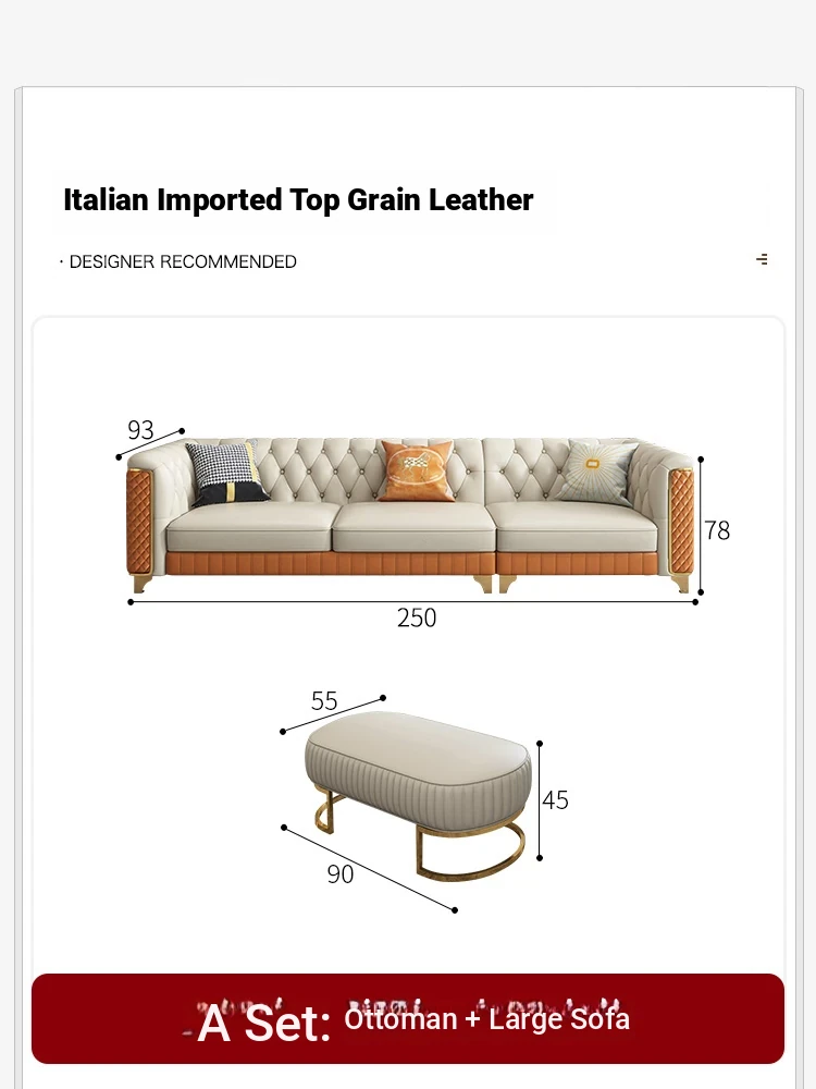 2025 New Italian Luxury Top-Grain Leather Three-Seat Sofa with Pull-Tab Design for Living Room – Genuine Leather from Foshan, Guangdong