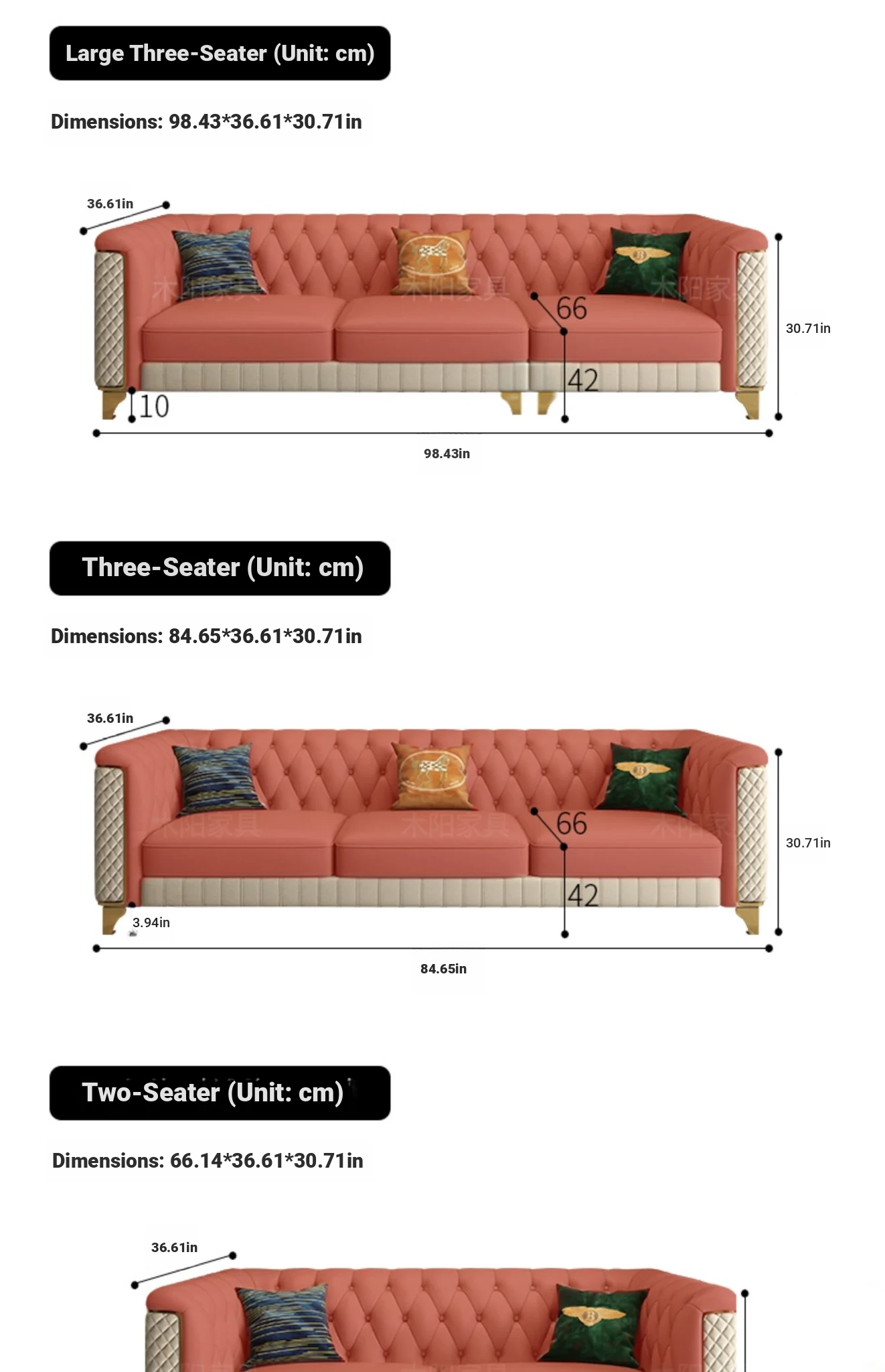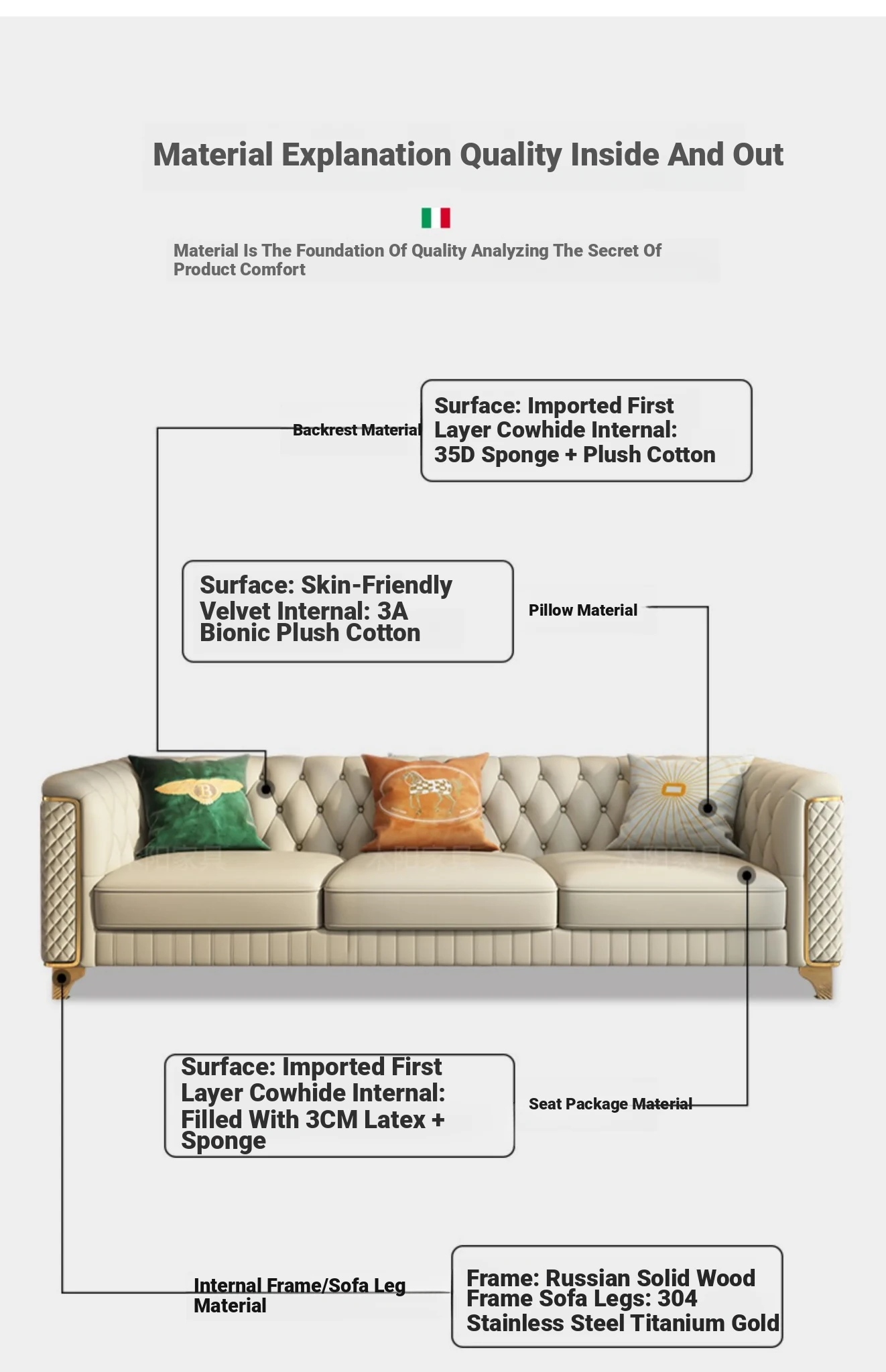[Italian first layer cowhide] 84.65in three