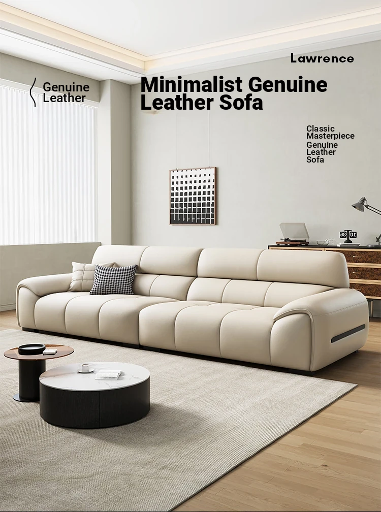 2025 New Italian Minimalist Genuine Leather Sofa - Lightweight Luxury Small Apartment Directly Upholstered with Top-Grain Cowhide in Elegant Green