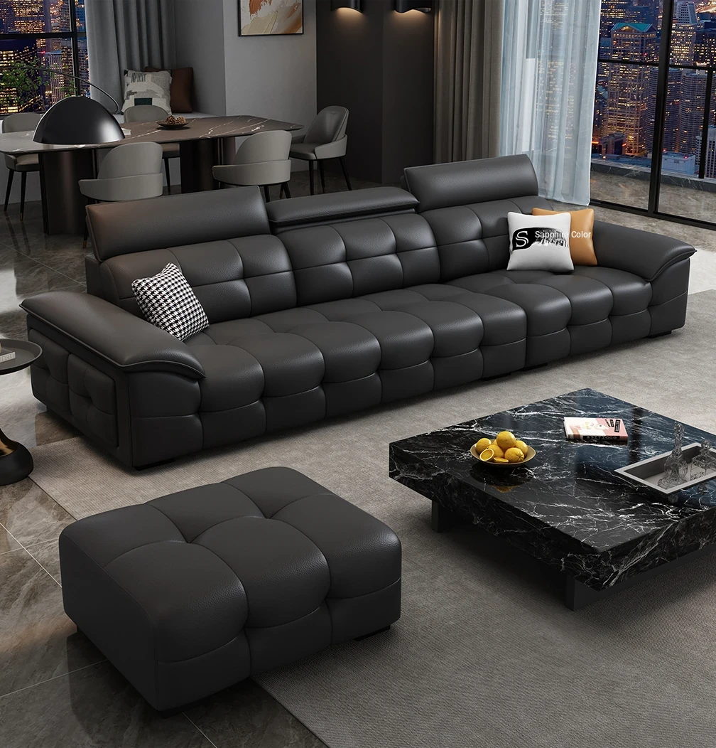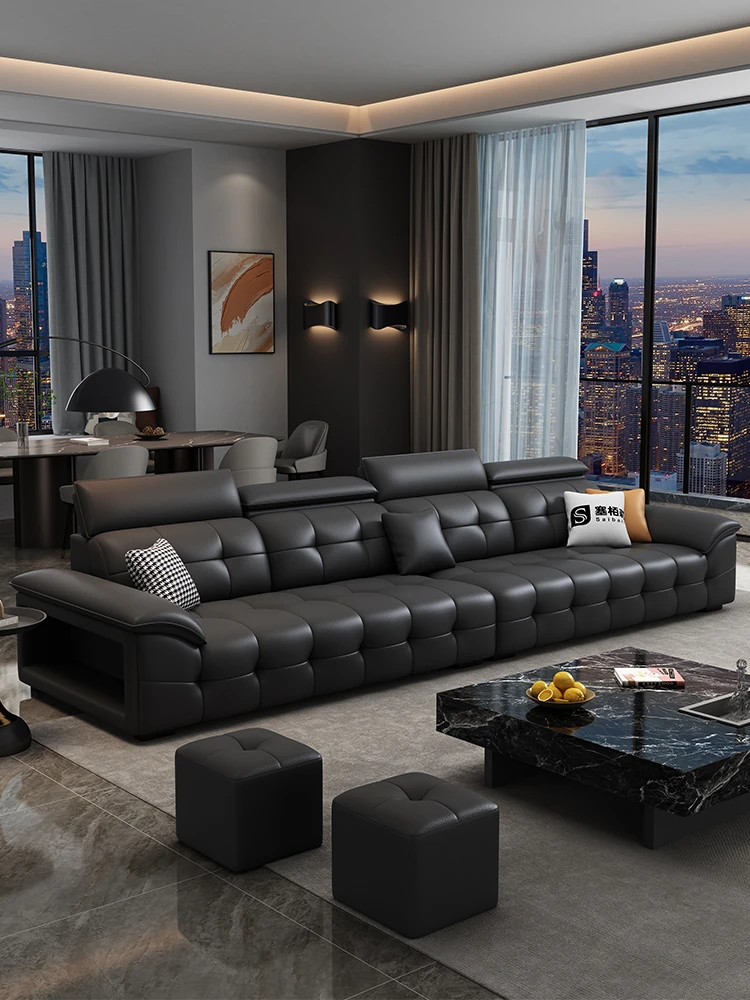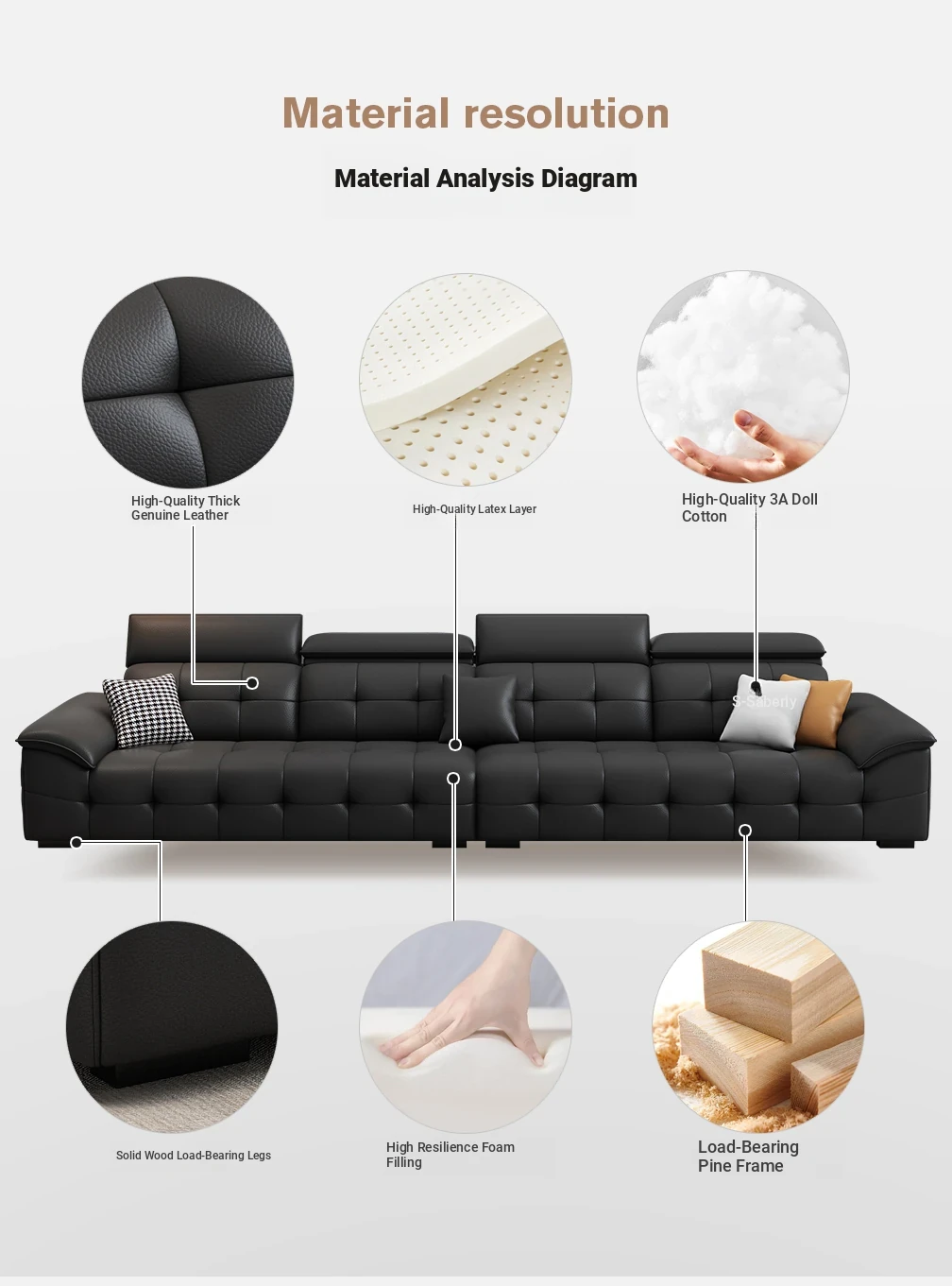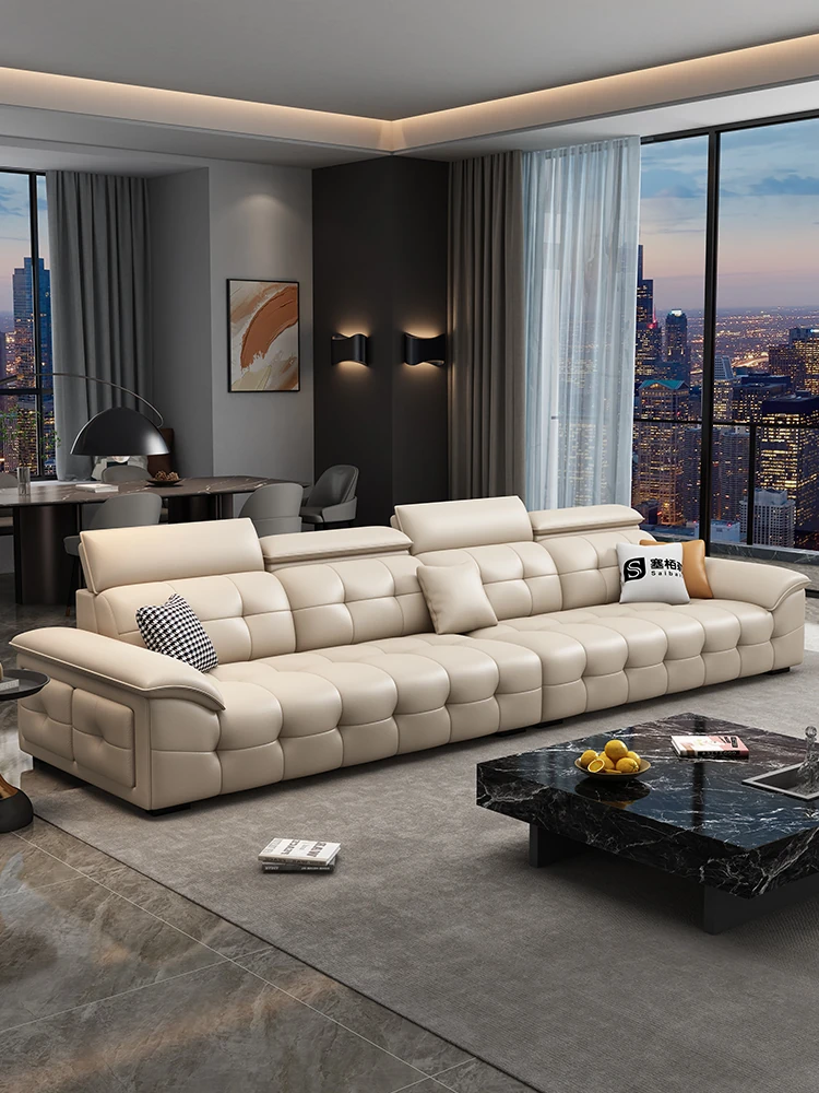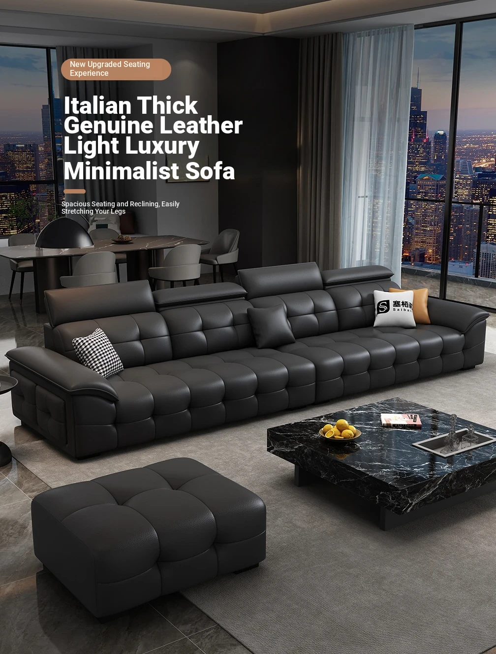 2025 New Lawrence Italian Genuine Leather Sofa - Modern Minimalist 3-Seater Couch for Small Living Rooms - Stylish and Comfortable Combination