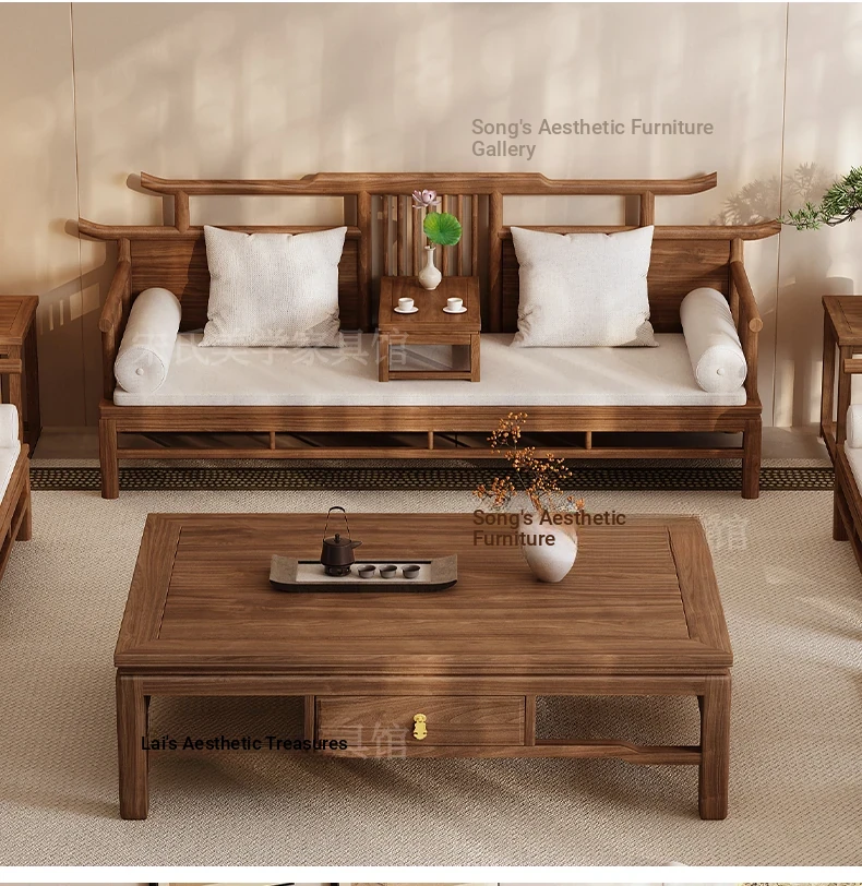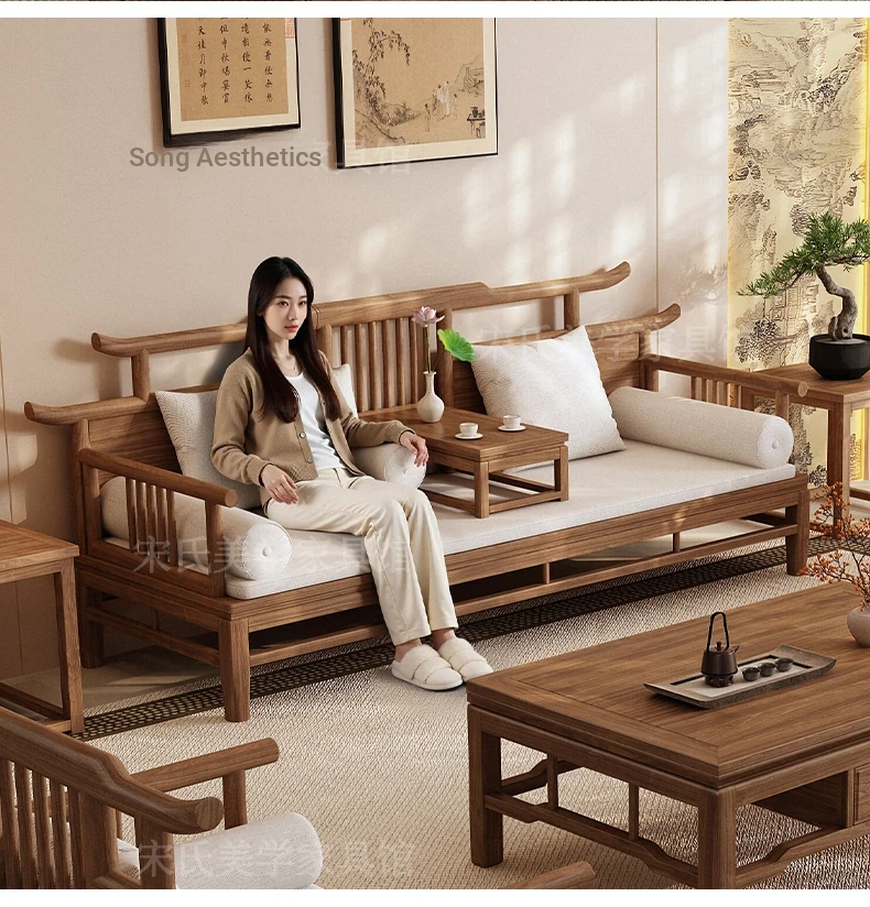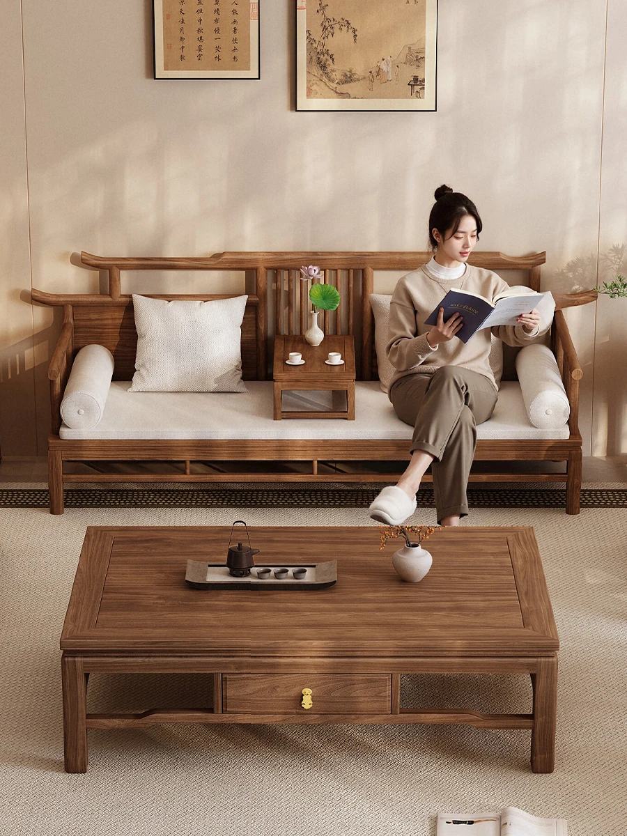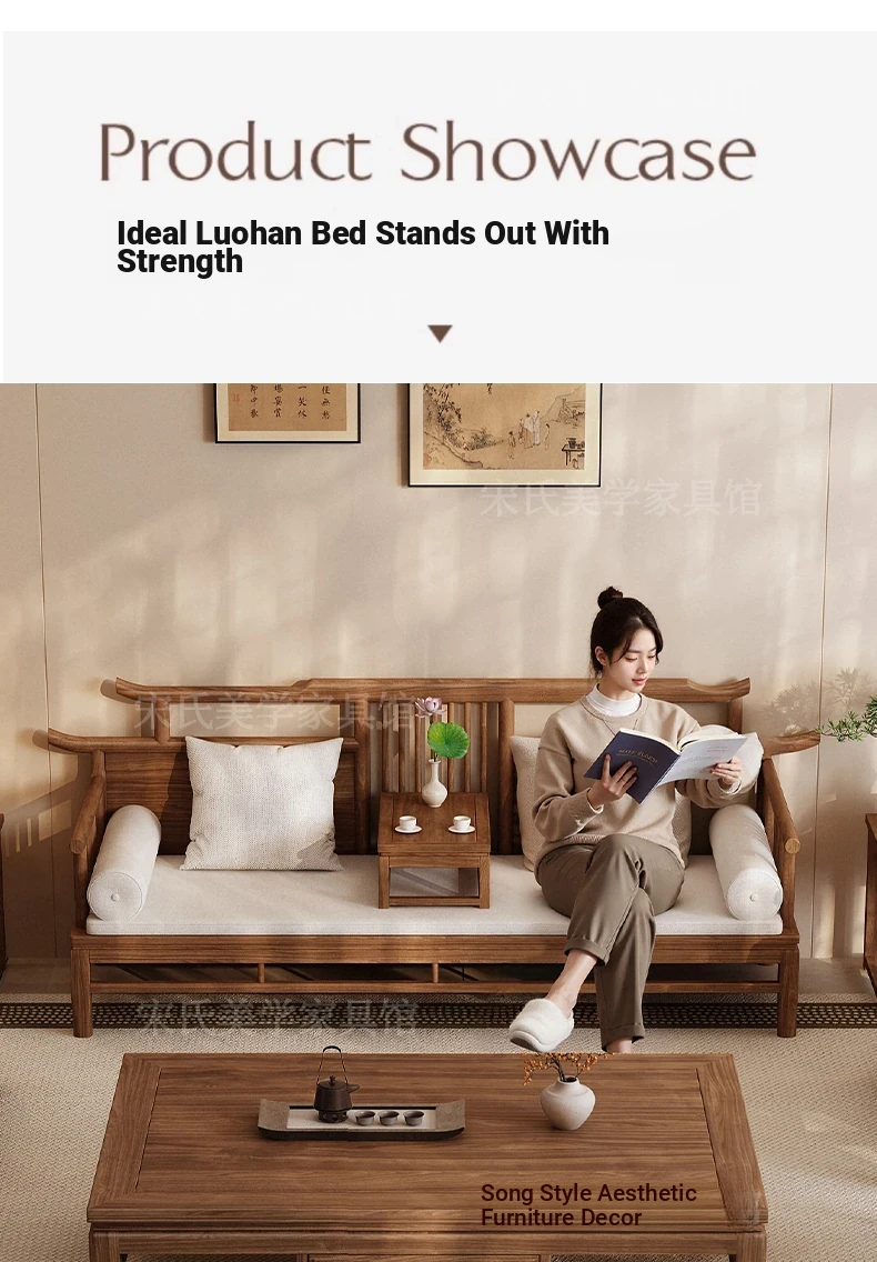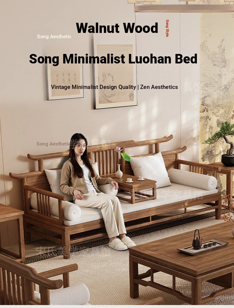2025 New Minimalist Zen Walnut Wood Buddha Bed - All Solid Wood, Versatile for Winter and Summer, Embracing Song Dynasty Aesthetics in Modern Chinese Style Furniture