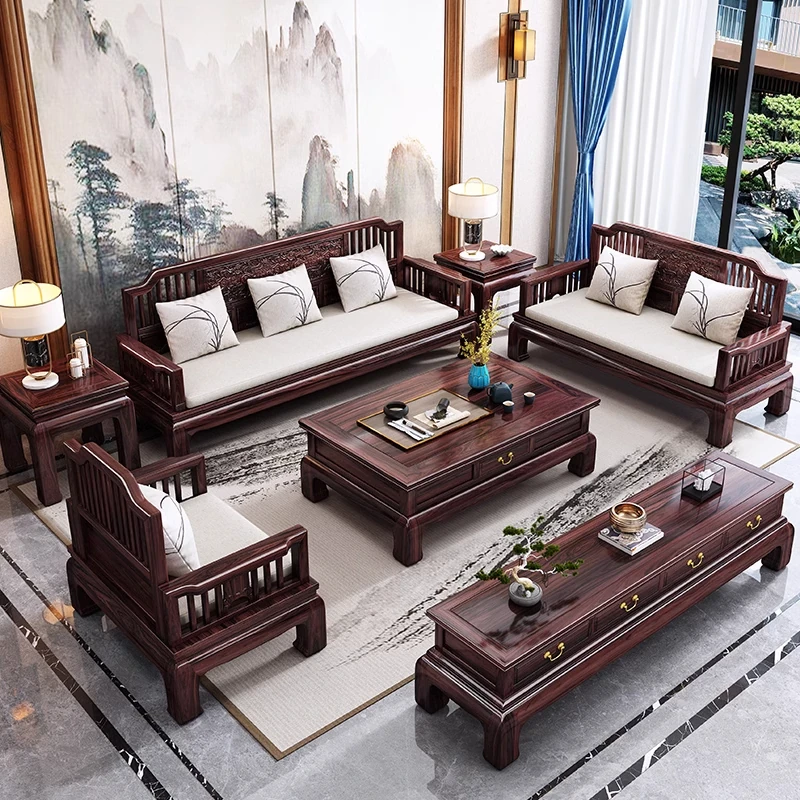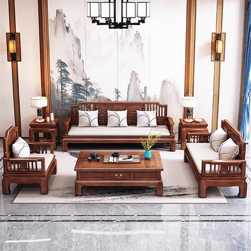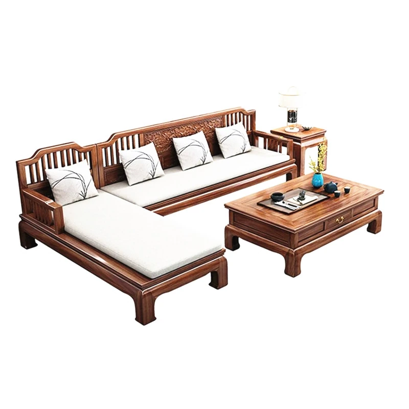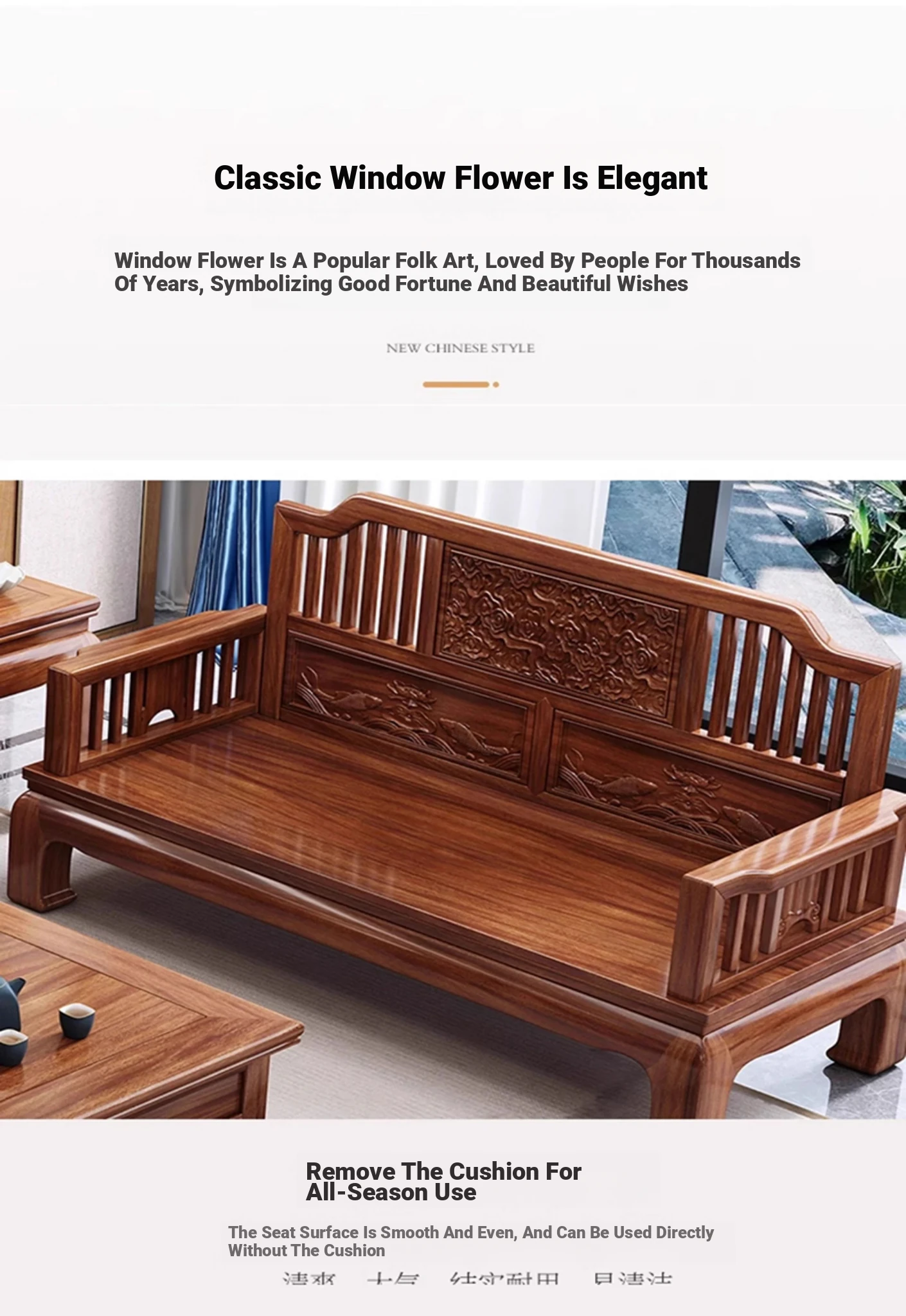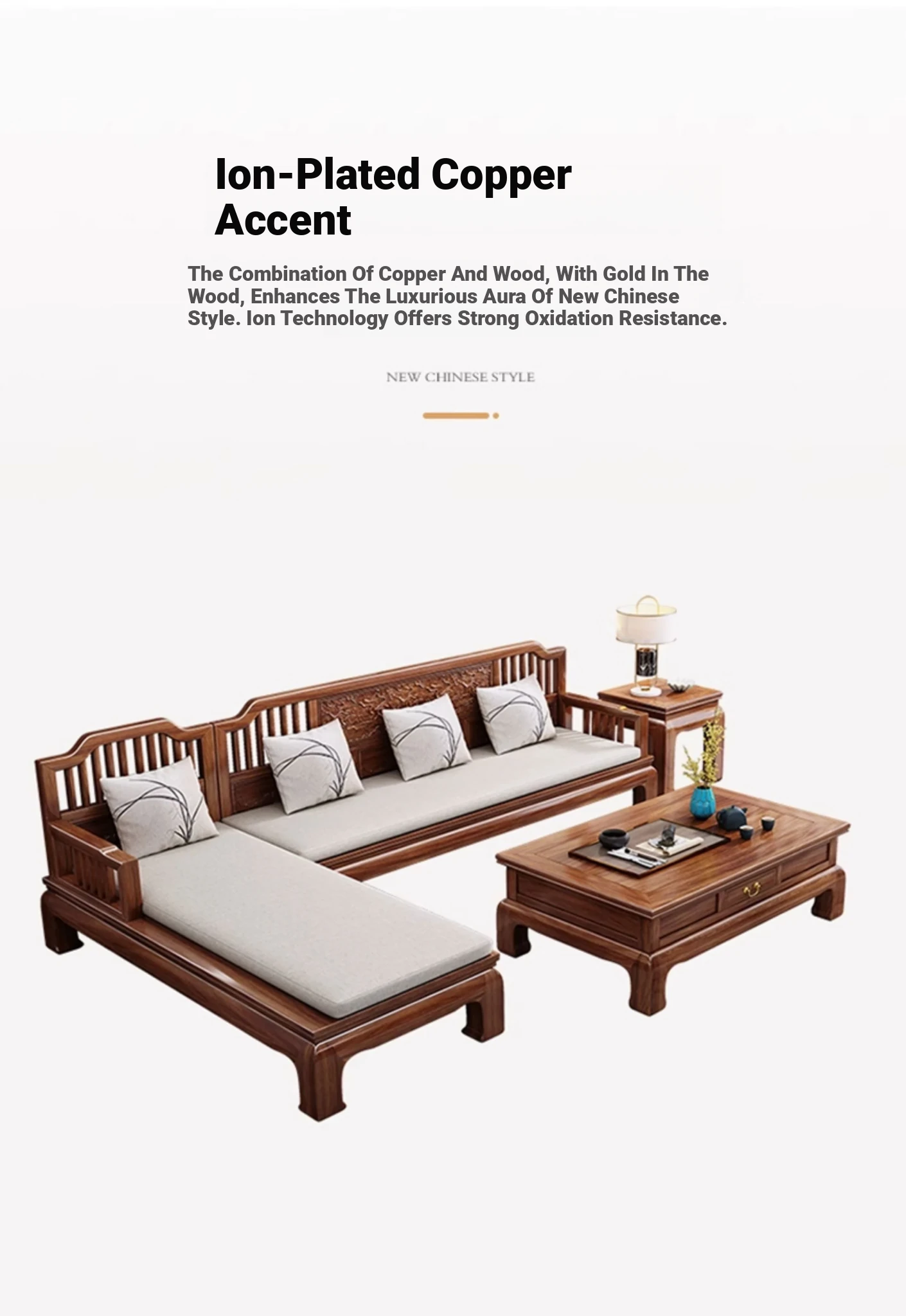 2025 New Stylish Black Walnut Solid Wood Sofa Set - Compact Corner Chaise Lounge for Small Living Rooms, Versatile for Winter and Summer Use, Perfect for Modern Homes