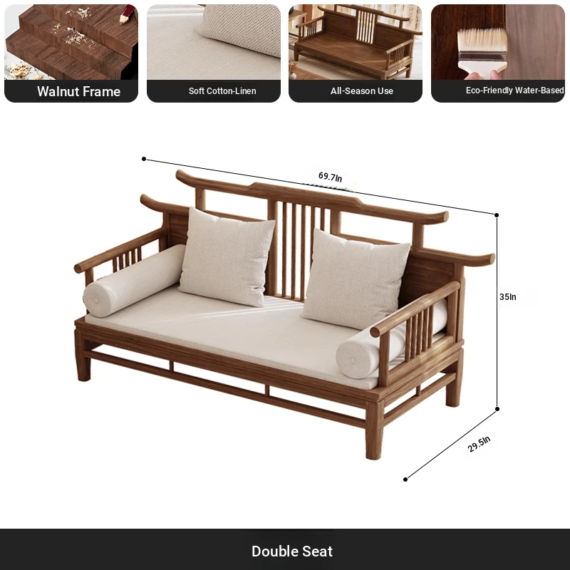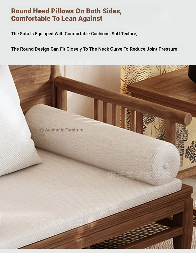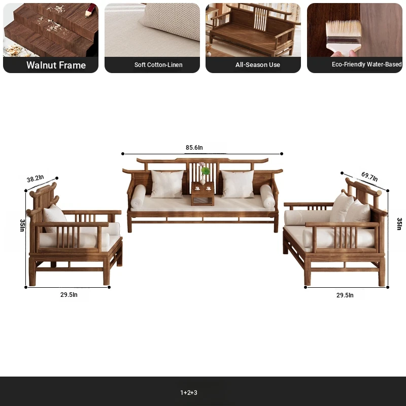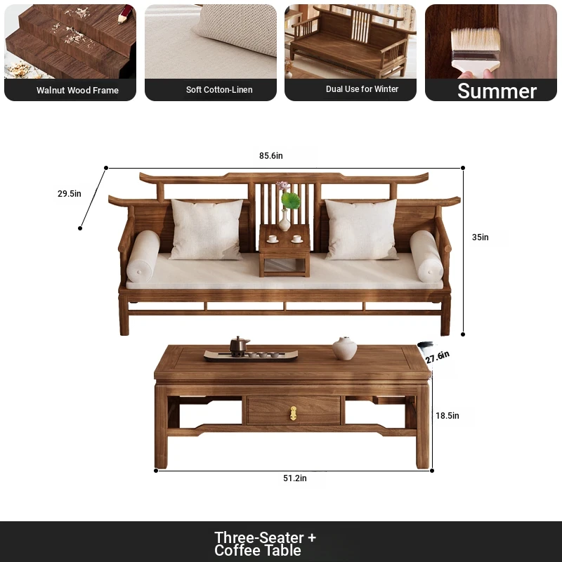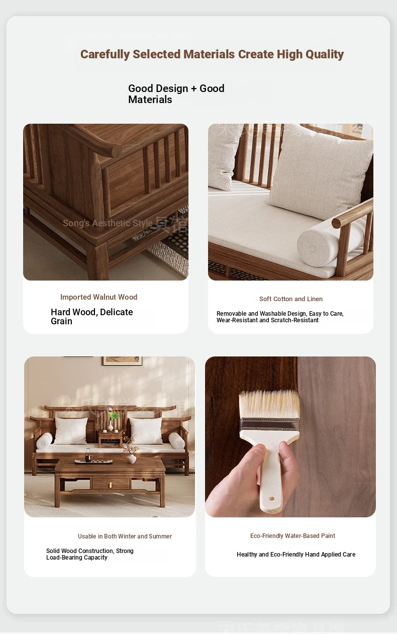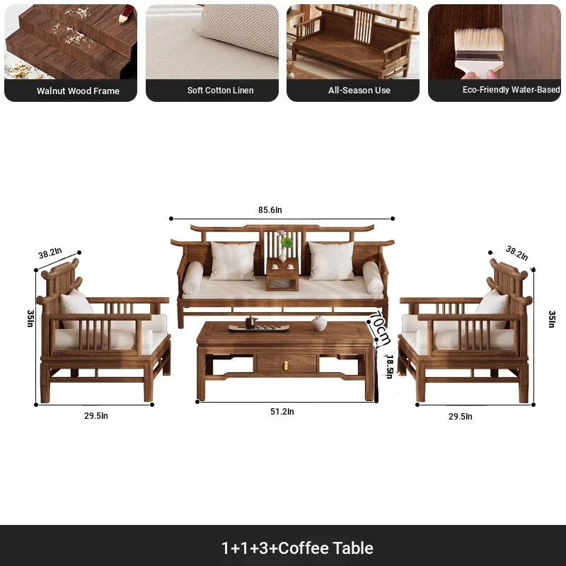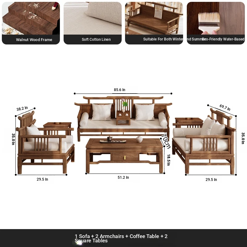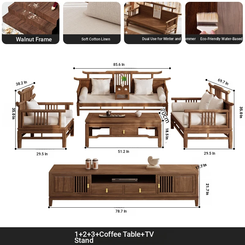 2025 New Walnut Solid Wood Sofa Set - Elegant New Chinese Style U-Shaped Living Room Furniture Inspired by Song Dynasty Aesthetics, Fully Assembled for Your Comfort