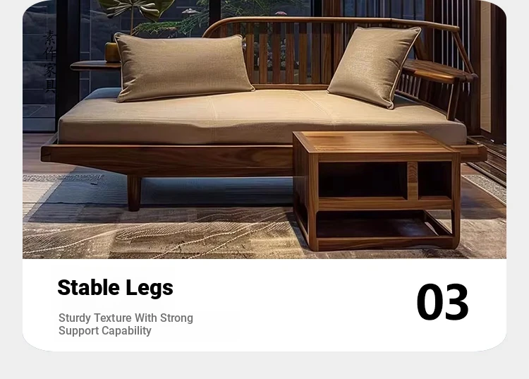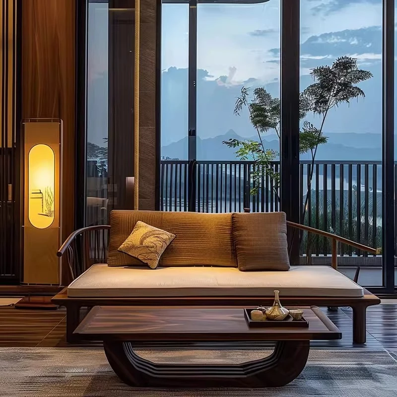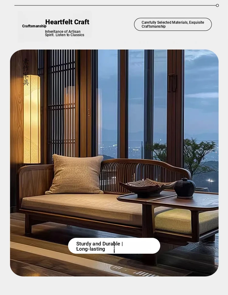 2025 New Zen Style Solid Wood Sofa - Premium Black Walnut and Ash Furniture for Hotels, B&Bs, and Offices - Elevate Your Space with Sophisticated Design