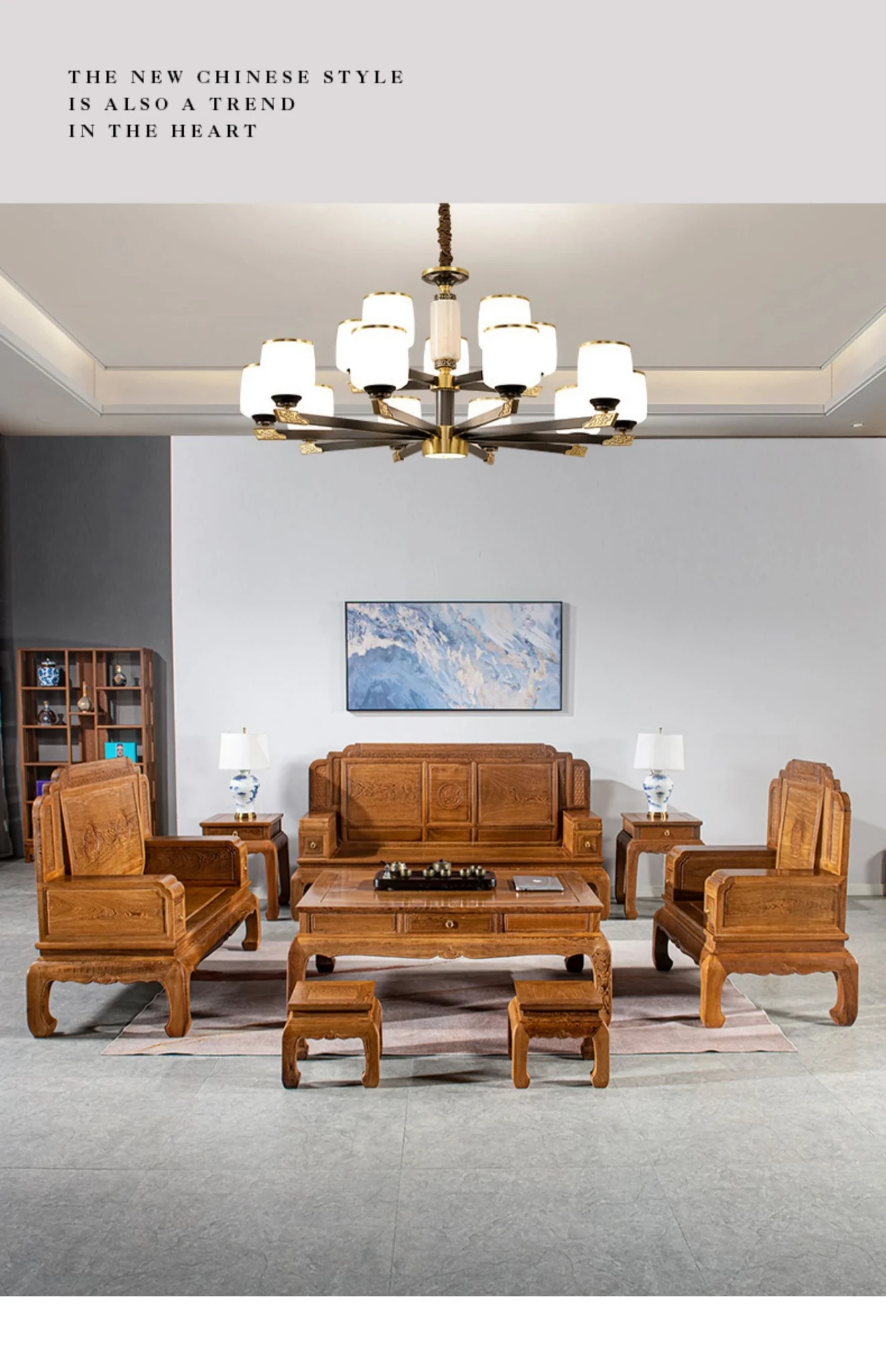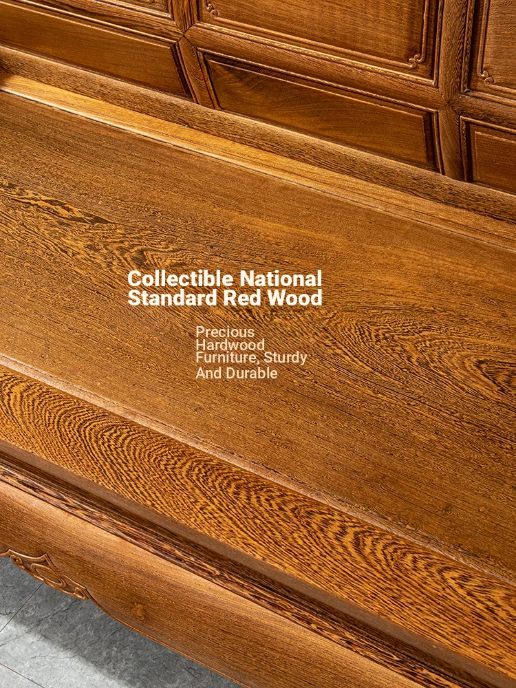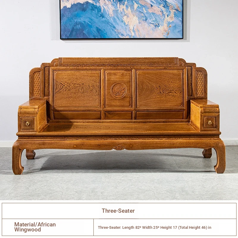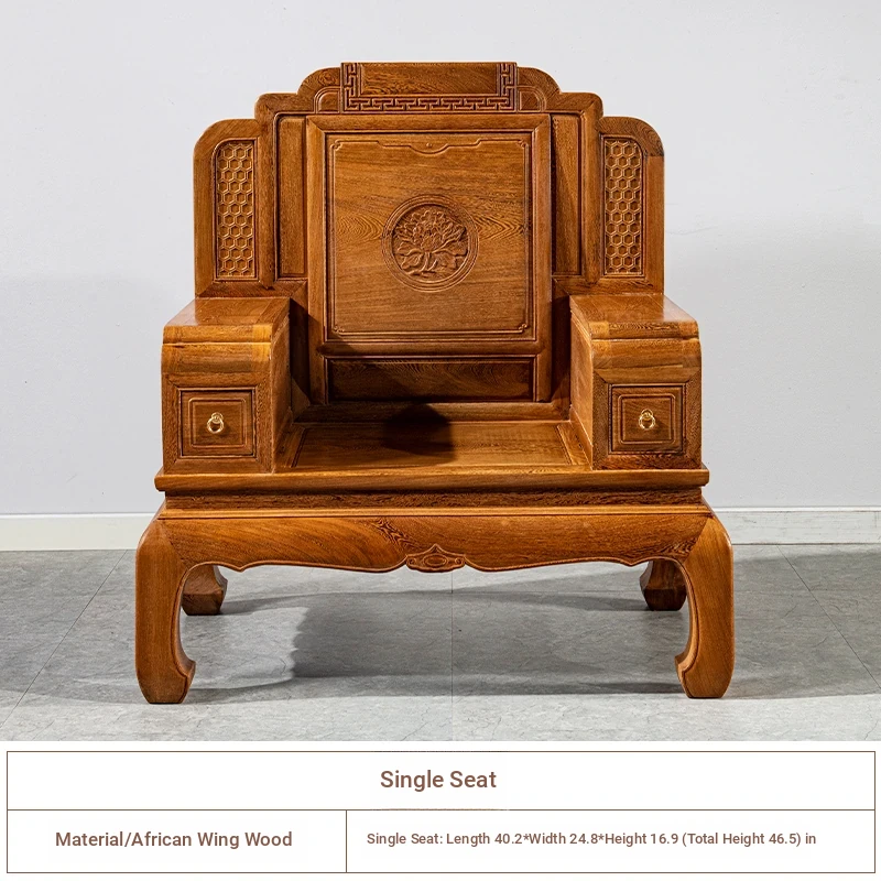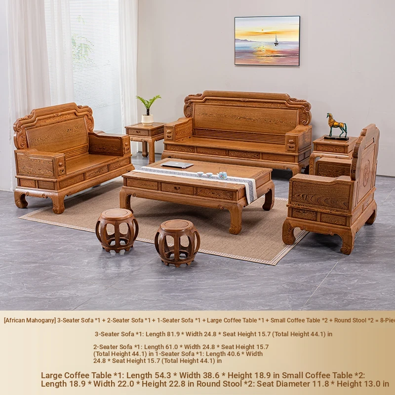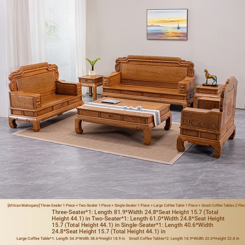 Authentic National Standard Red Wood Furniture - New Chinese Style Solid Wood Winged Sofa Set, 8-Piece Classic Sofa Chair Combination for Your Living Room