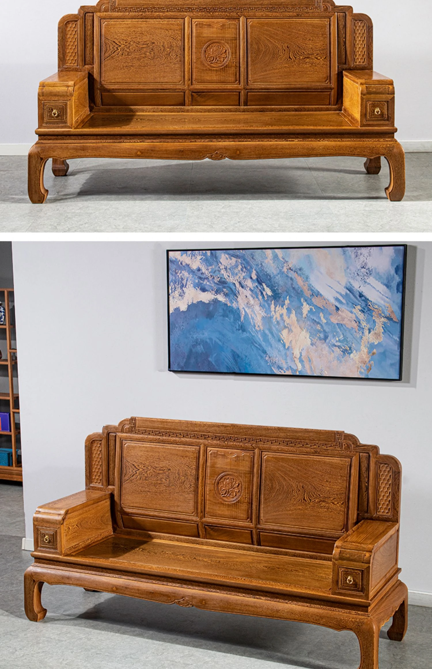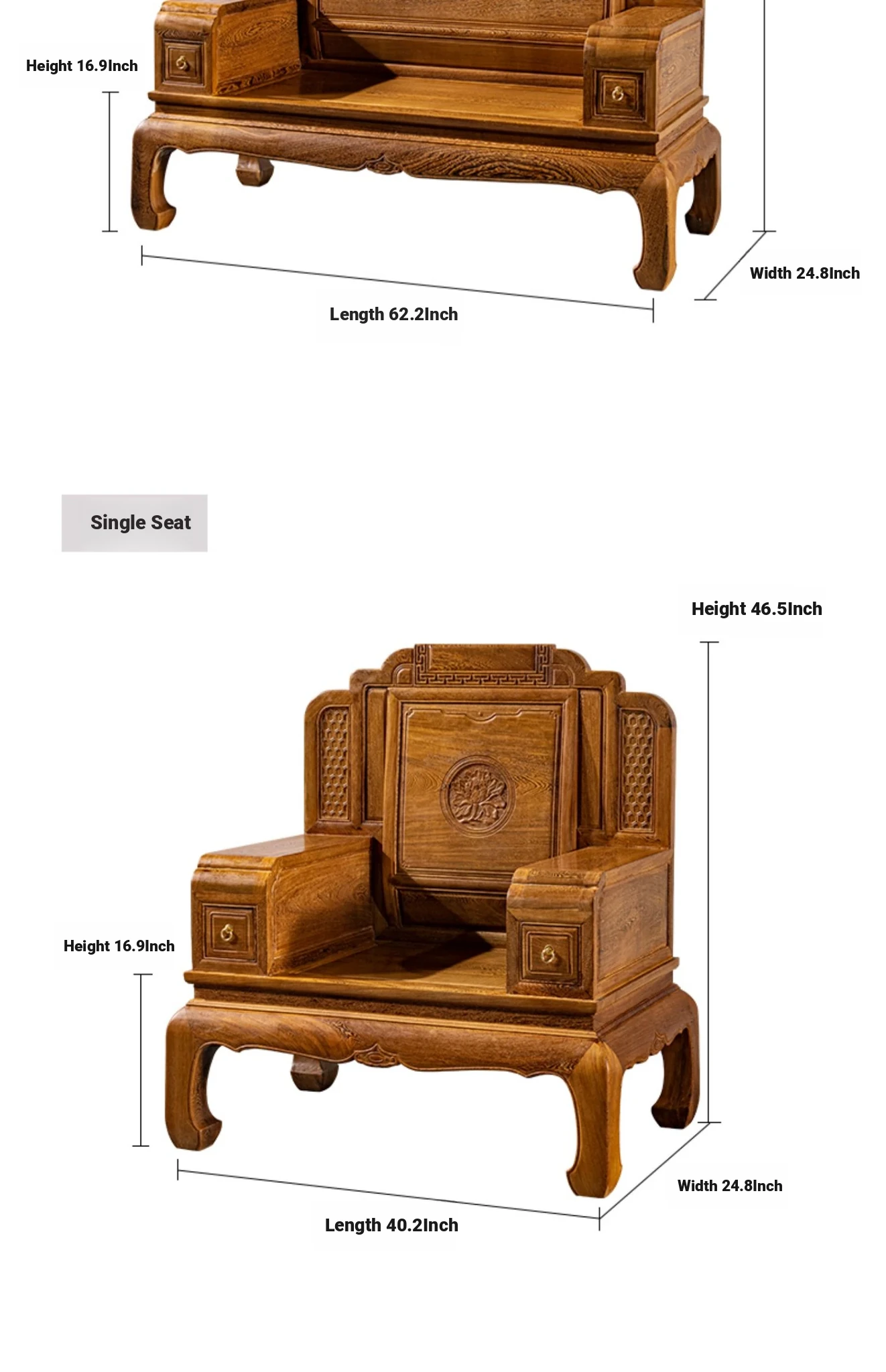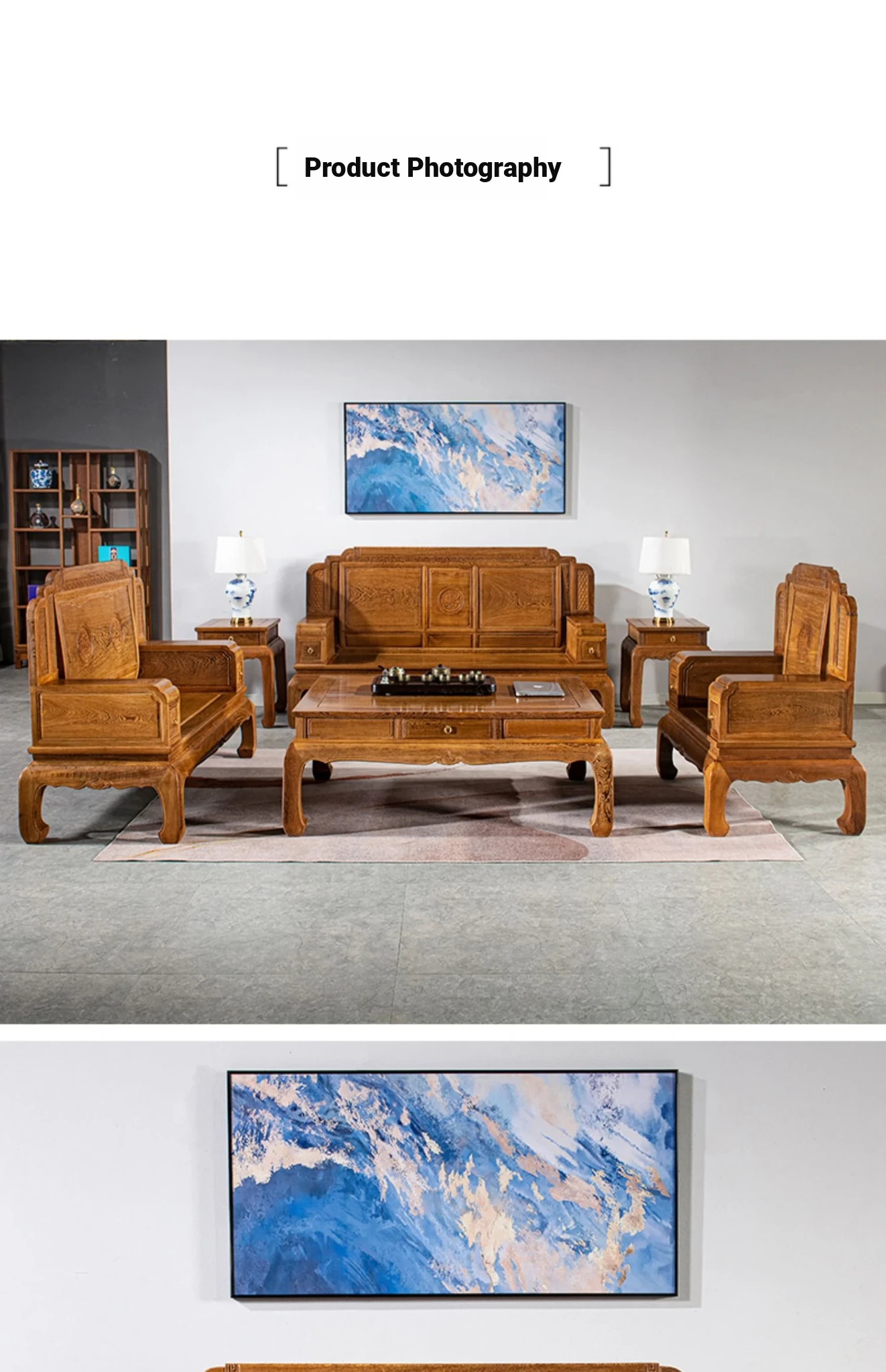 Authentic National Standard Red Wood Furniture - New Chinese Style Solid Wood Winged Sofa Set, 8-Piece Classic Sofa Chair Combination for Your Living Room