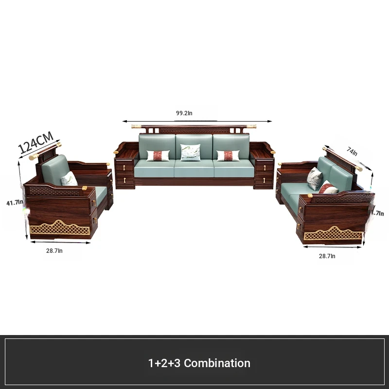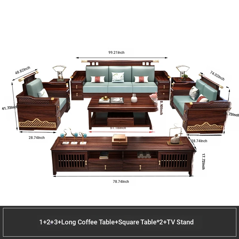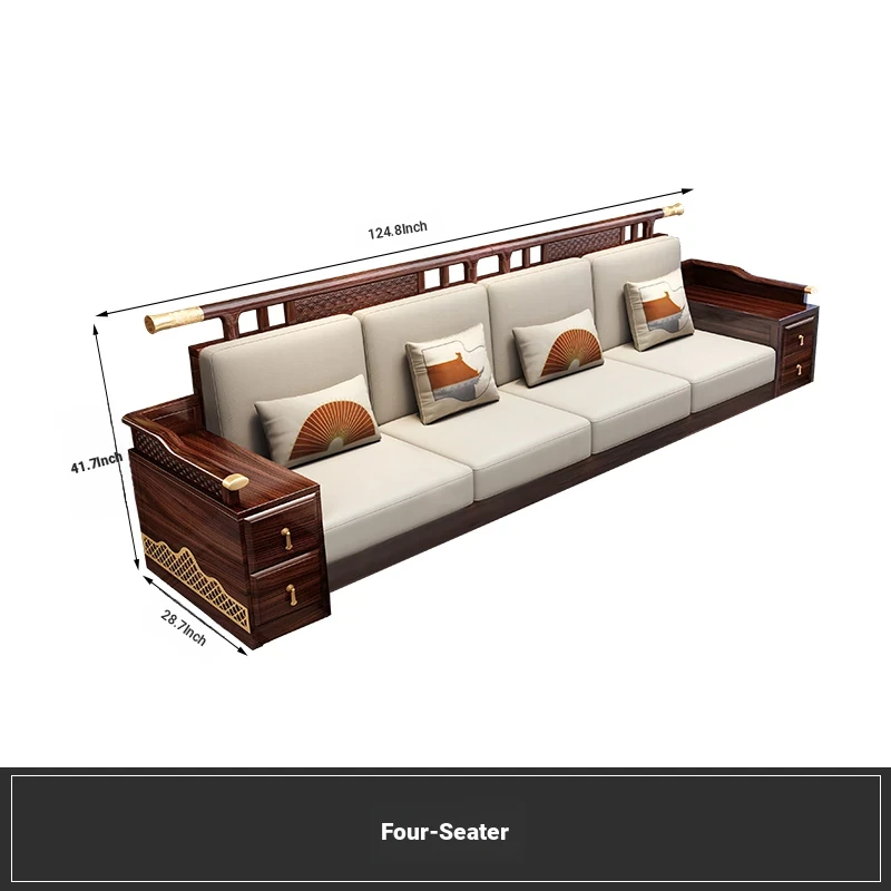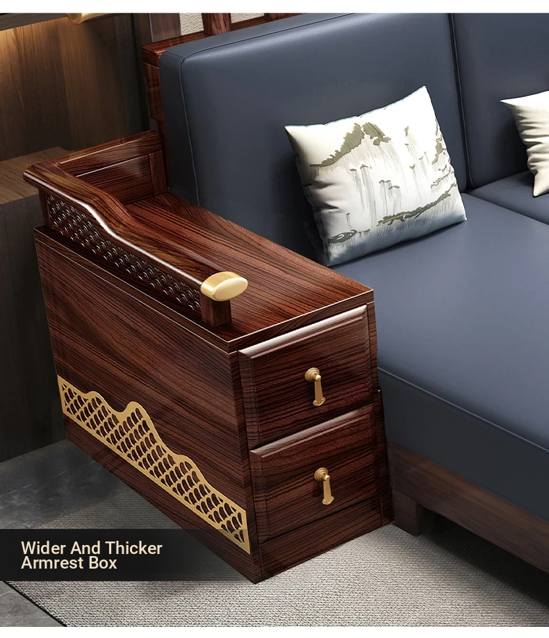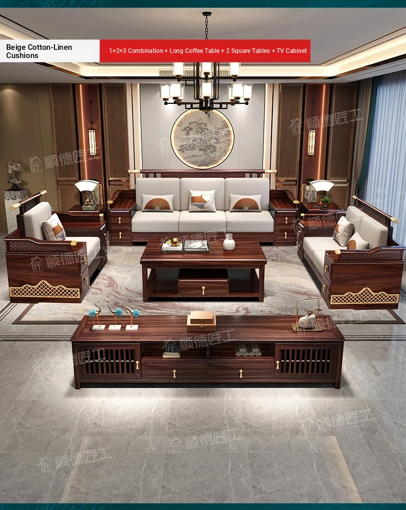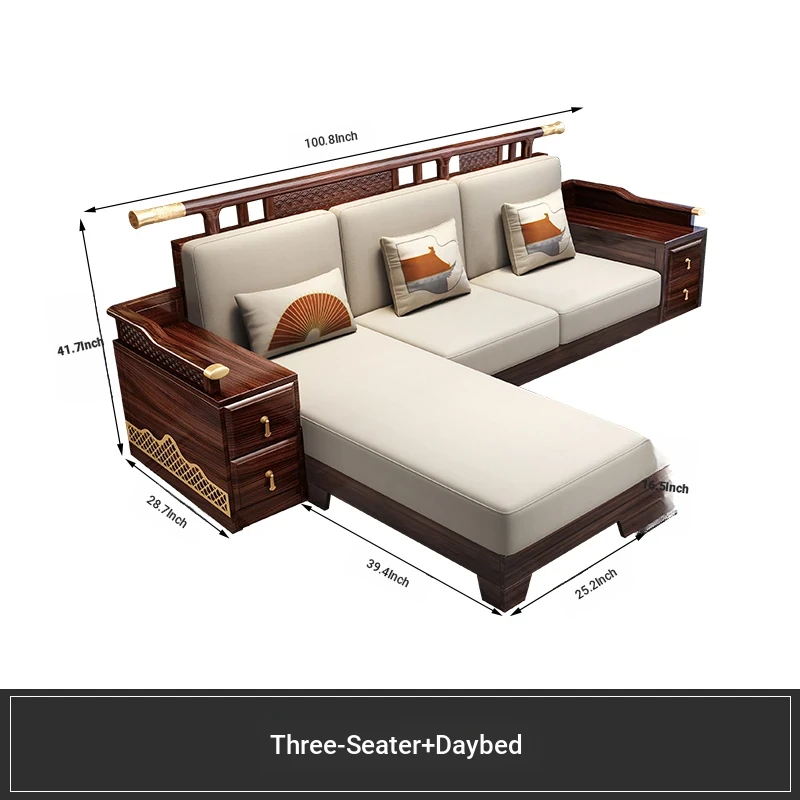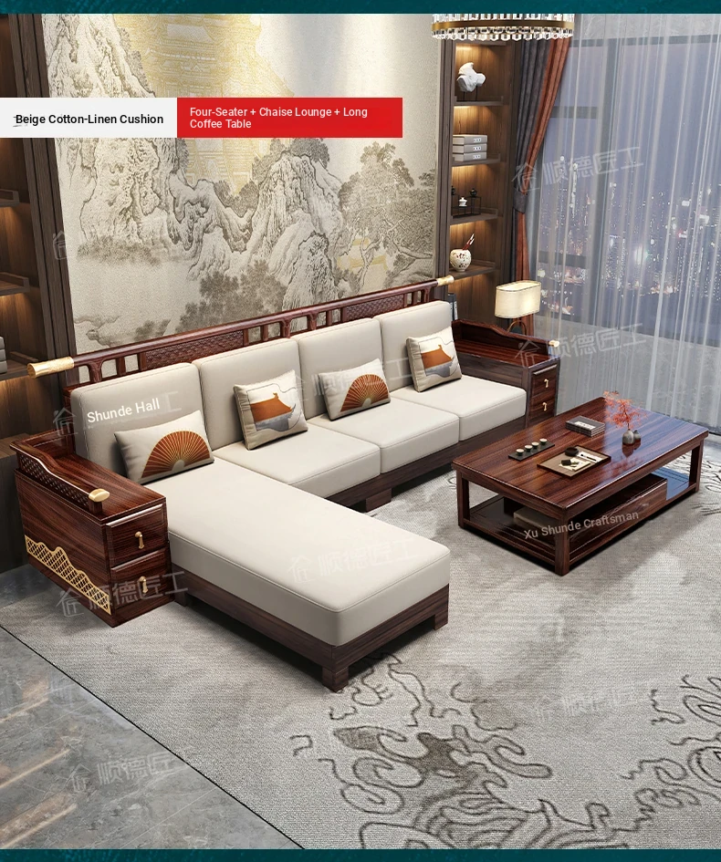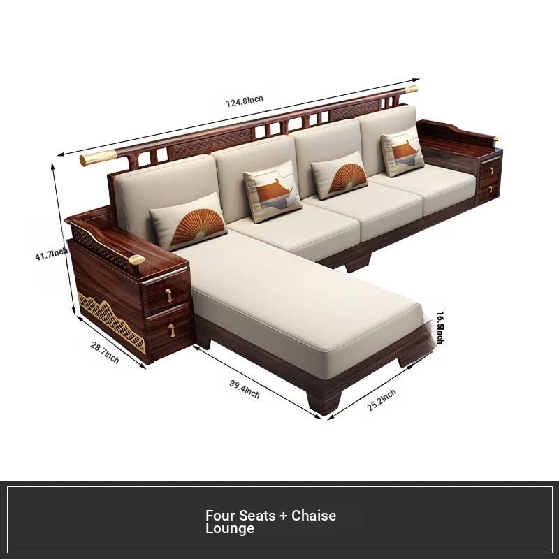Black Walnut Solid Wood Sofa Set - New Chinese Style Light Luxury Corner Chaise Lounge for Large and Small Living Rooms - Minimalist Wooden Furniture