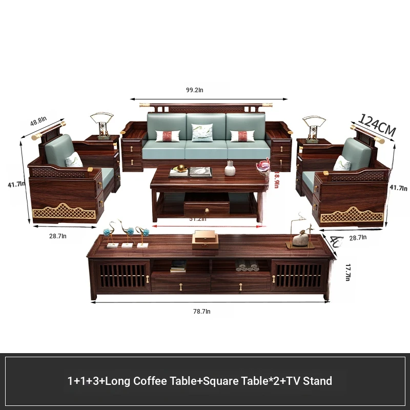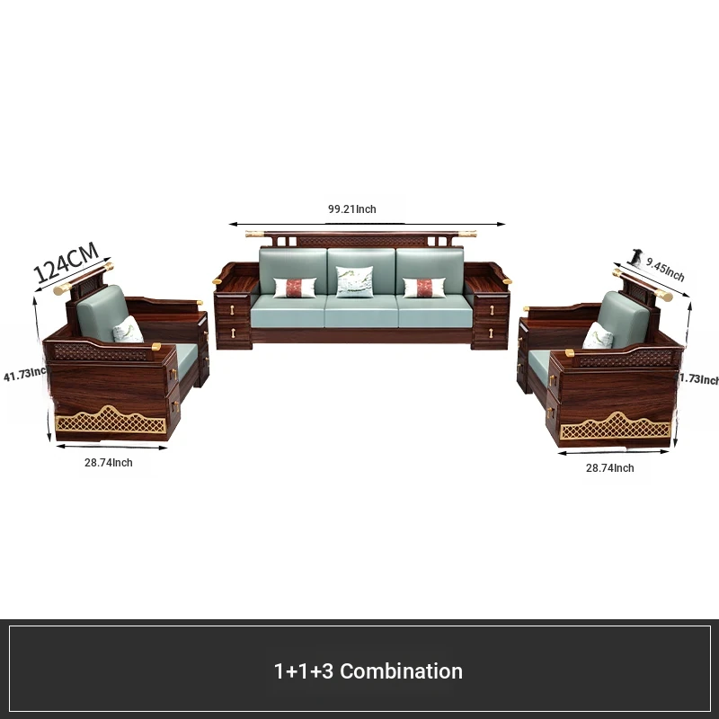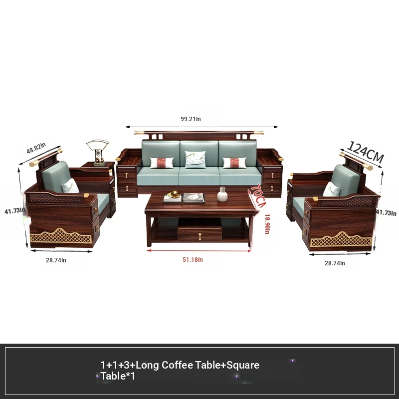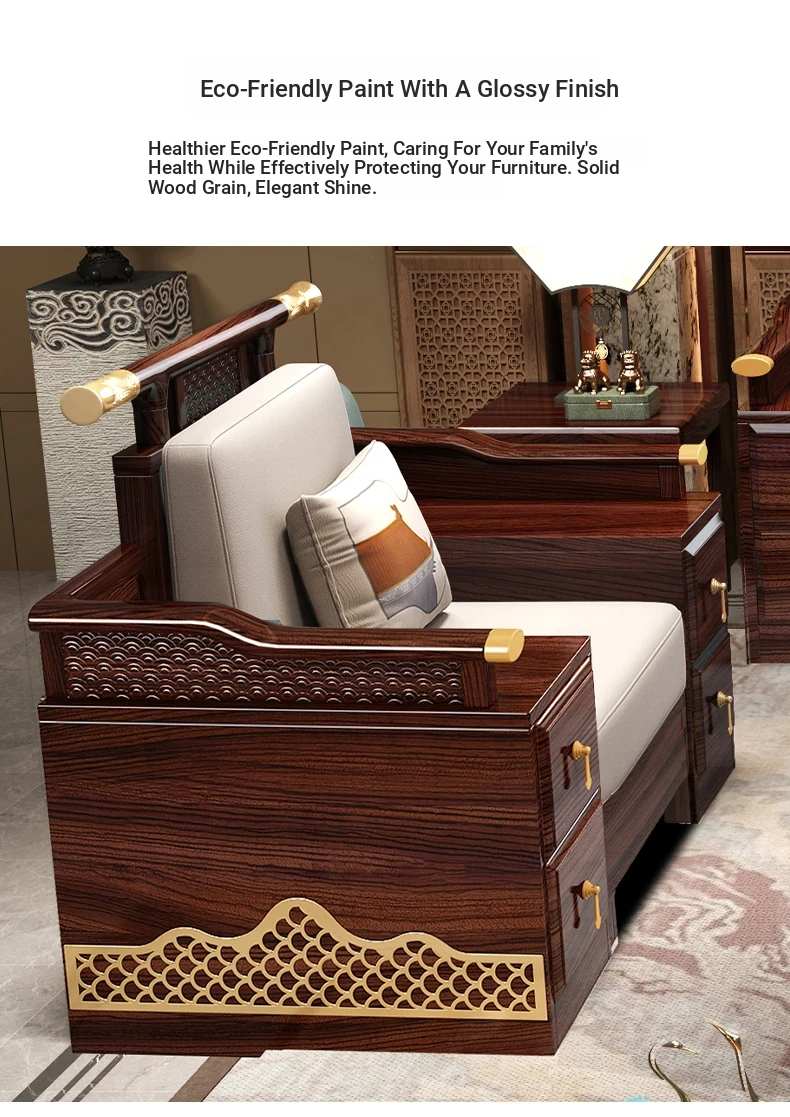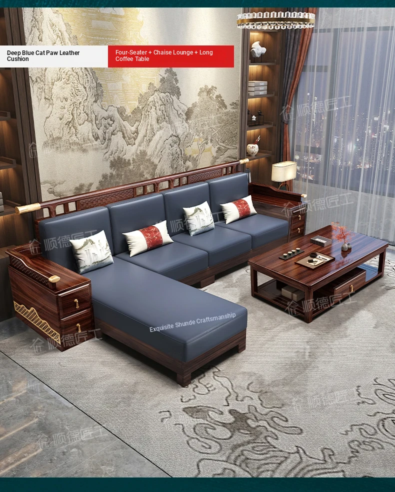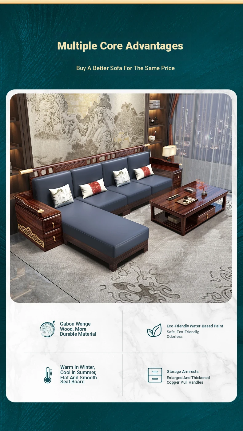 Black Walnut Solid Wood Sofa Set - New Chinese Style Light Luxury Corner Chaise Lounge for Large and Small Living Rooms - Minimalist Wooden Furniture