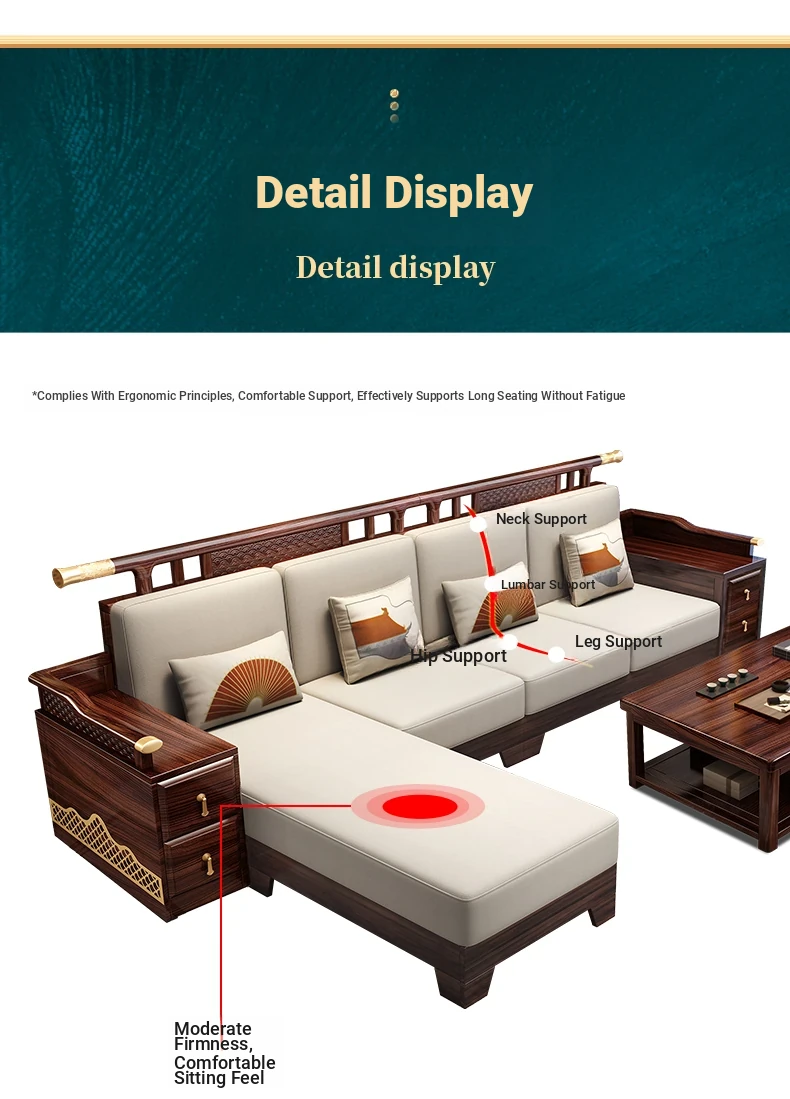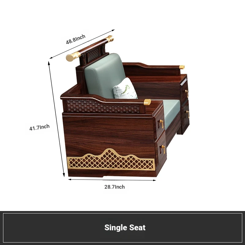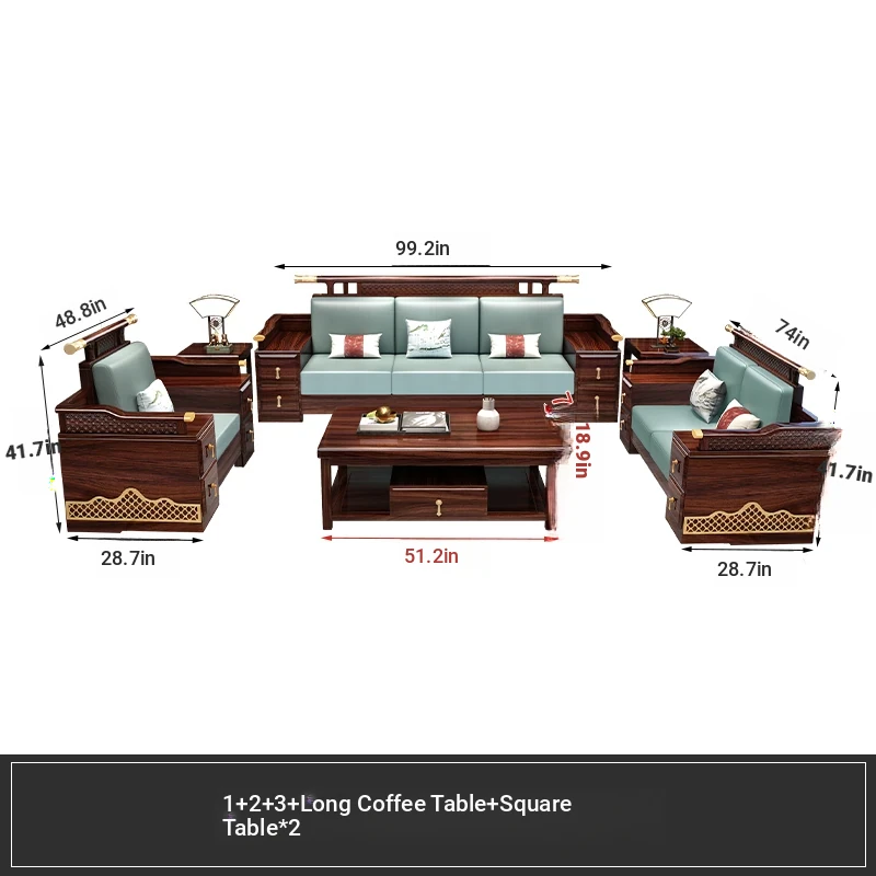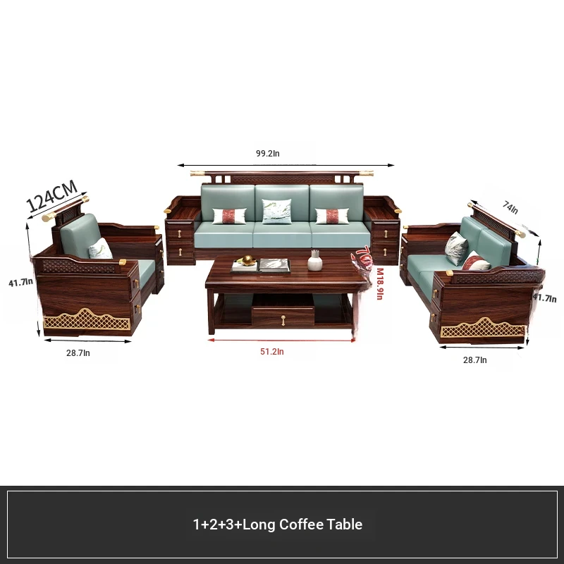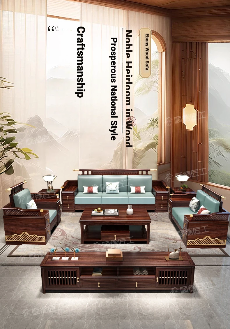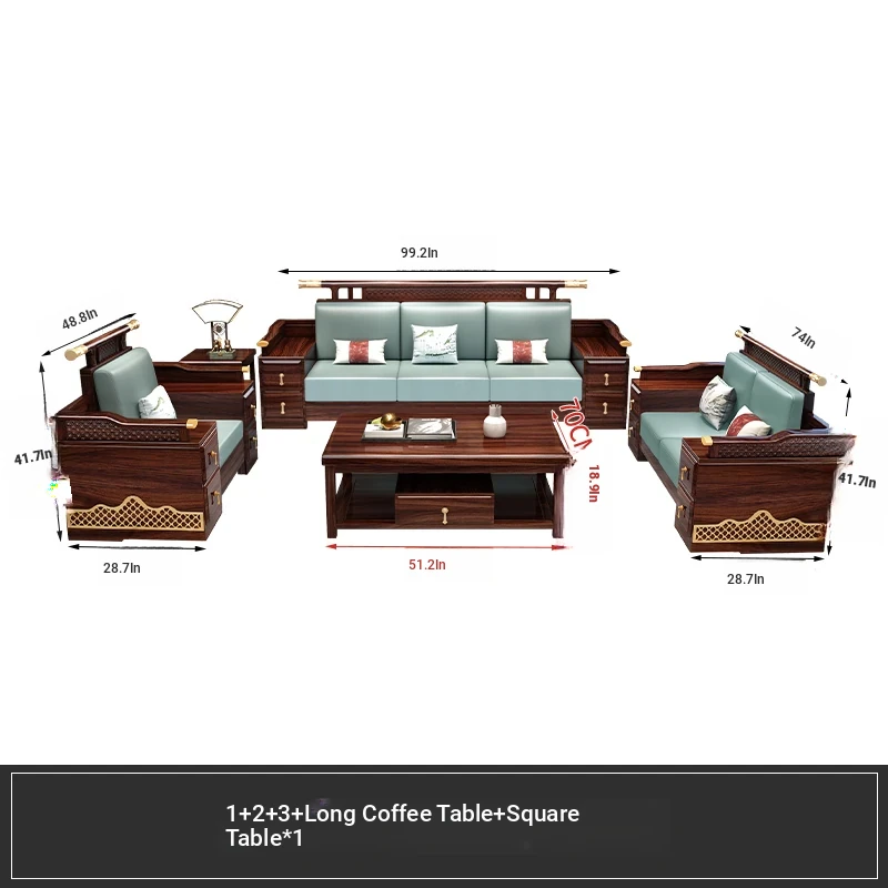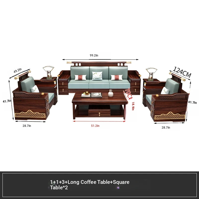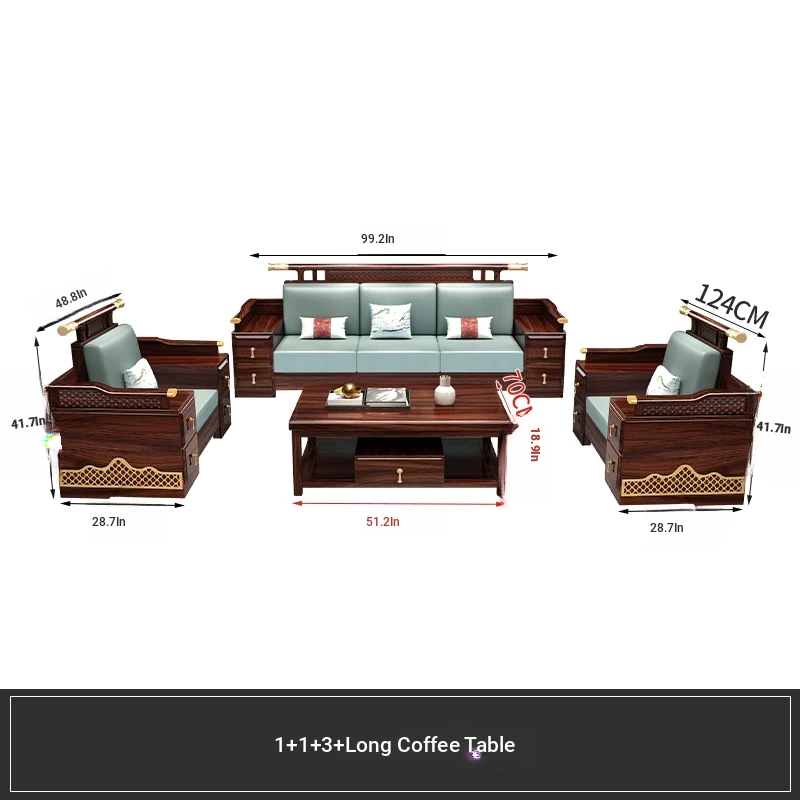 Black Walnut Solid Wood Sofa Set - New Chinese Style Light Luxury Corner Chaise Lounge for Large and Small Living Rooms - Minimalist Wooden Furniture