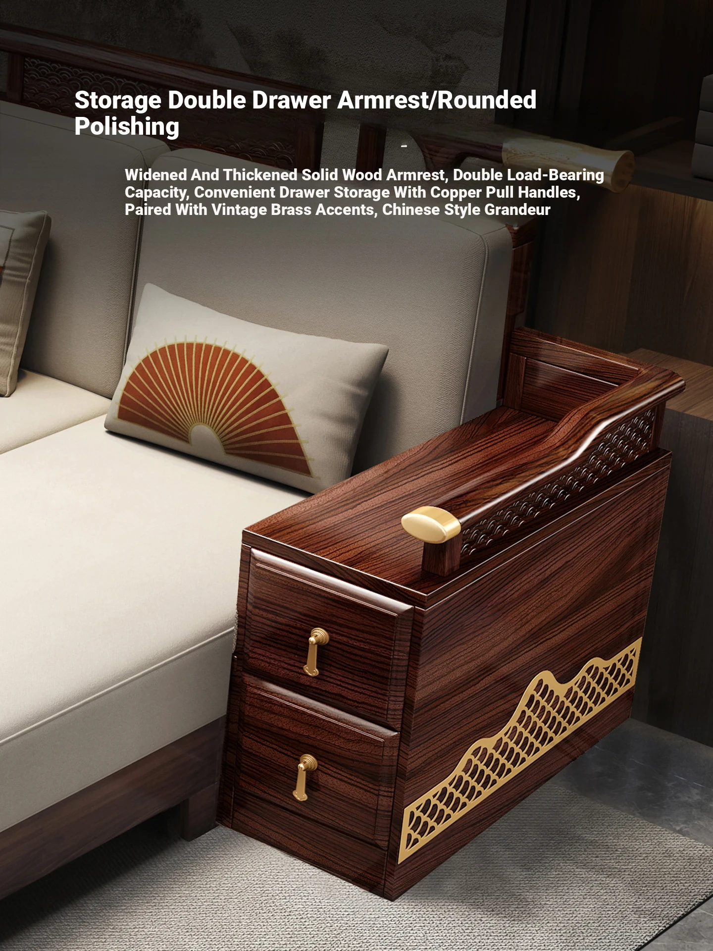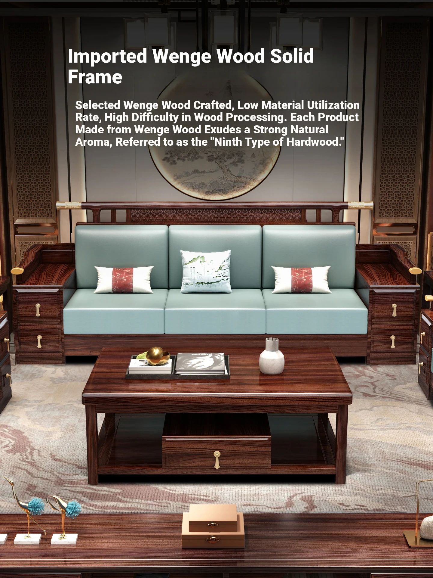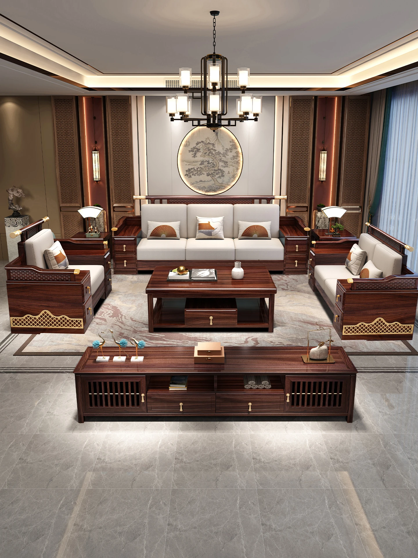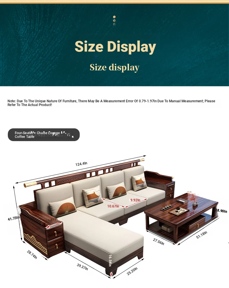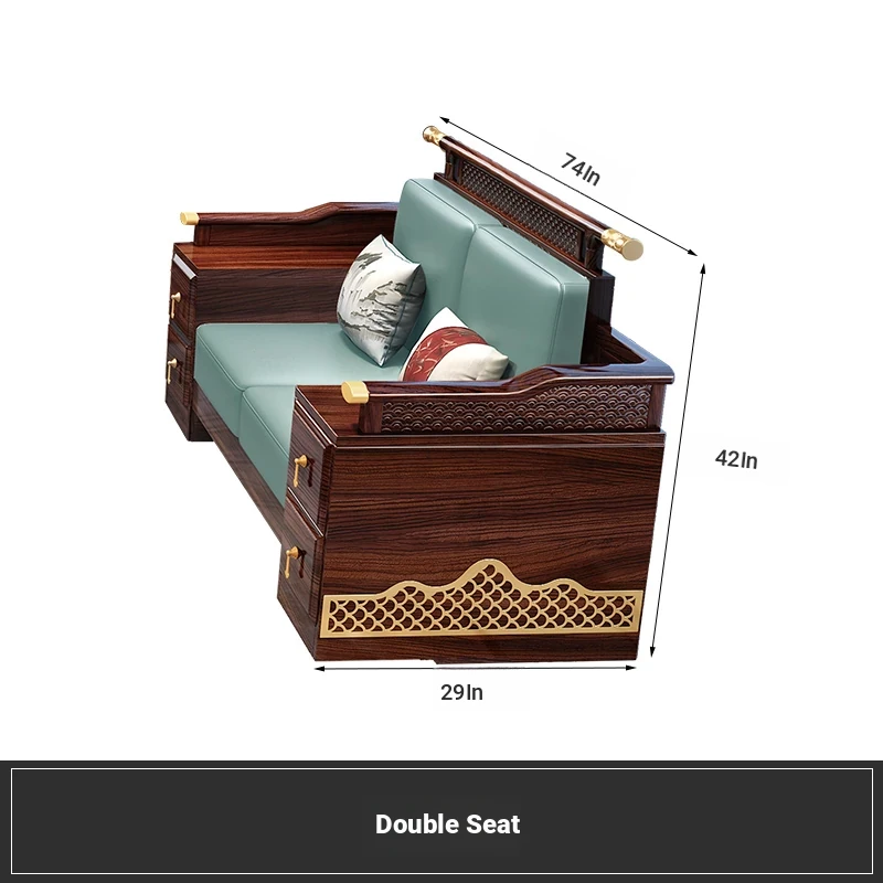Black Walnut Solid Wood Sofa Set - New Chinese Style Light Luxury Corner Chaise Lounge for Large and Small Living Rooms - Minimalist Wooden Furniture