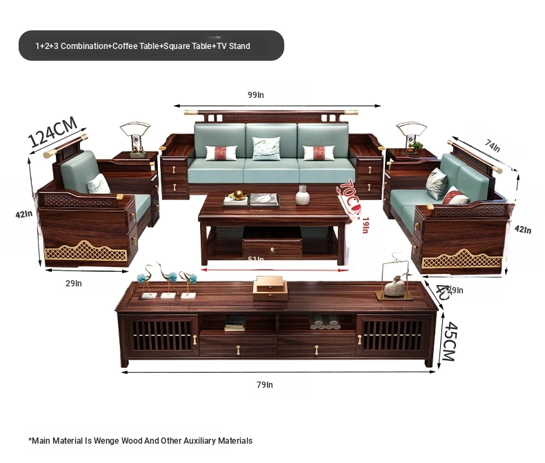 1+2+3 + long coffee table + square * 2 + TV cabinet