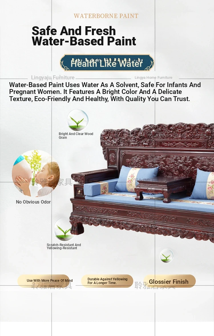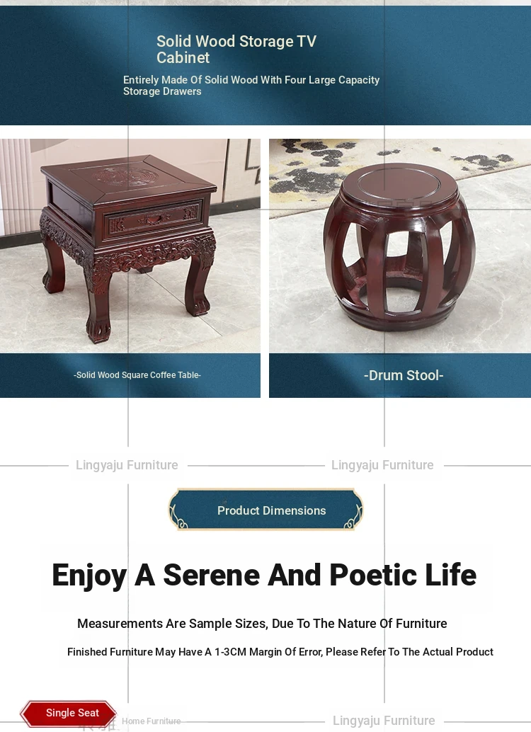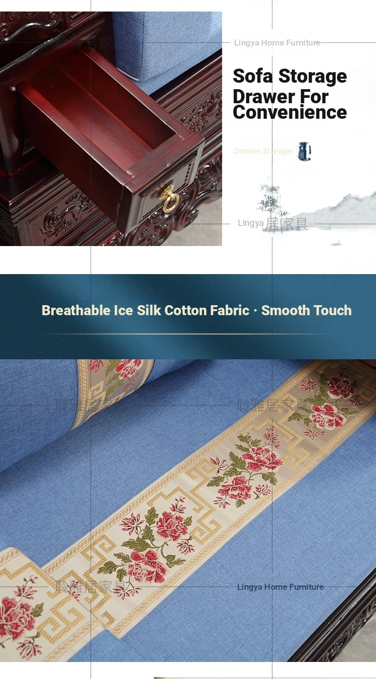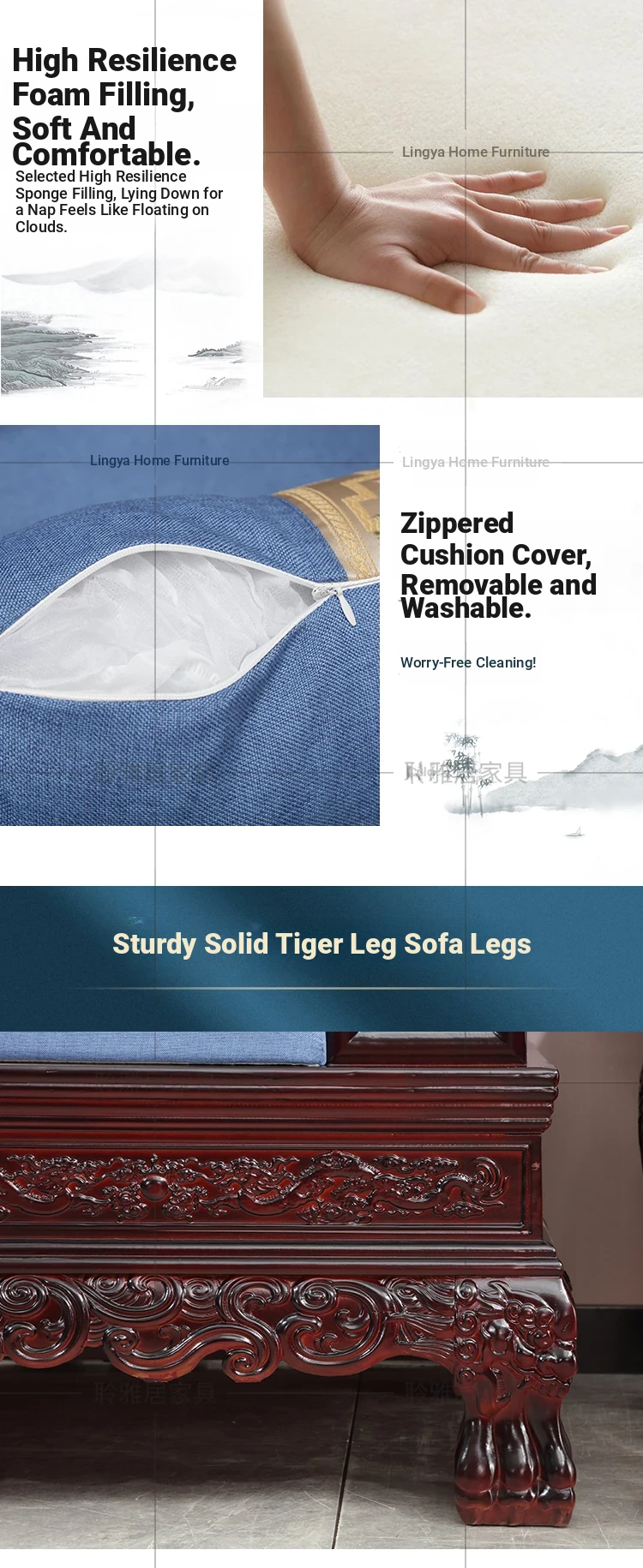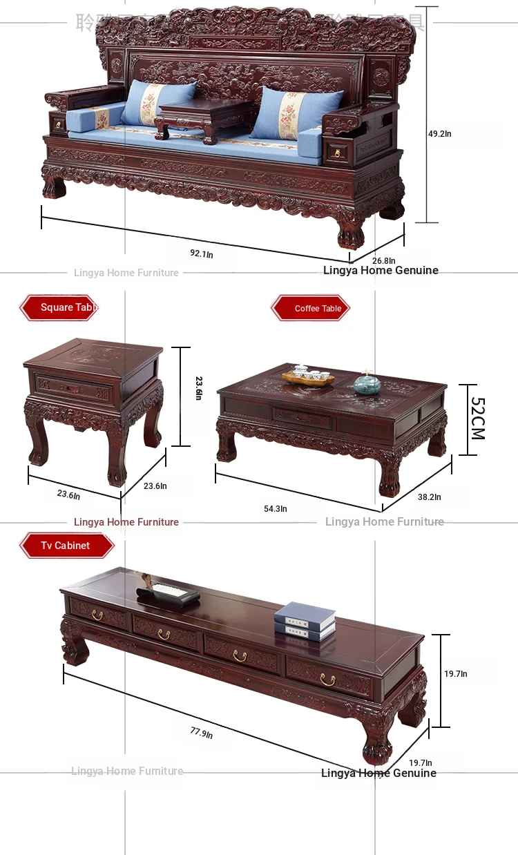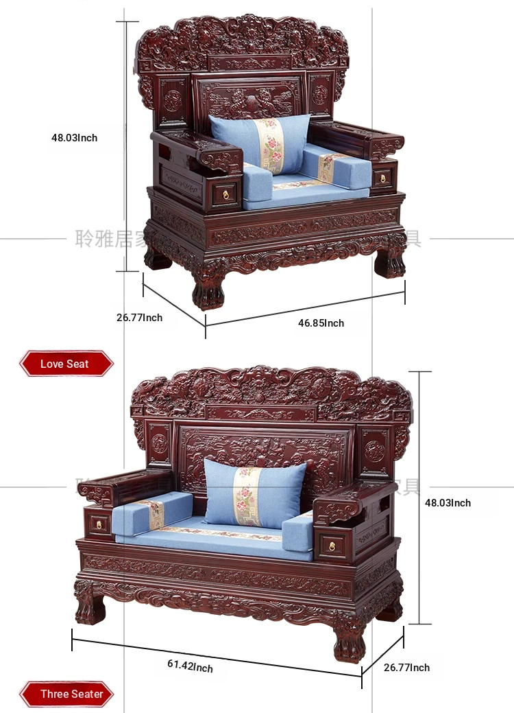 Classic Chinese Solid Wood Sofa Set - Complete Antique Style Ming and Qing Rosewood Furniture for Living Room, Hand-Carved Floral Design, Perfect for Year-Round Comfort