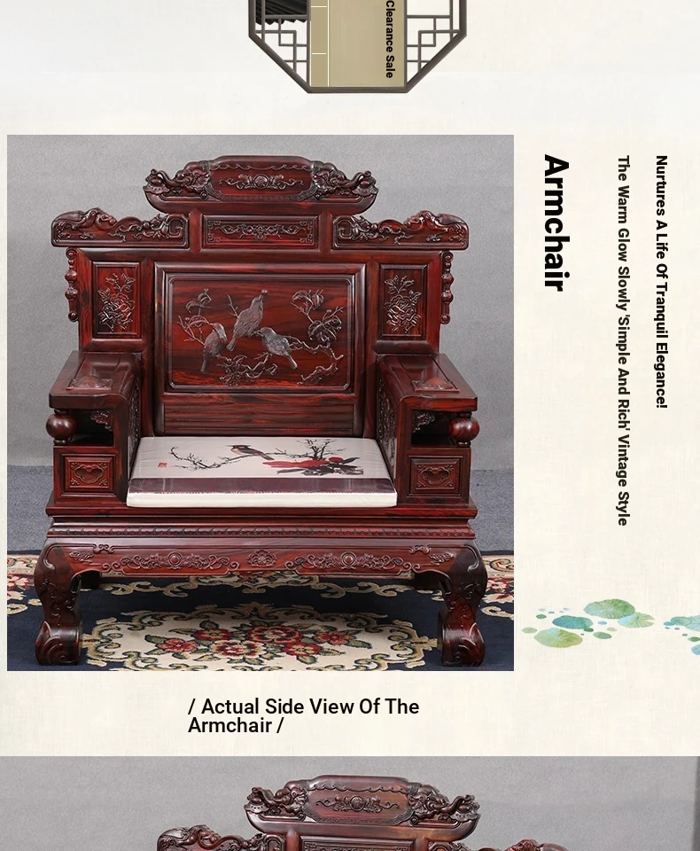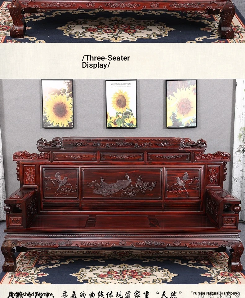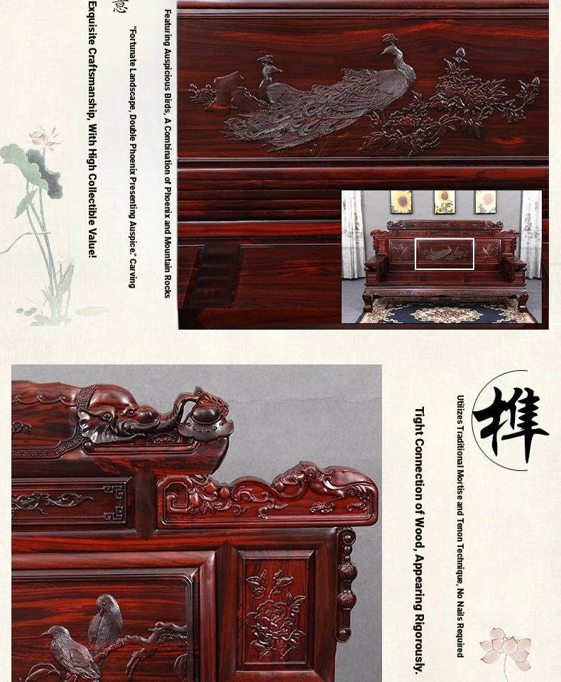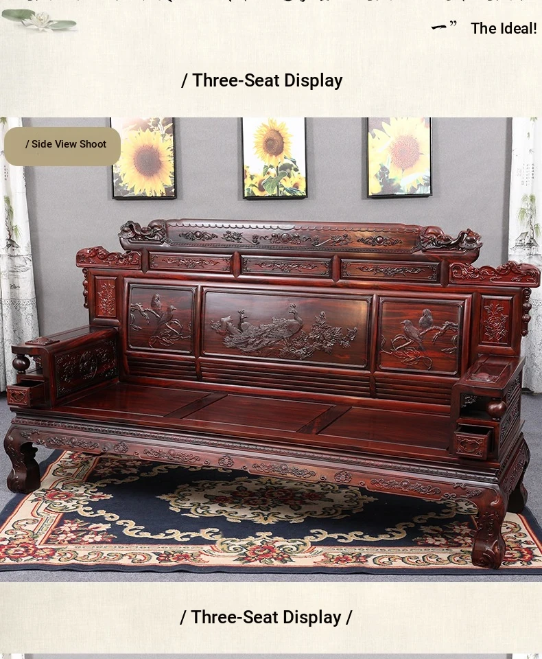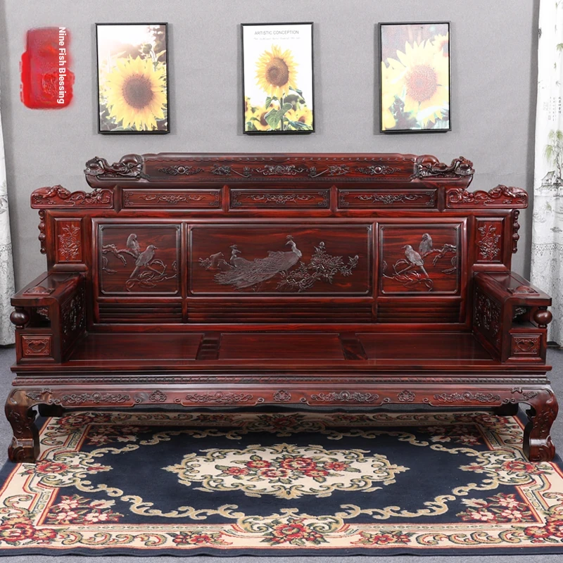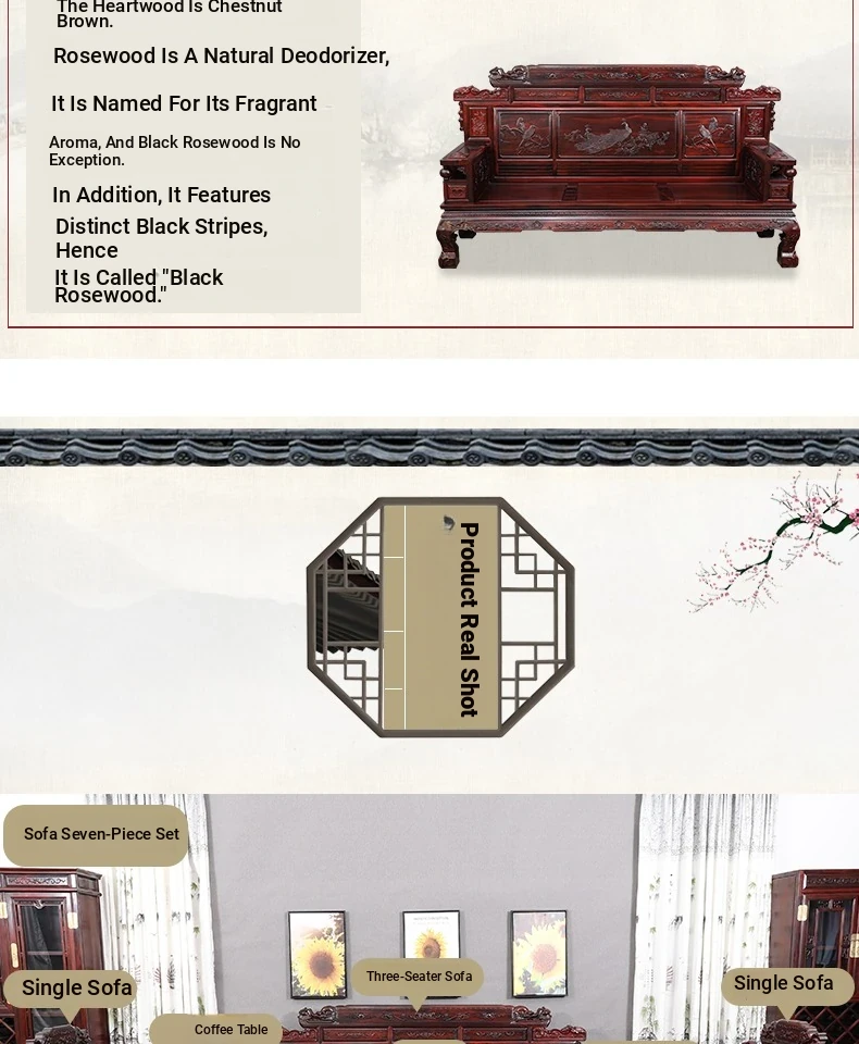 Complete Set of National Standard Redwood Furniture for Living Room - Indonesian Black Rosewood Sofa, Wide Leaf Rosewood, and African Rosewood - Elegant Chinese Style