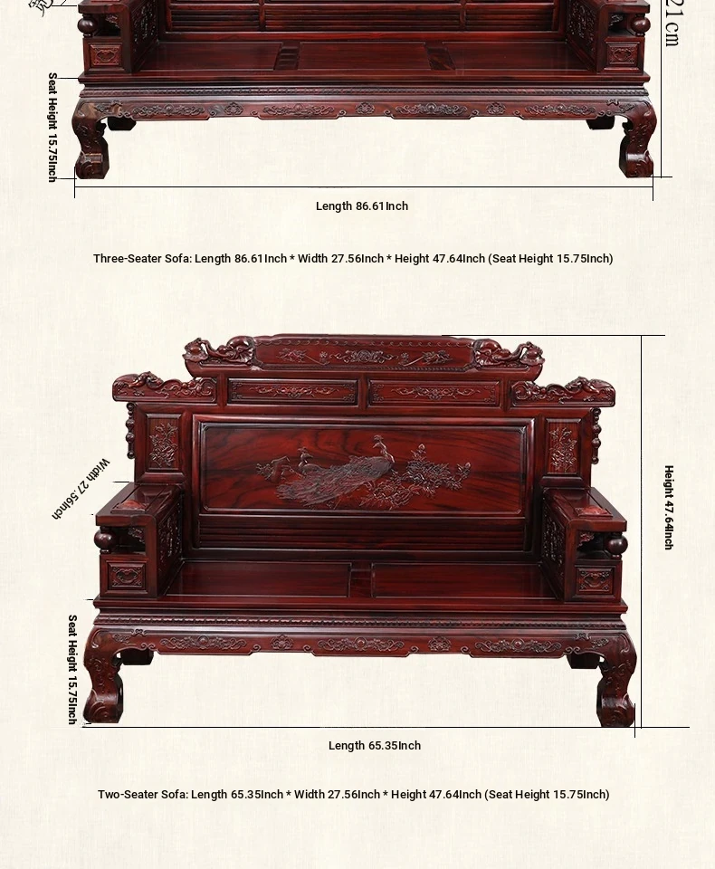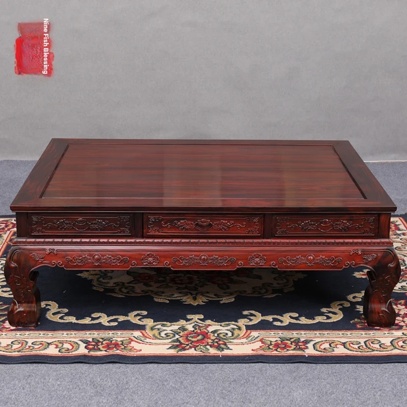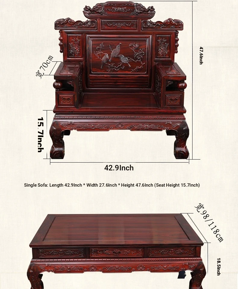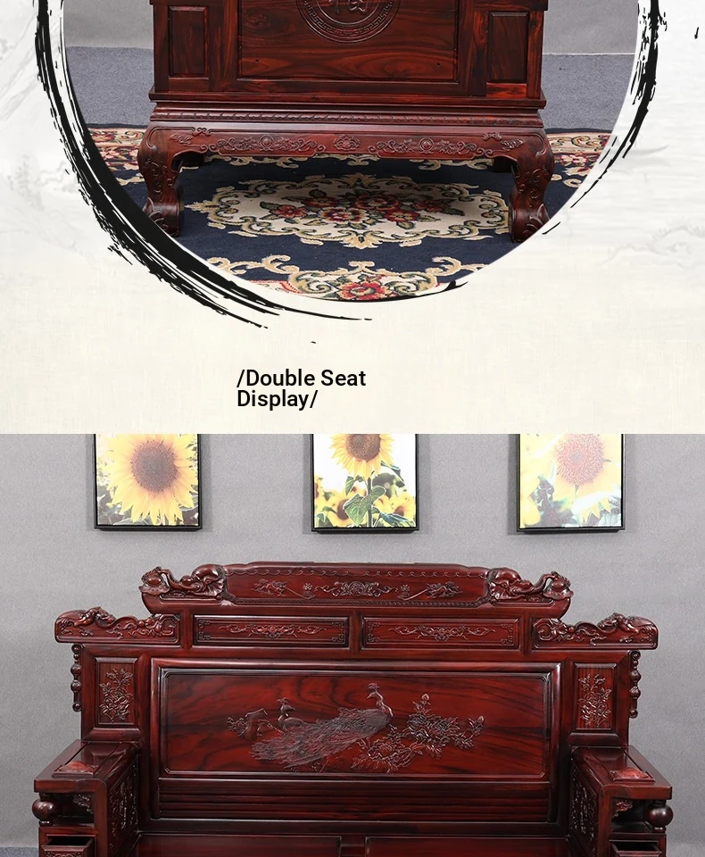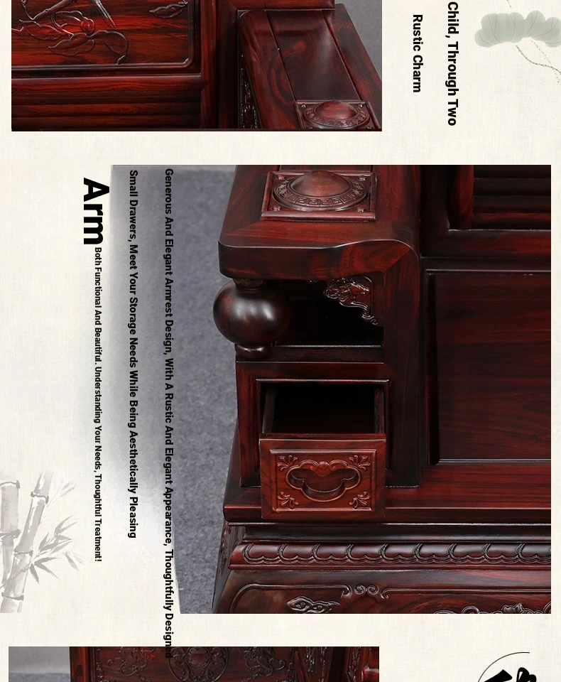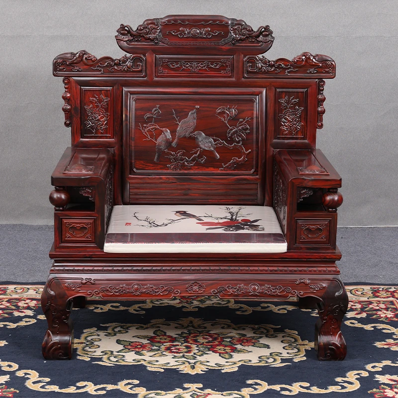 Complete Set of National Standard Redwood Furniture for Living Room - Indonesian Black Rosewood Sofa, Wide Leaf Rosewood, and African Rosewood - Elegant Chinese Style