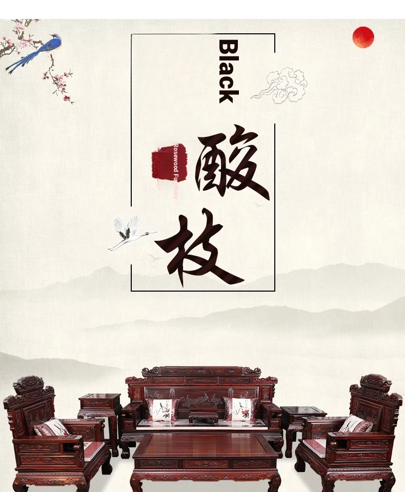 Indonesia black acid branch 113 seven-piece set (GB mahogany)