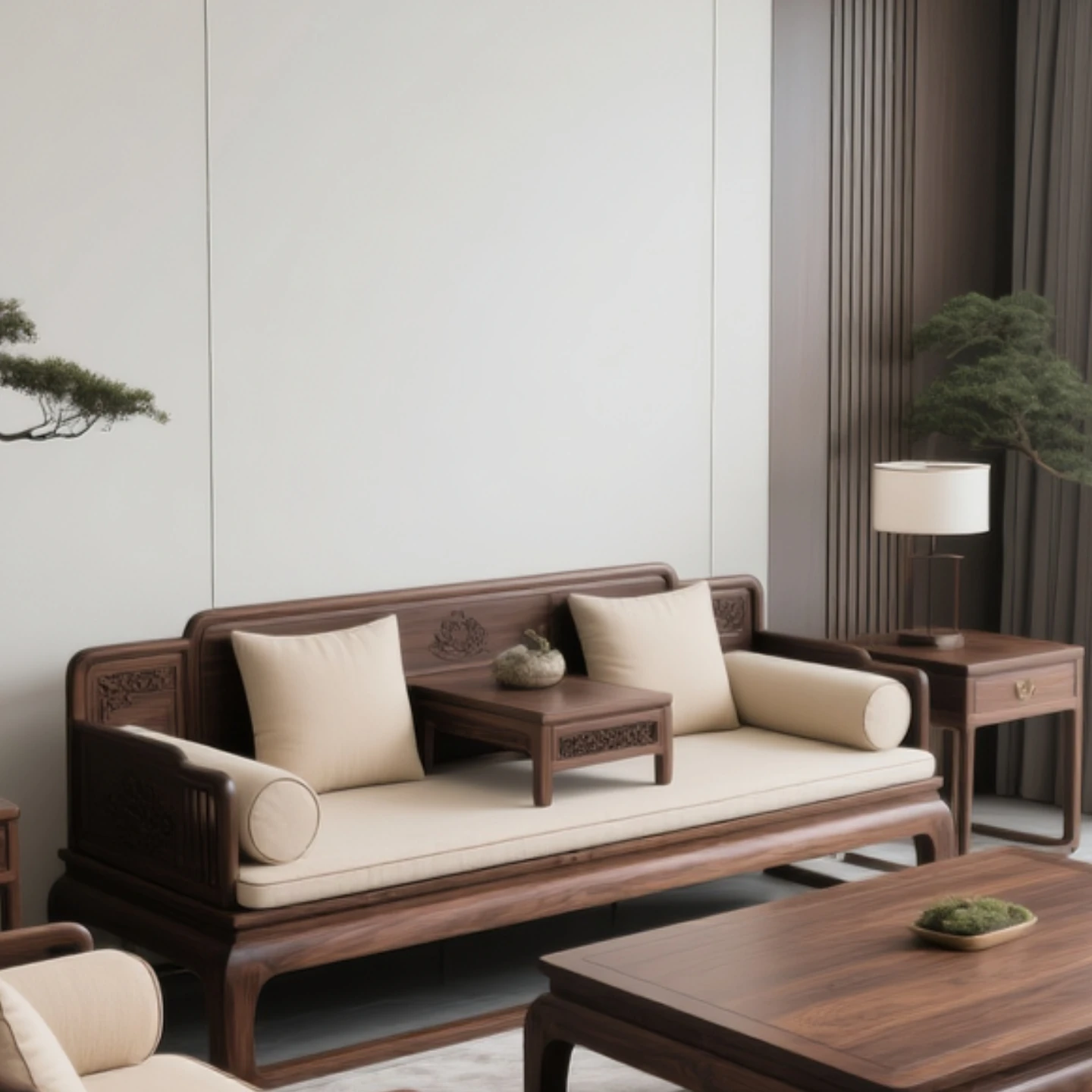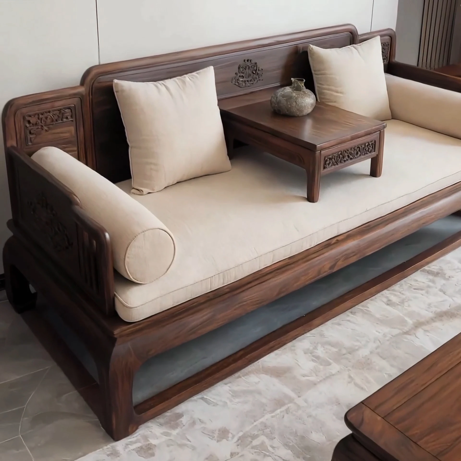 Contemporary Chinese Style North American Black Walnut Solid Wood Sofa Set - Song Aesthetic Meditation-Style Lounger Bed, Minimalist Zen Daybed