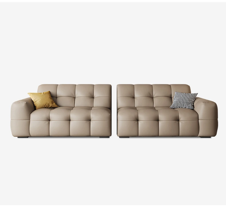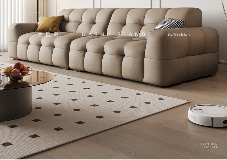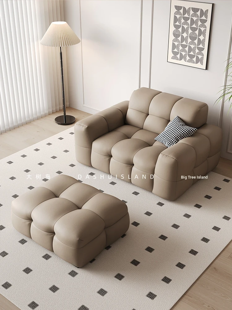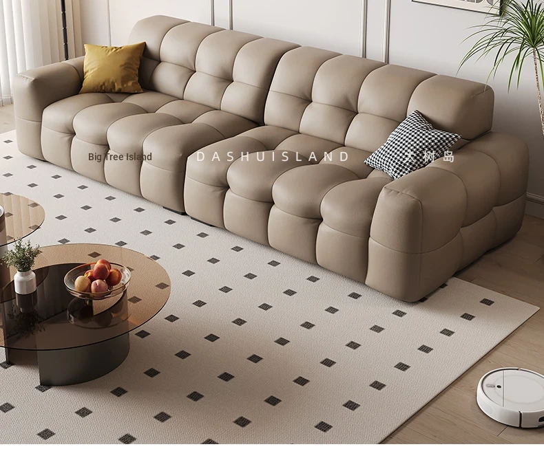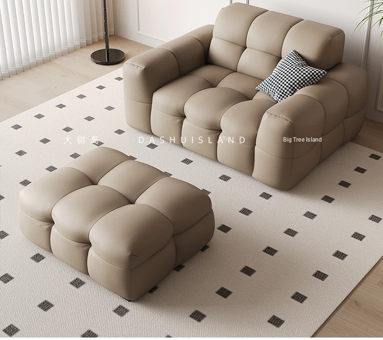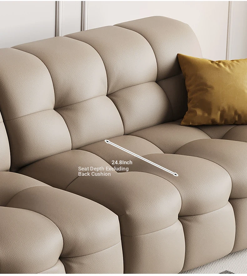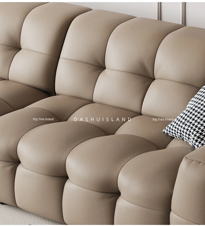 DASHU Island Home Cream Cotton Candy Retro Sofa - Modern Minimalist Genuine Leather Sofa for Small Living Rooms