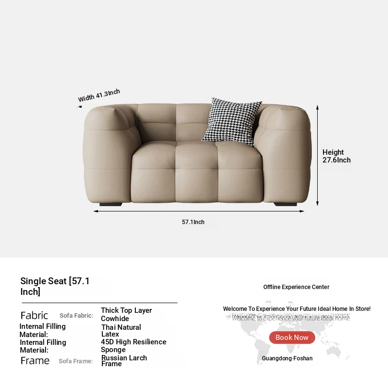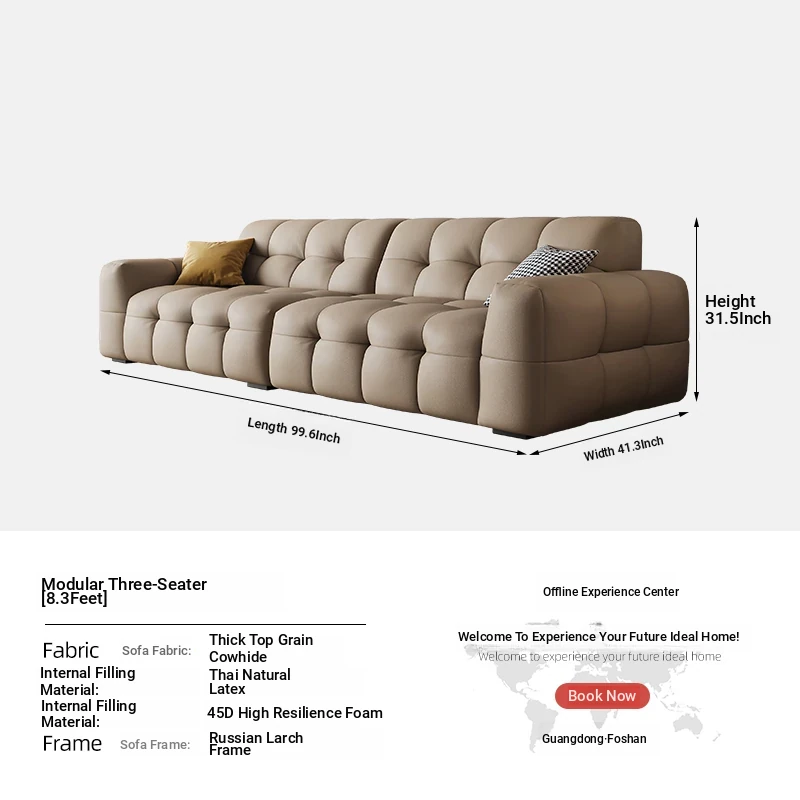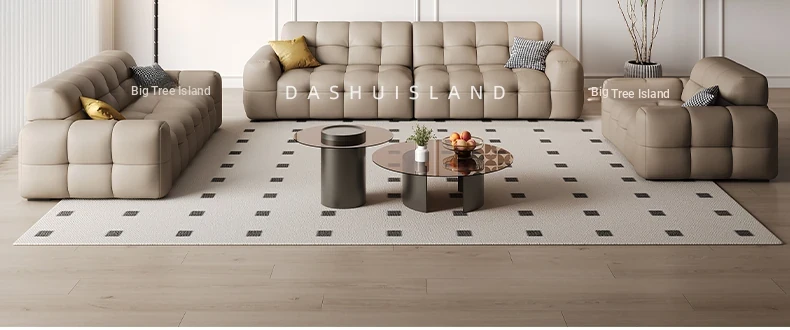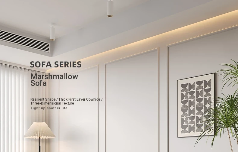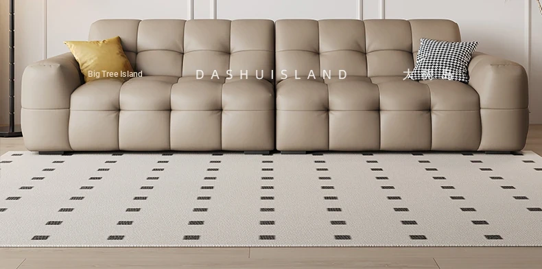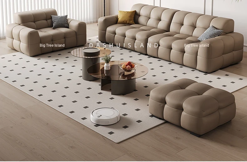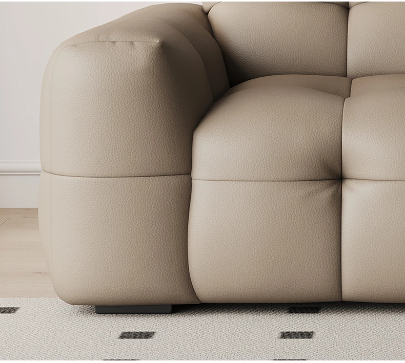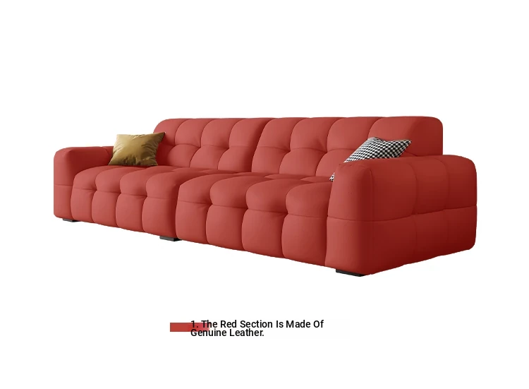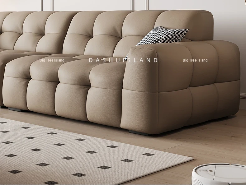 DASHU Island Home Cream Cotton Candy Retro Sofa - Modern Minimalist Genuine Leather Sofa for Small Living Rooms