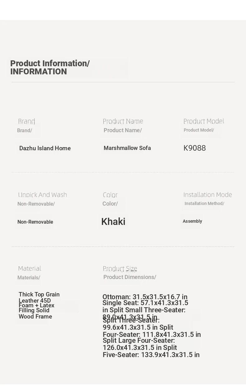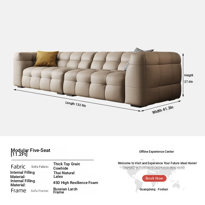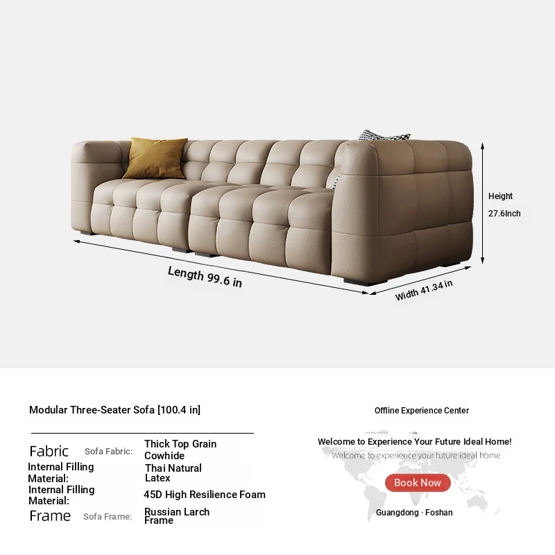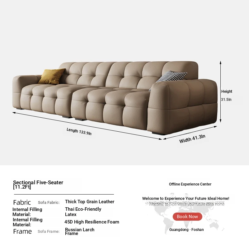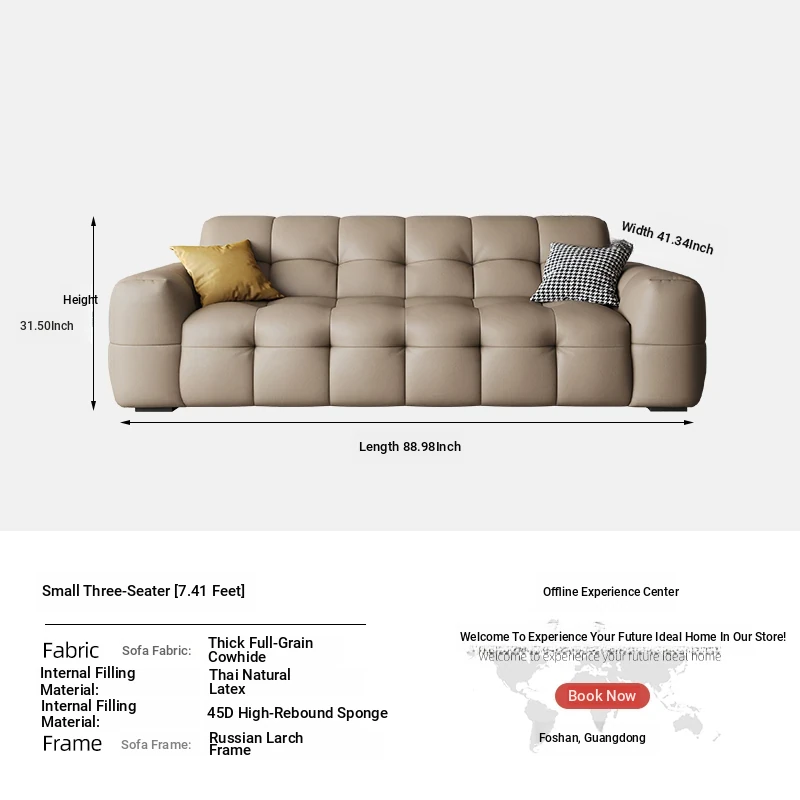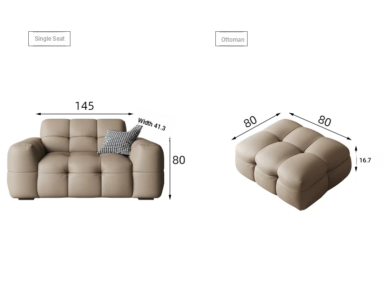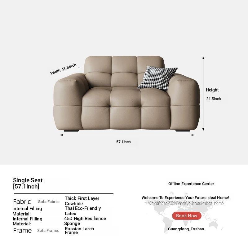 DASHU Island Home Cream Cotton Candy Retro Sofa - Modern Minimalist Genuine Leather Sofa for Small Living Rooms