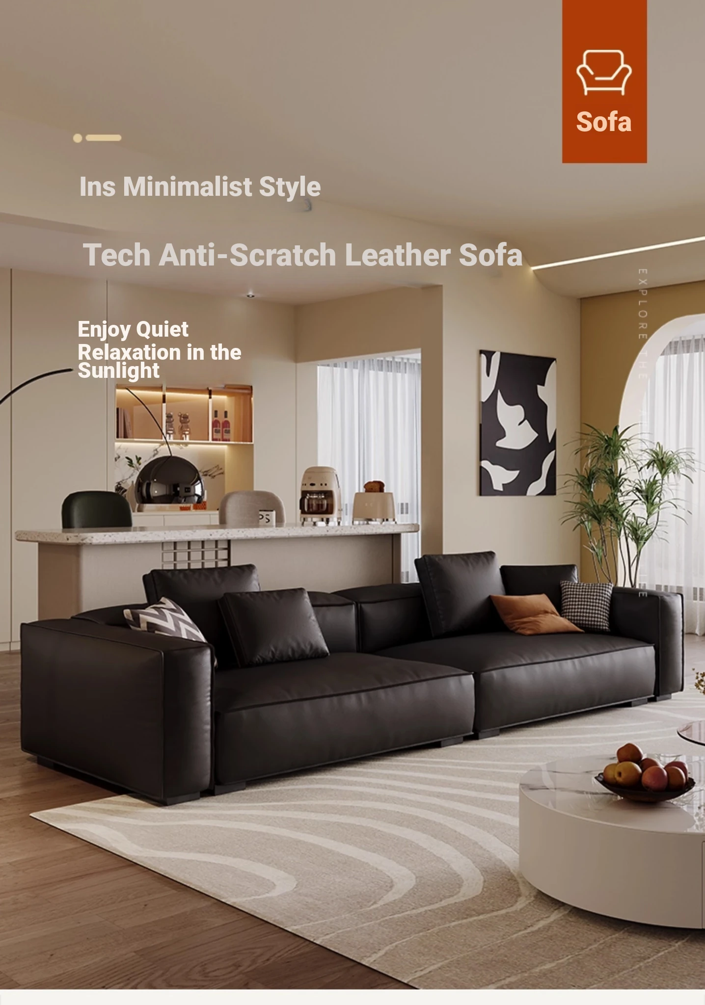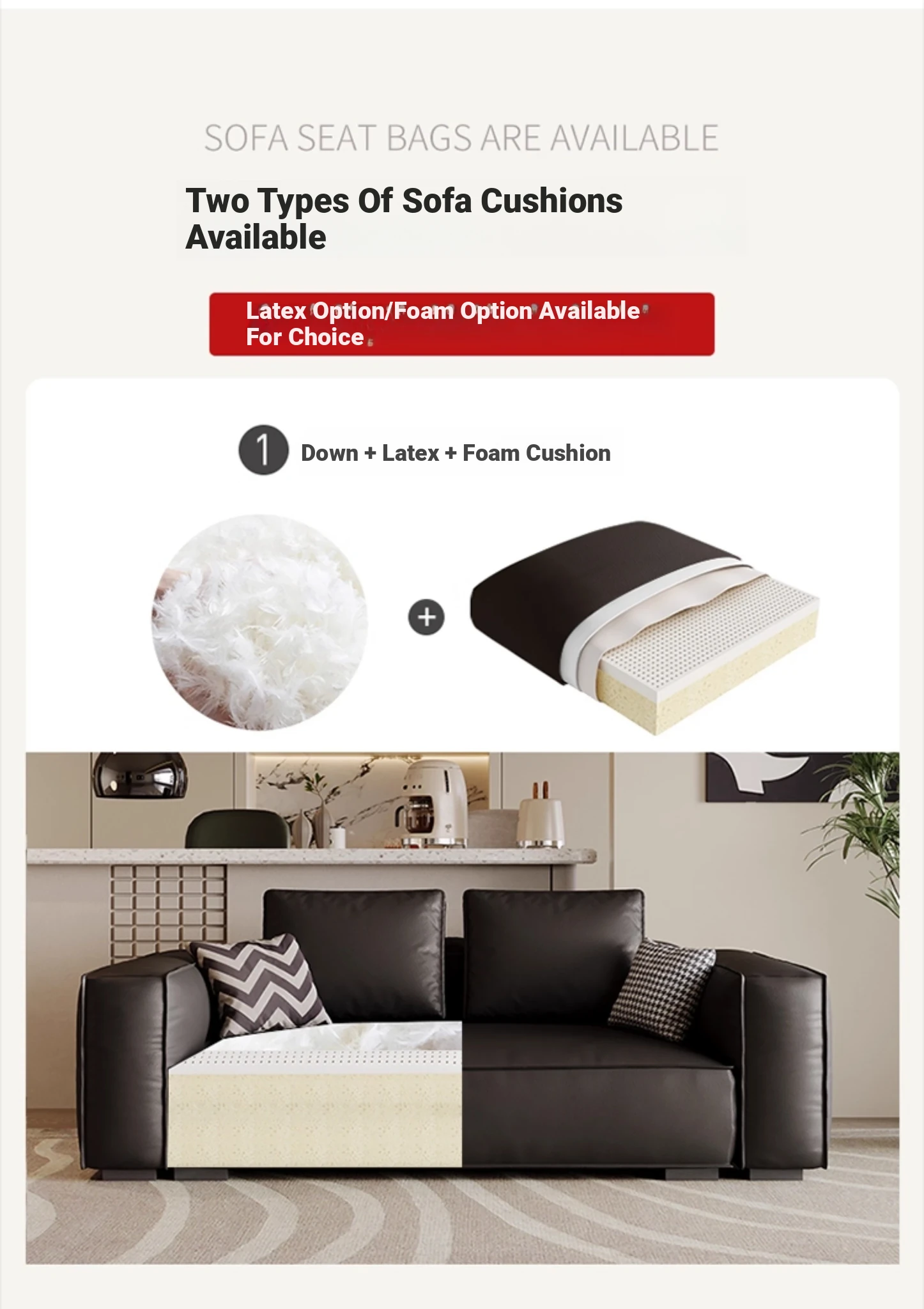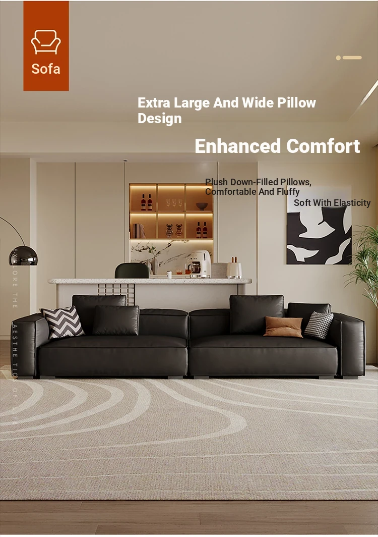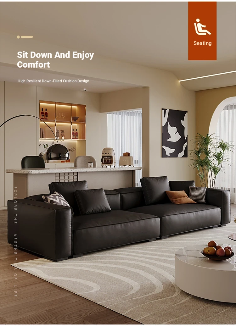 Dazhu Island Modern Minimalist Down-Filled Tufted Sofa - Stylish Black Italian-Inspired Couch Perfect for Small Living Rooms