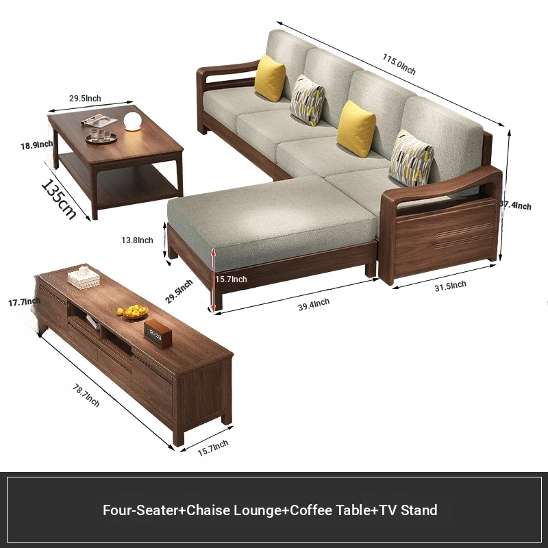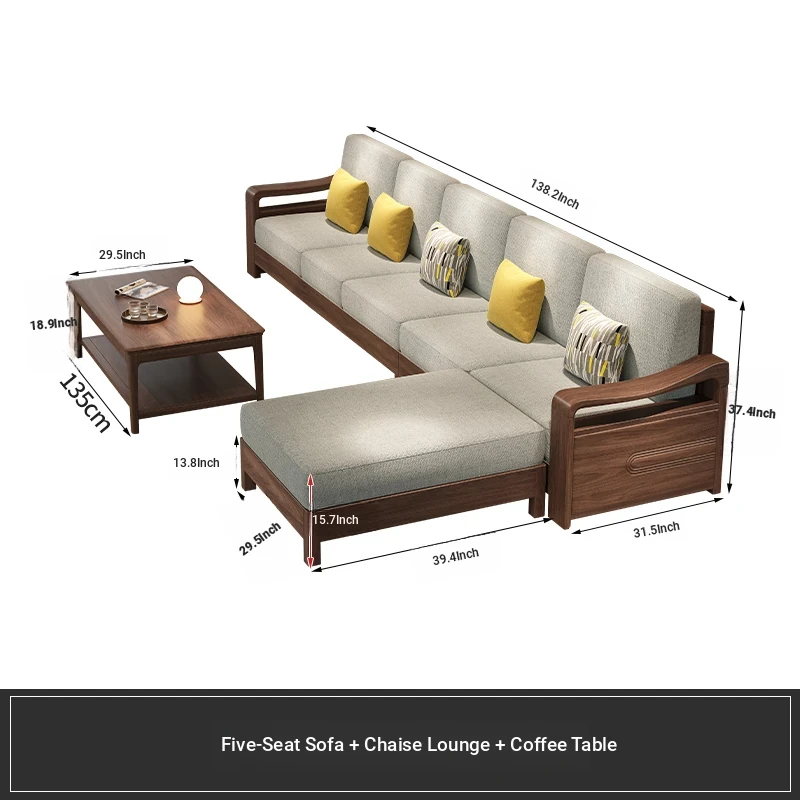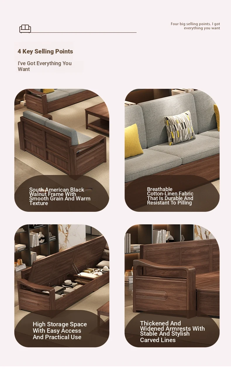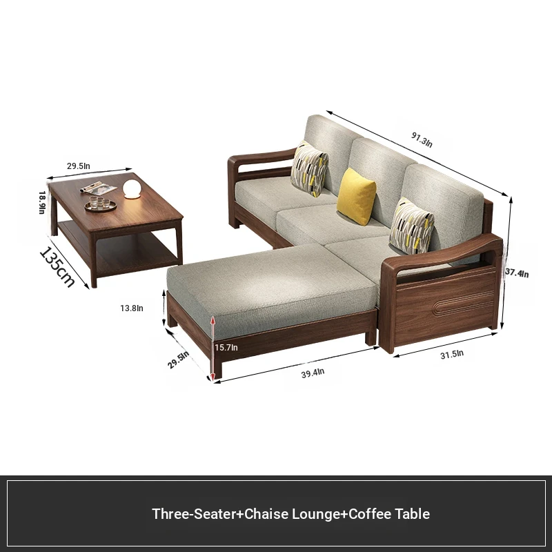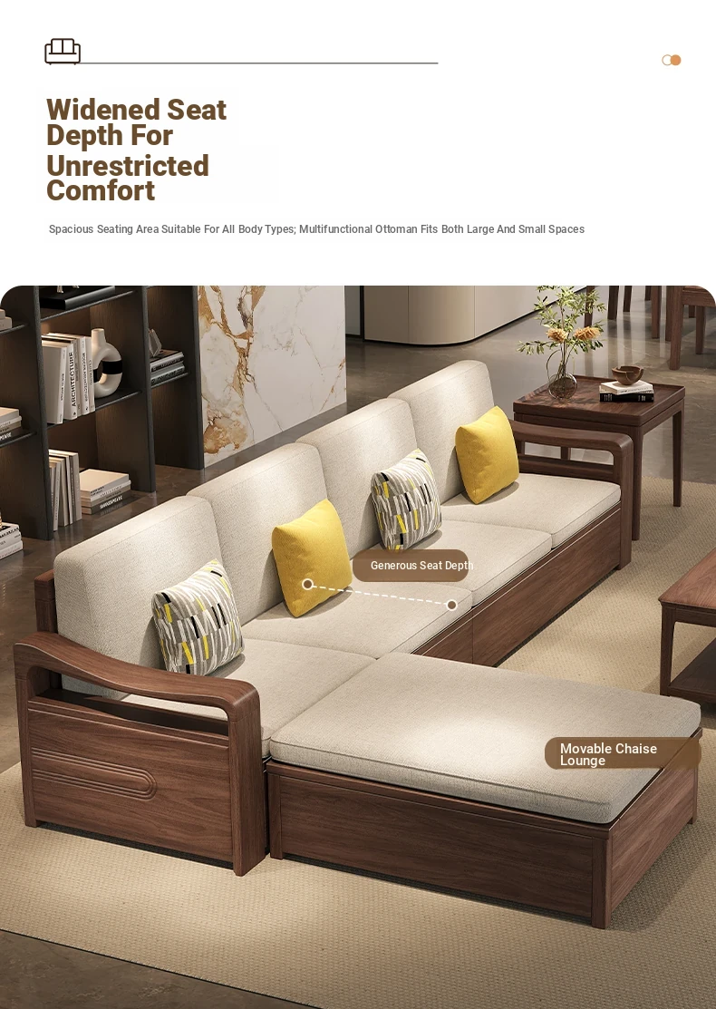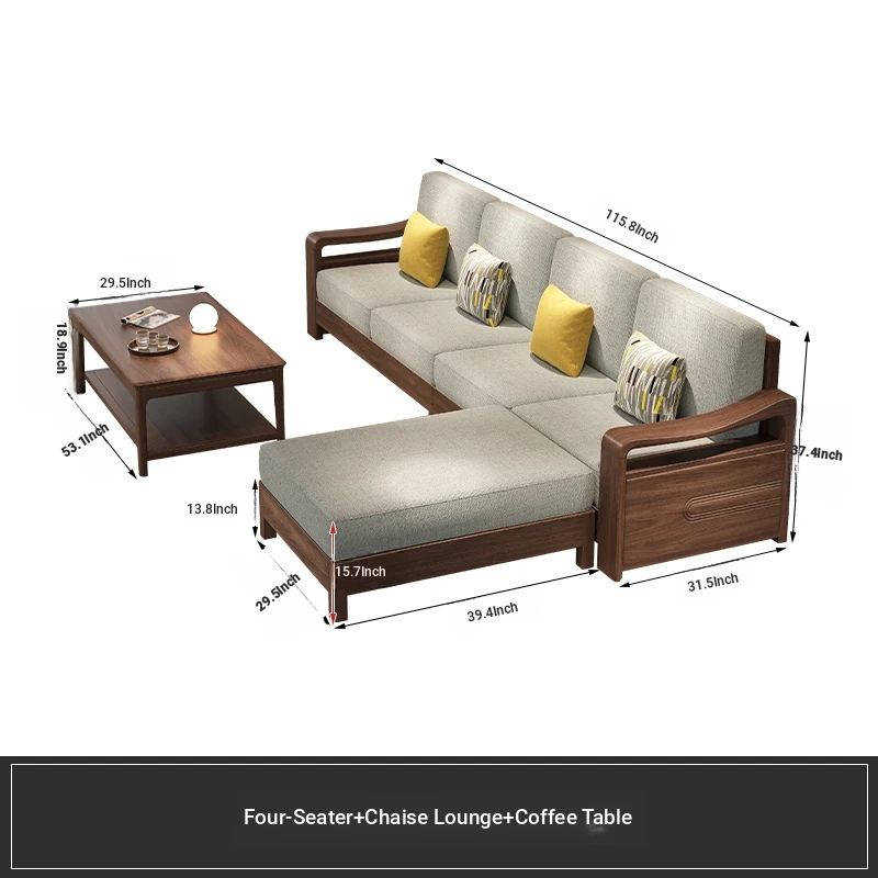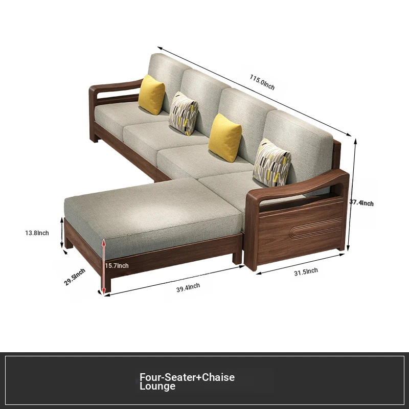 Elegant Black Walnut Solid Wood Sofa - New Chinese Style L-Shaped Chaise Lounge with Storage for Small Apartments - Minimalist Furniture for Living Rooms