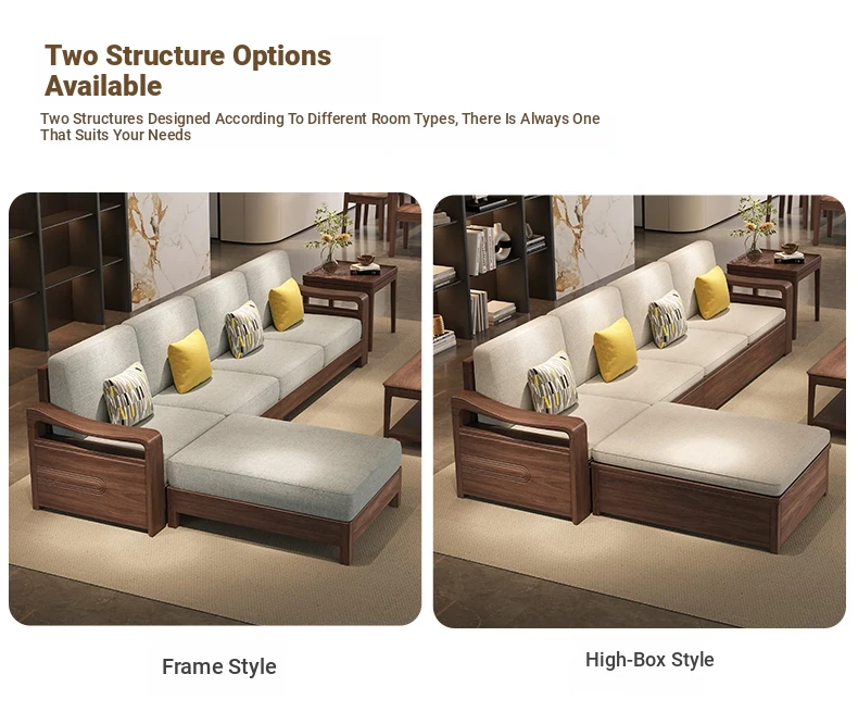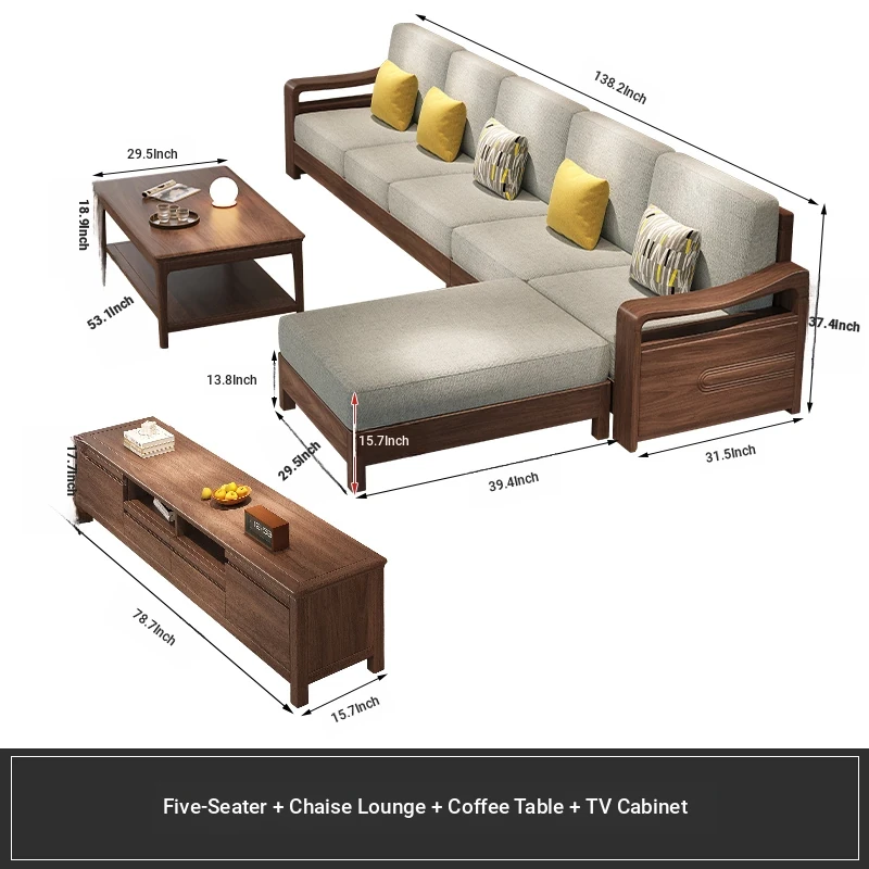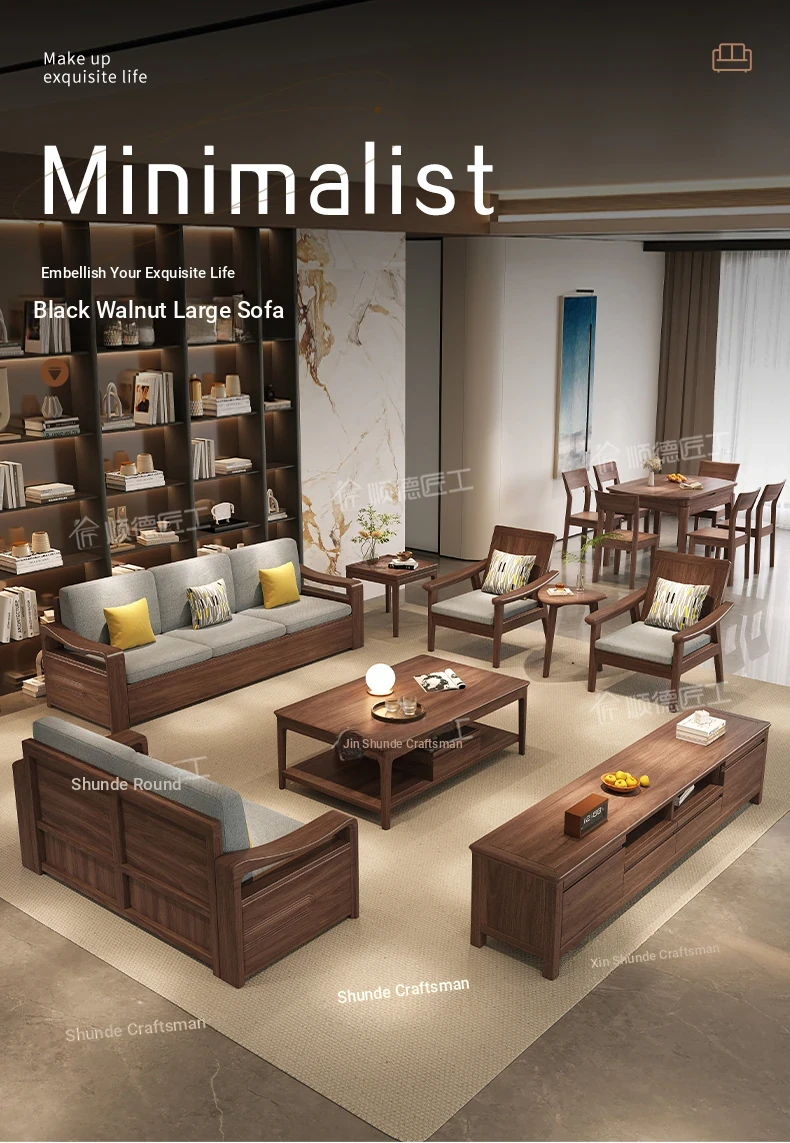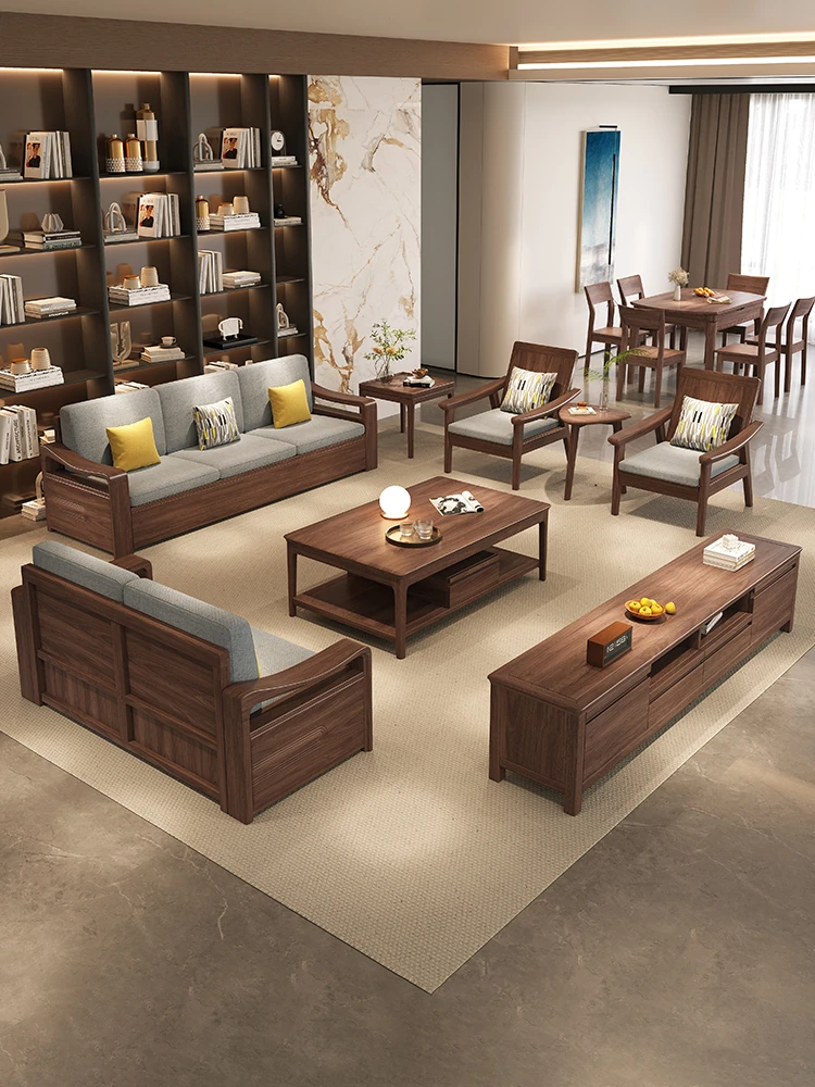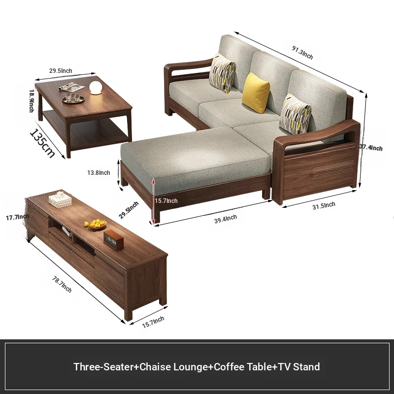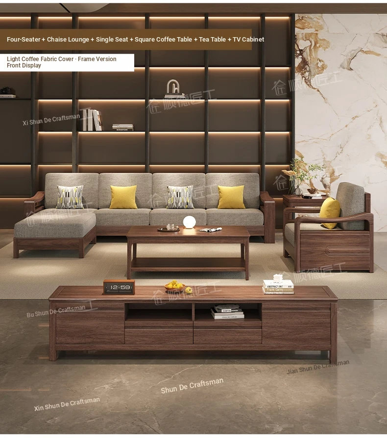 Elegant Black Walnut Solid Wood Sofa - New Chinese Style L-Shaped Chaise Lounge with Storage for Small Apartments - Minimalist Furniture for Living Rooms