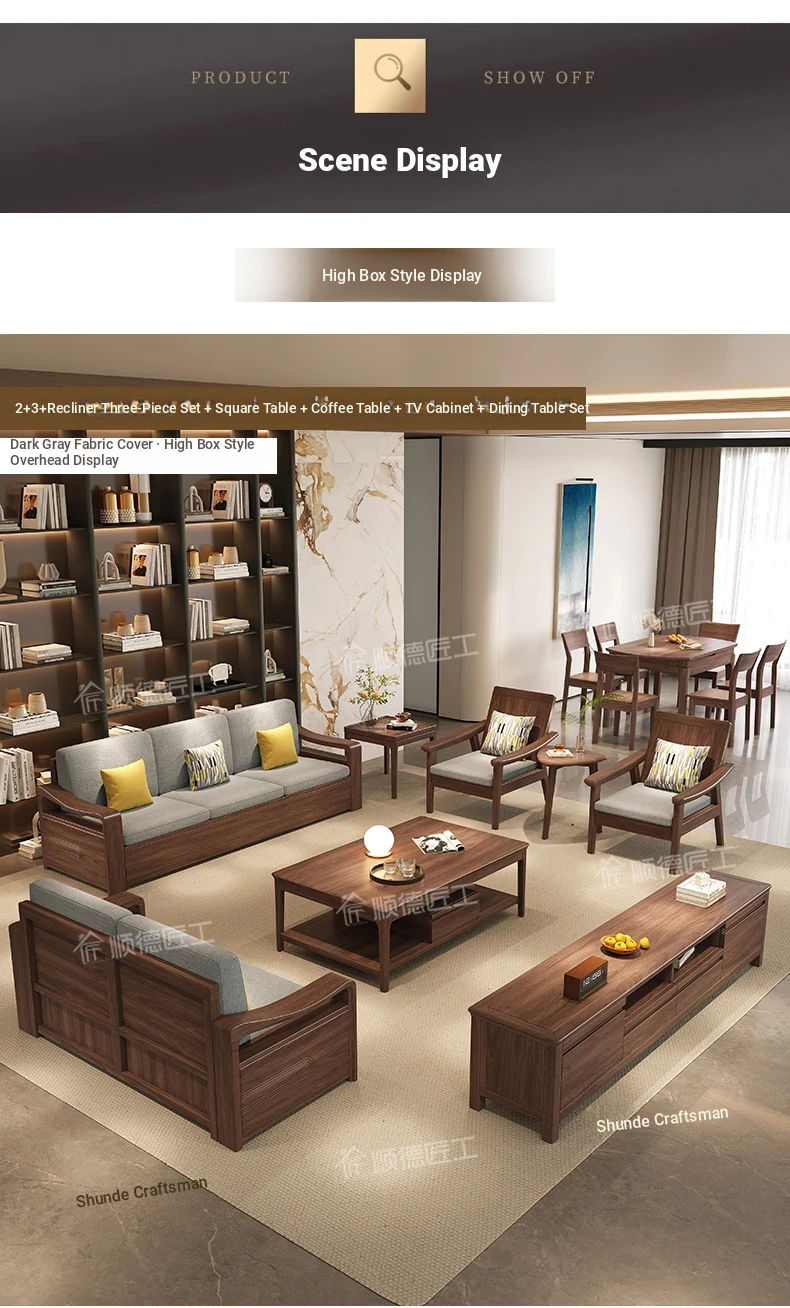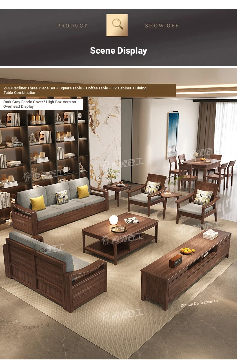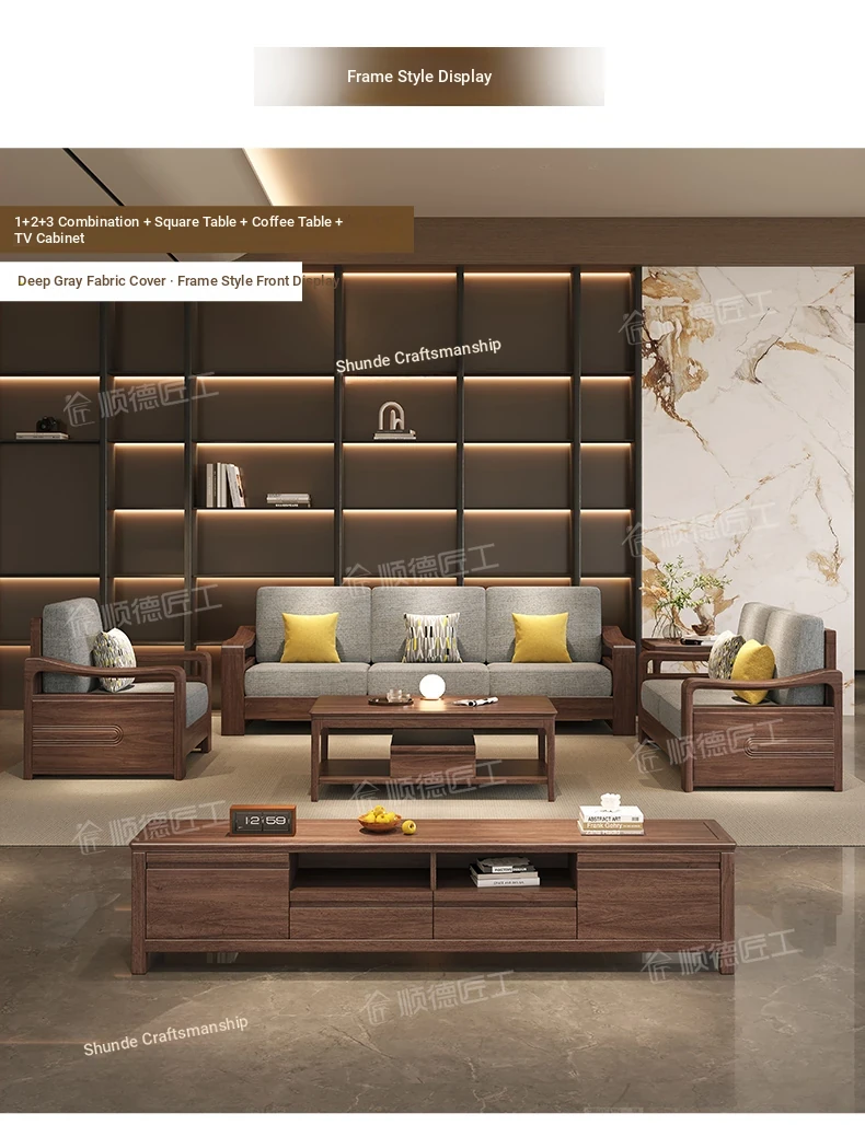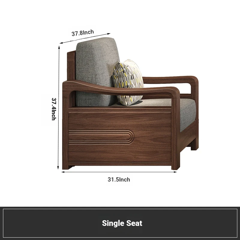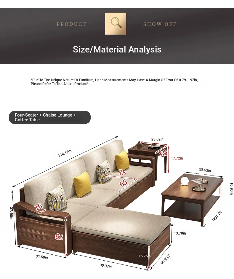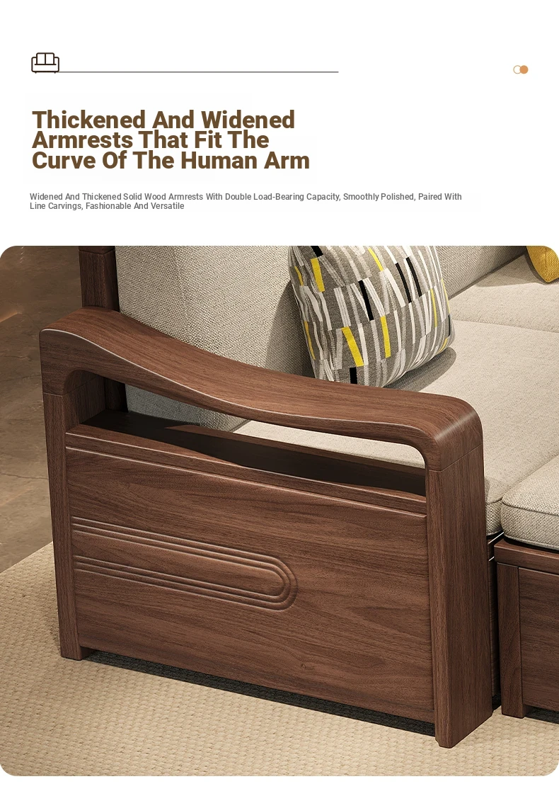 Elegant Black Walnut Solid Wood Sofa - New Chinese Style L-Shaped Chaise Lounge with Storage for Small Apartments - Minimalist Furniture for Living Rooms