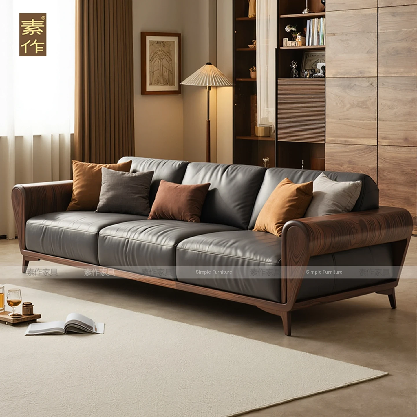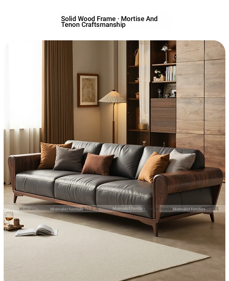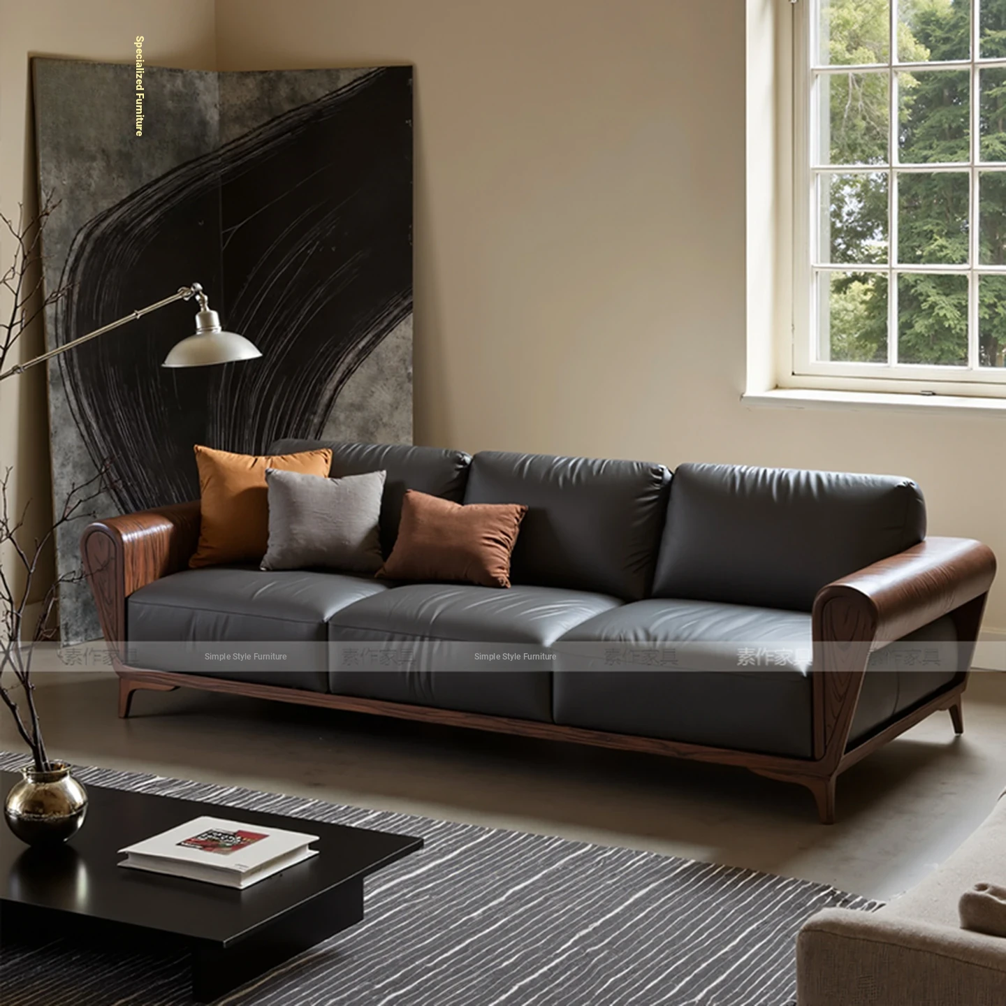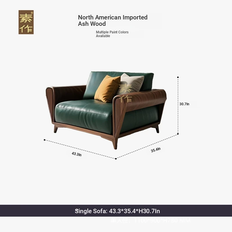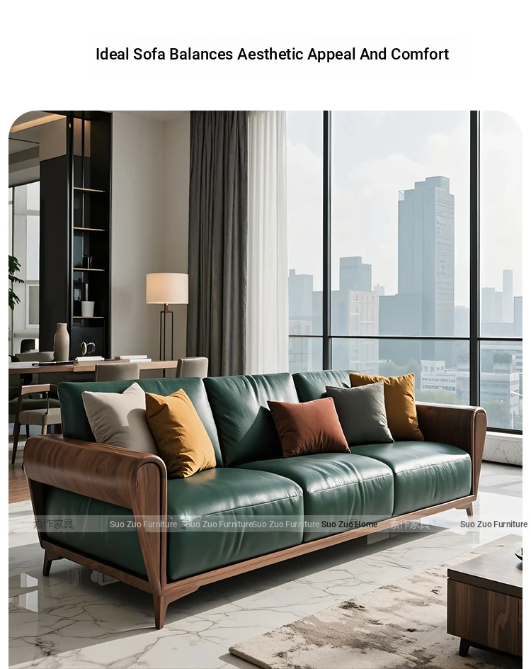 Elegant Italian Minimalist Jade Green Solid Wood Sofa - Spacious North American Black Walnut Sofa for Villas and Living Rooms, Perfect for Gatherings and Stylish Comfort.